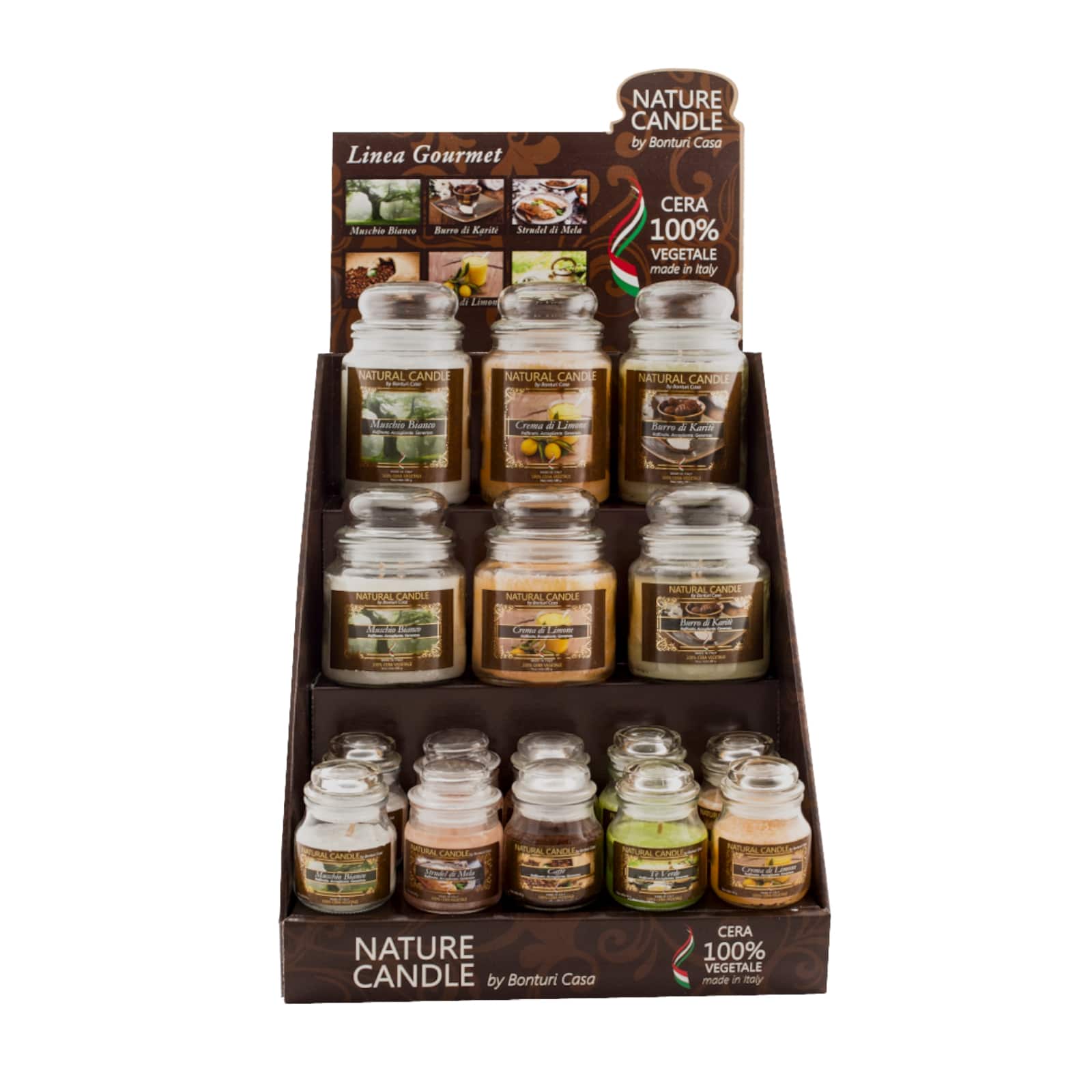 Hos Bonturi Casa har vi været specialister i boligtilbehør i mere end 30 år. Efter at have solgt tusindvis af klassiske stearinlys indså vi, at de ikke passede til vores filosofi, og vi udviklede et nyt, økologisk og Made in Italy stearinlys: et stearinlys, der beskytter dit helbred og ikke forurener luften i dit hjem! Fra succesen med lys i glas er der opstået andre linjer, hvortil der er blevet tilføjet duftspredere: mærket Nature Candle er i konstant vækst. I de kommende år vil vi fortsætte med at udvikle vores katalog med entusiasme for at fremme brugen af stearinlys, der respekterer sundhed og miljø.