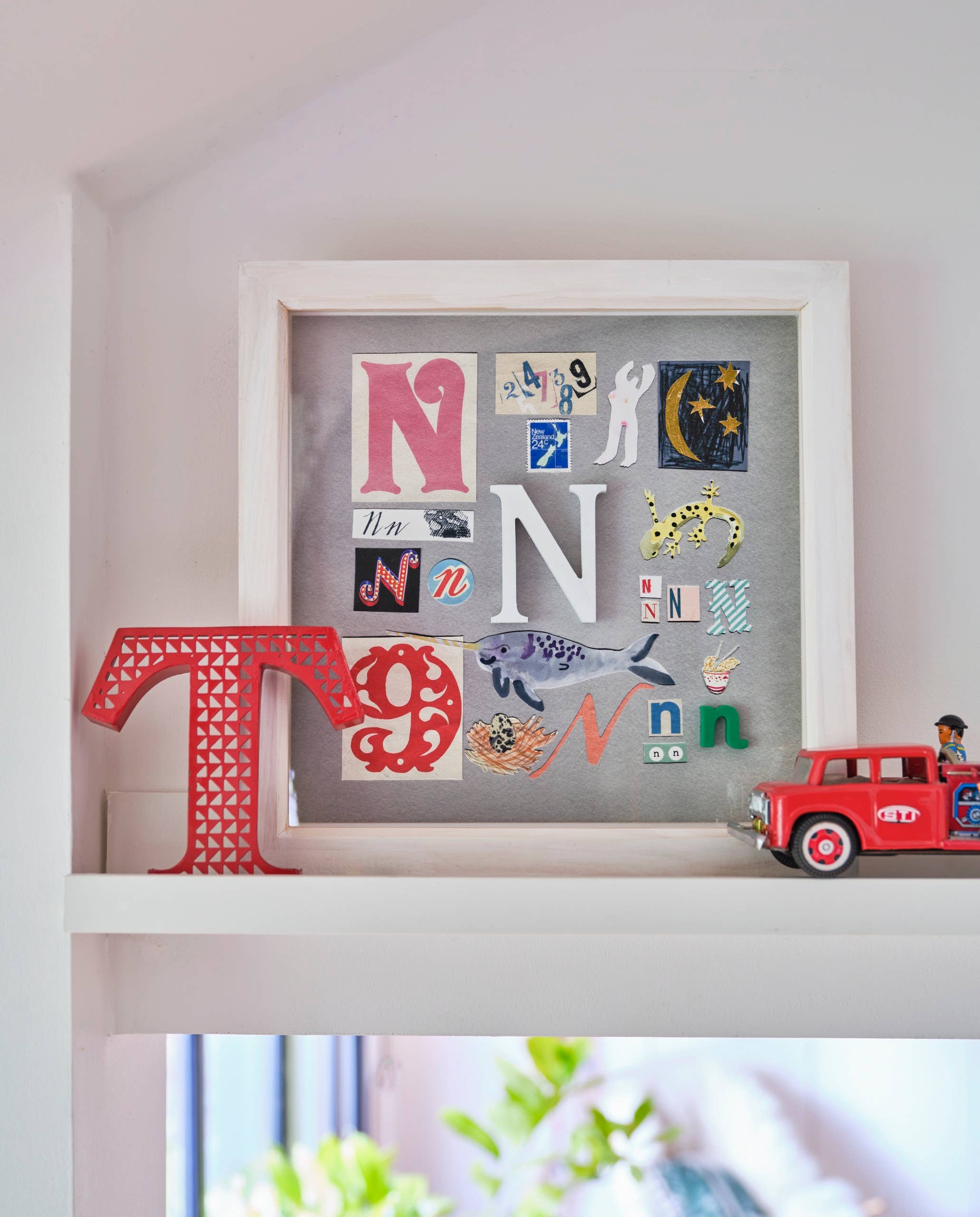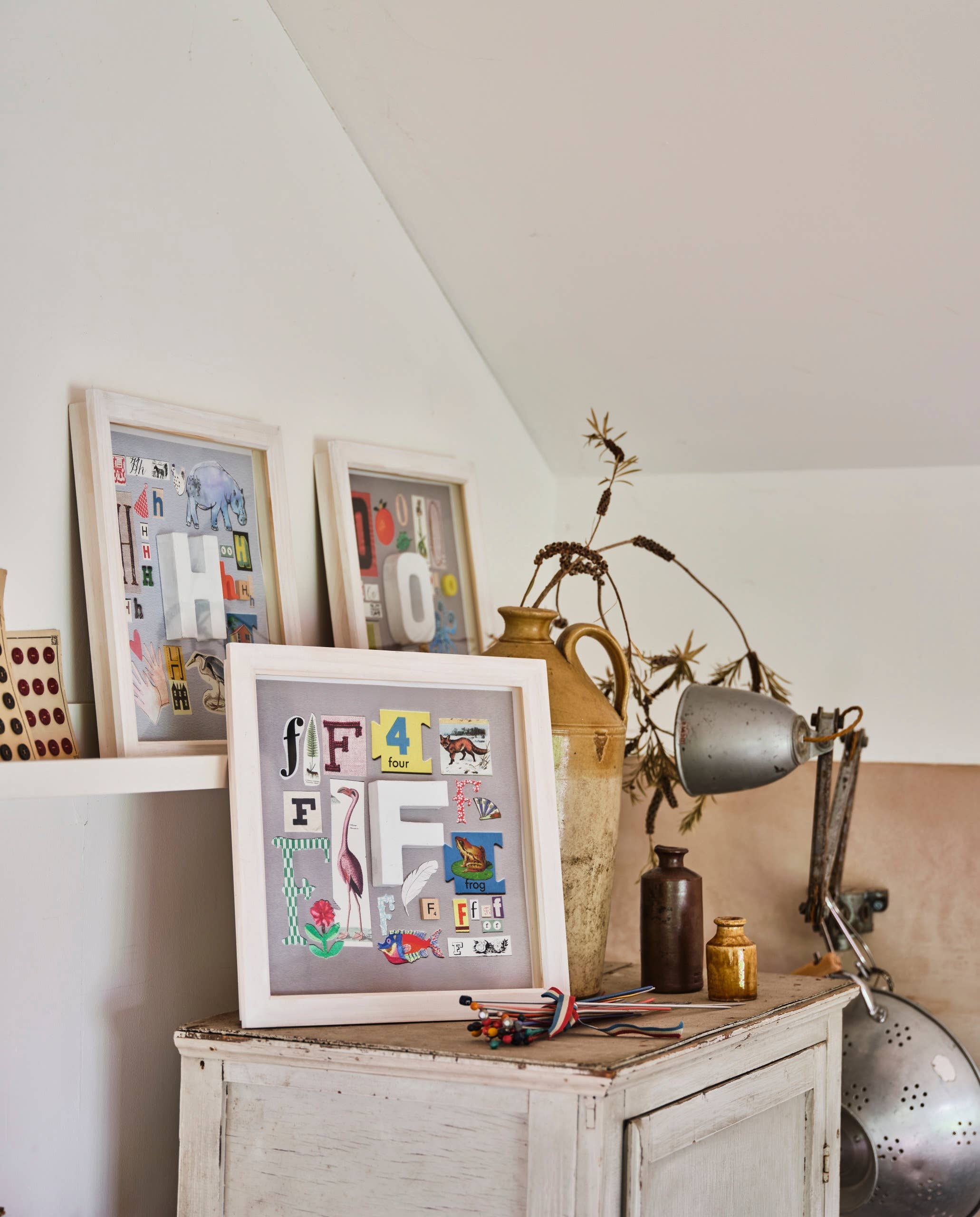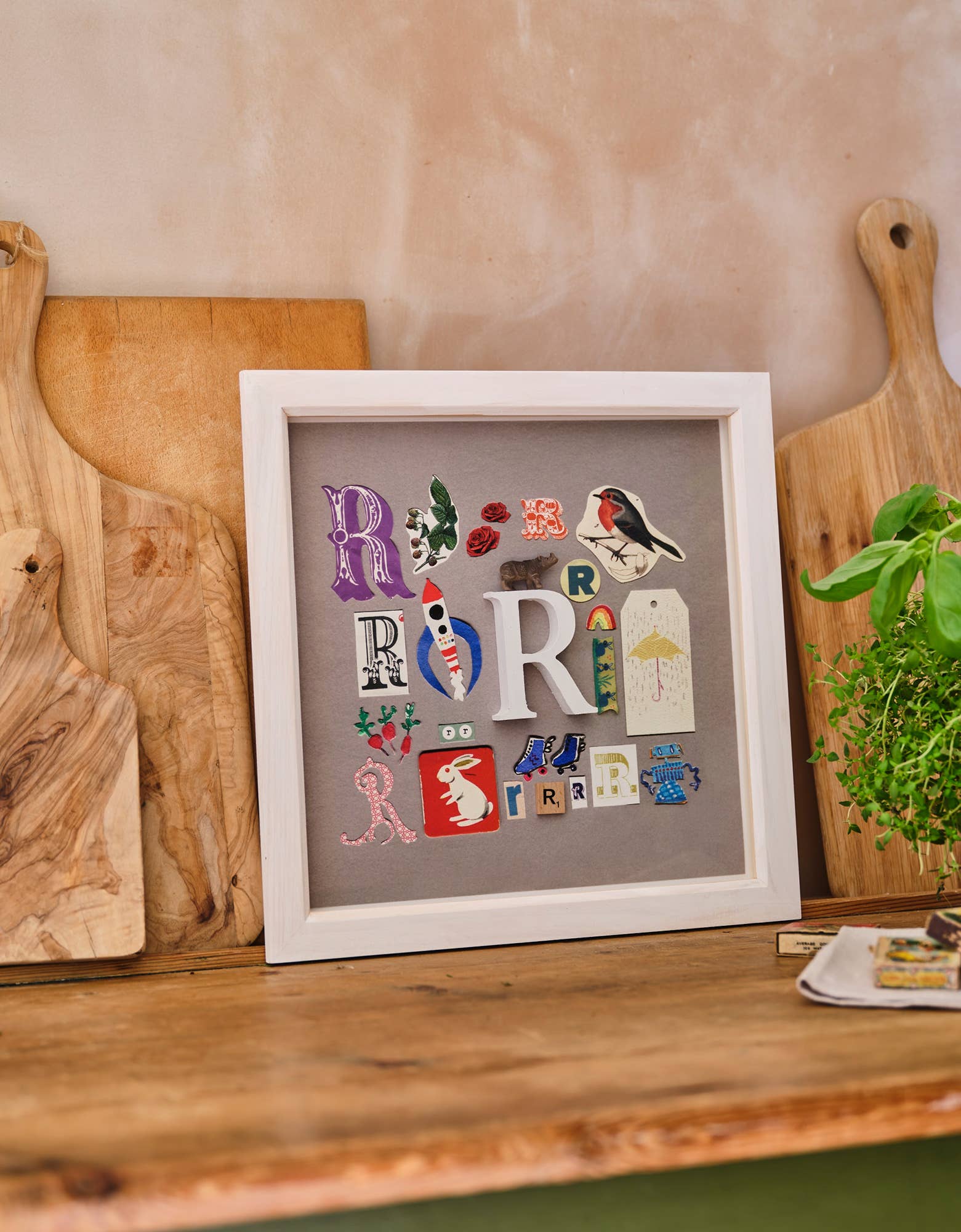 Hej, jeg hedder Robin! I ti år har jeg lavet disse brevbilleder til familie og venner, mens jeg gør mit dagjob som interiørstylist baseret i London, UK. Jeg elskede også at samle vintage breve, puslespil stykker og miniature dyr eller legetøj. Hver af disse 'initialer' bliver bragt til live i et indrammet 3D kunstværk, der kombinerer en unik blanding af collage, malede illustrationer og disse vintage fund - som et kabinet af kuriositeter. Jeg har altid ønsket at bringe min brevkunst til en bredere kreds af mennesker og bringe glade farver til flere hjem. Og nu ved at gøre dem til giclée digitale prints dekoreret med fundne objekter, Jeg er i stand til at gøre præcis det. Fra fødselsdage til nye babyer, engagementer til jubilæer, mors dag til bevægelige dage - et indrammet indledende print er det perfekte 'kærlighedsbrev 'til at sende til nogen speciel.