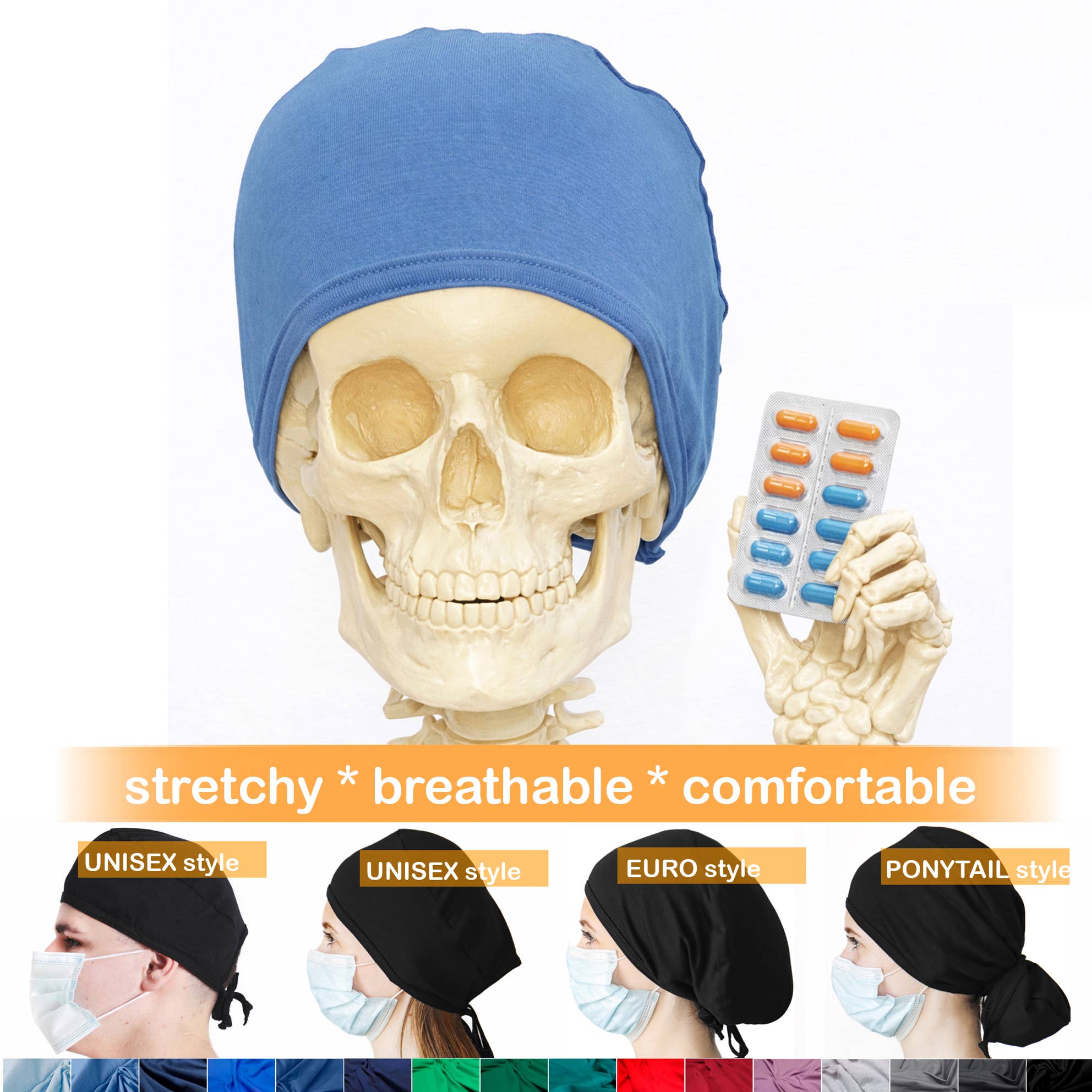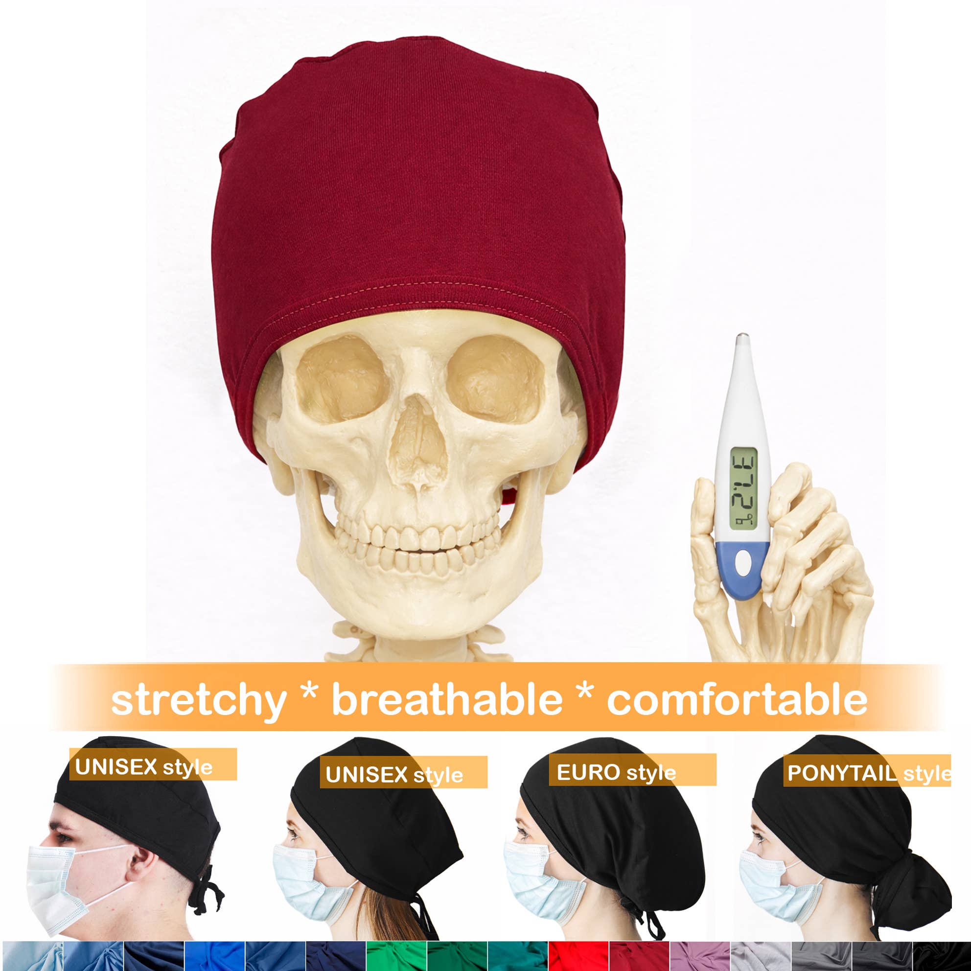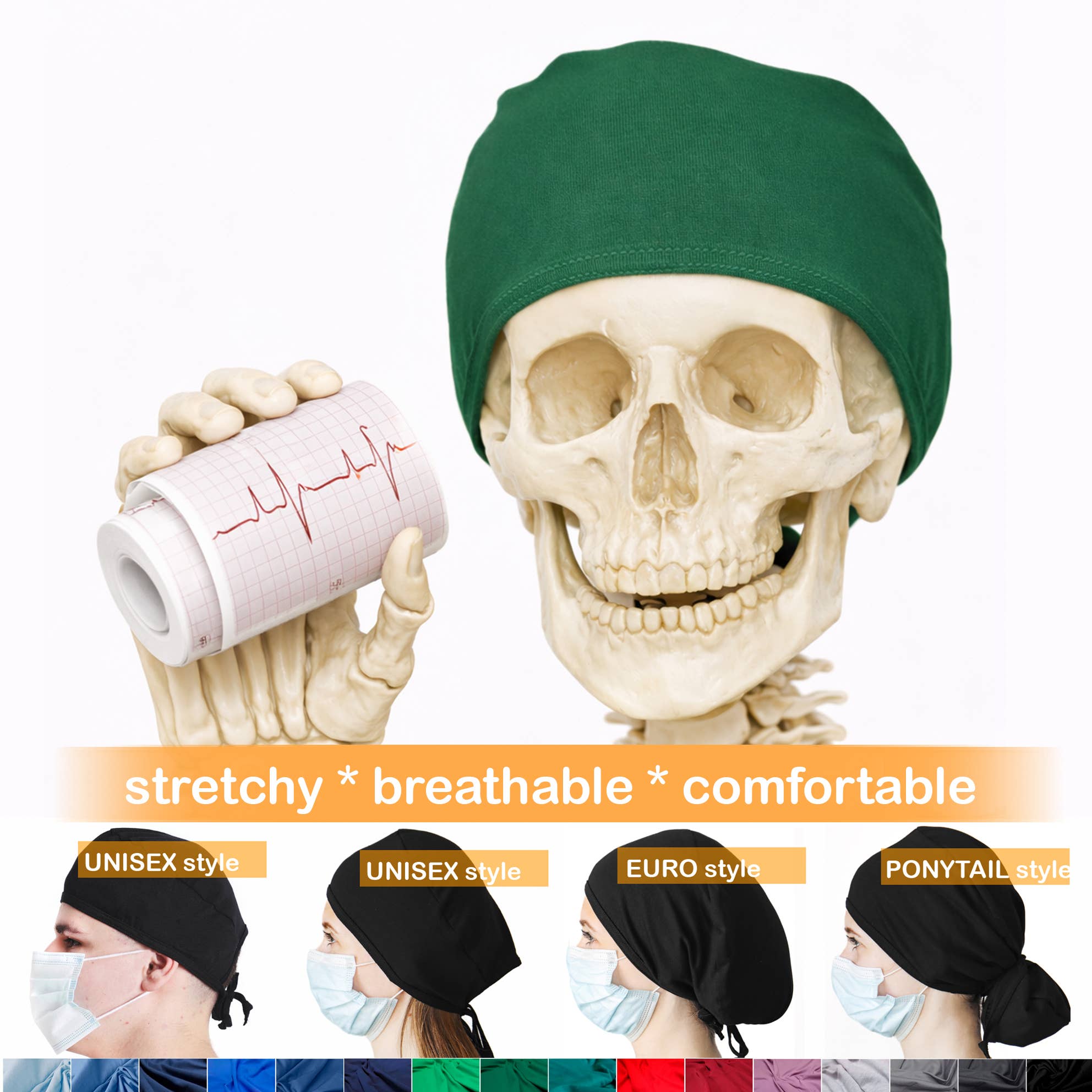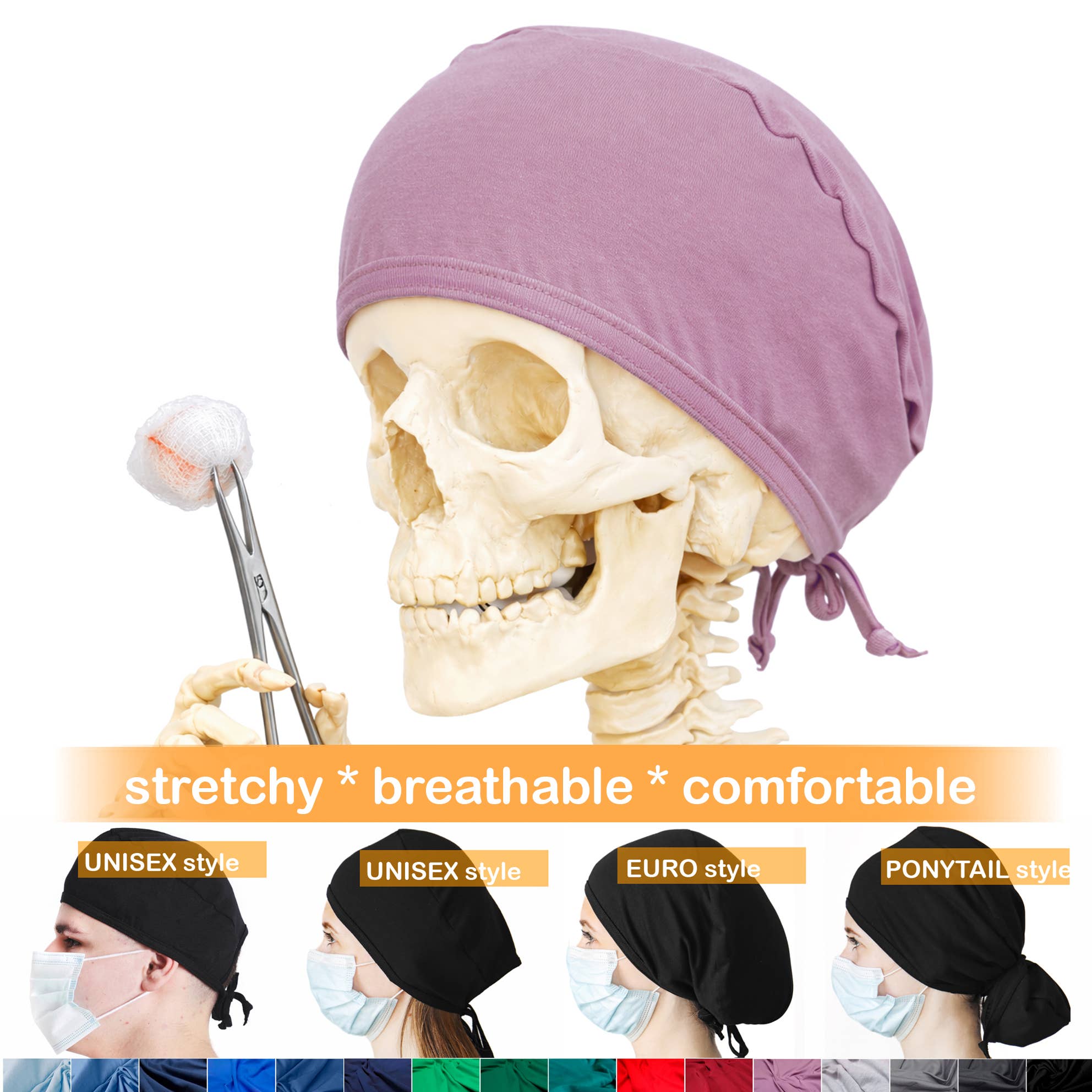 Komfortable stretchy krat caps til travle sundhedspersonale. Elastisk bomuld 95%