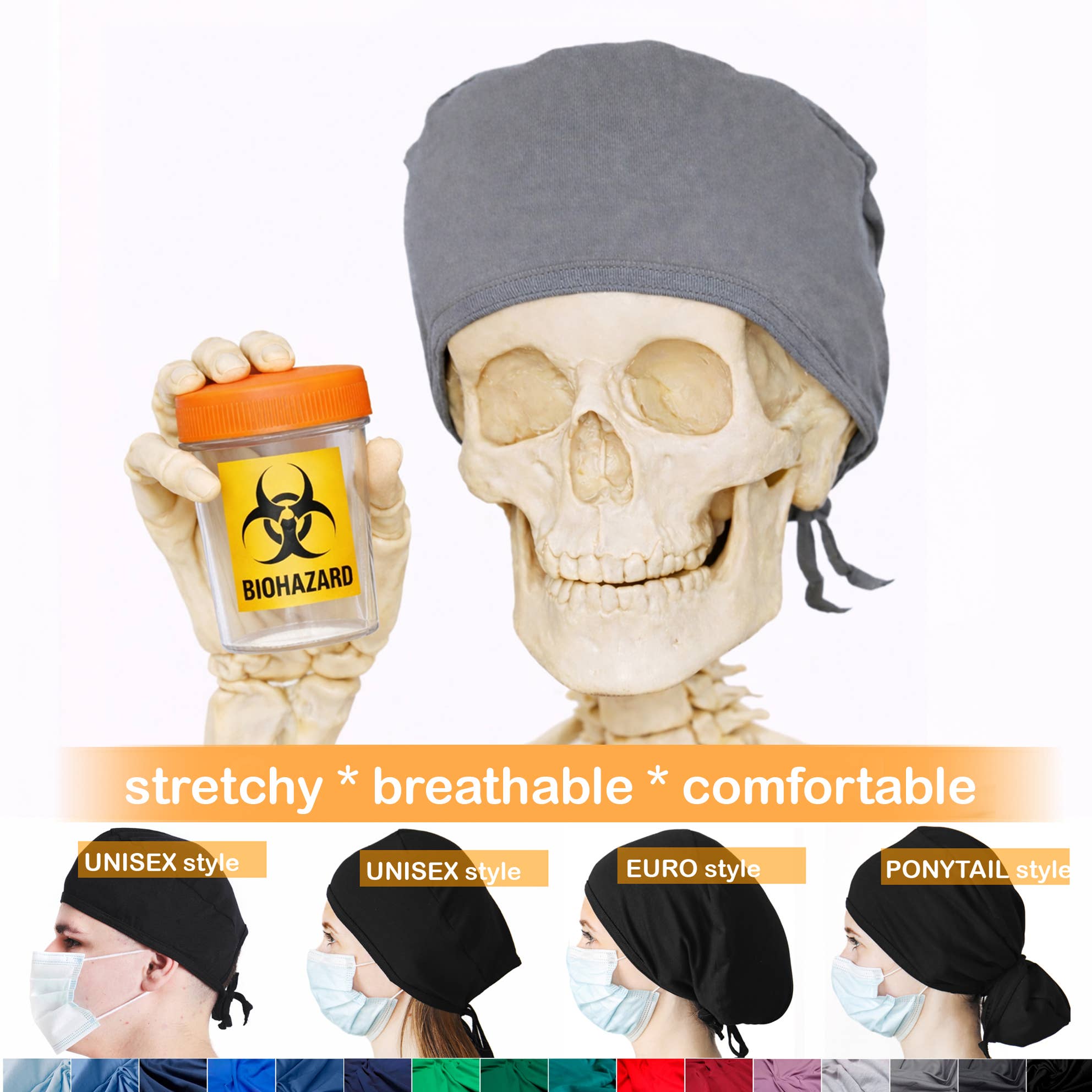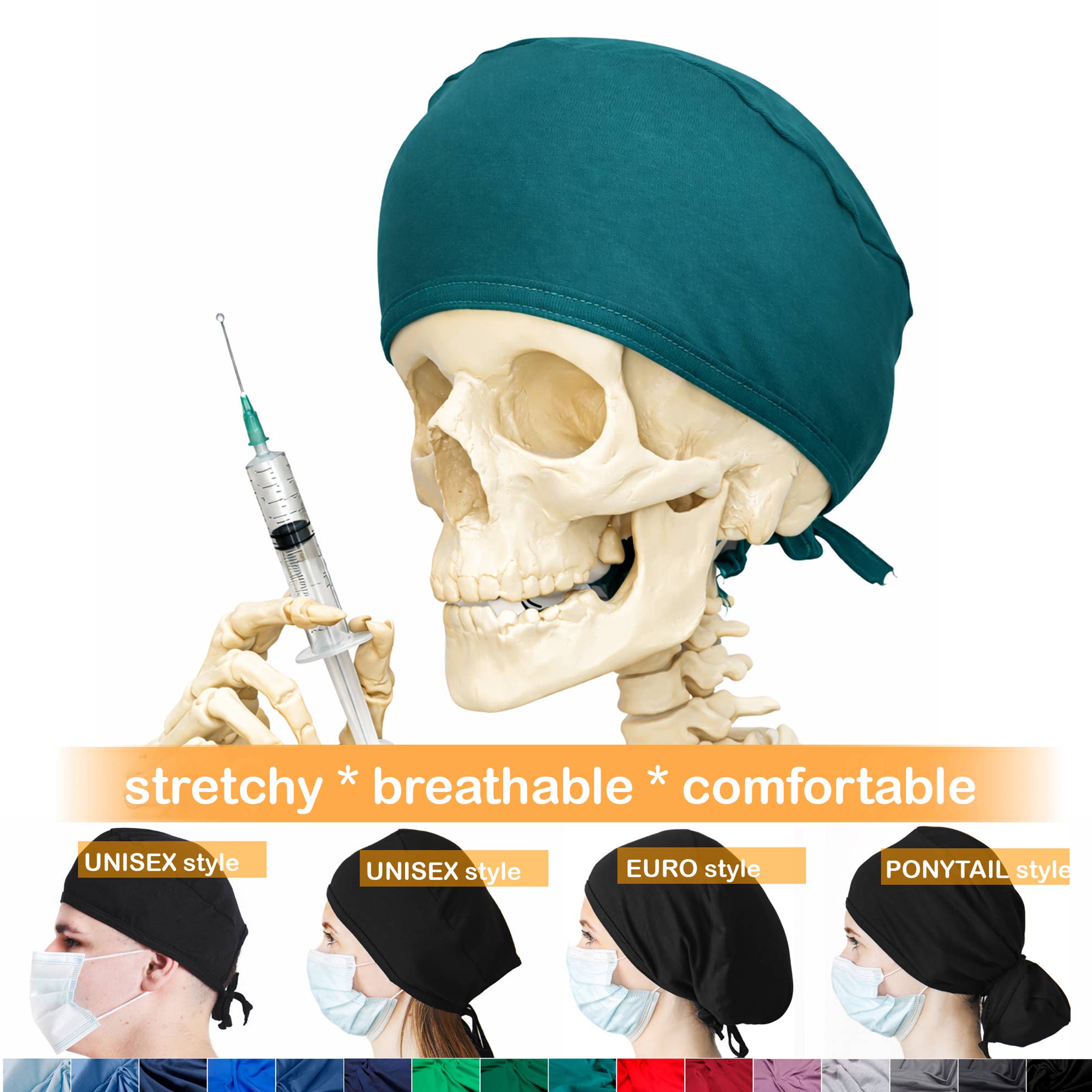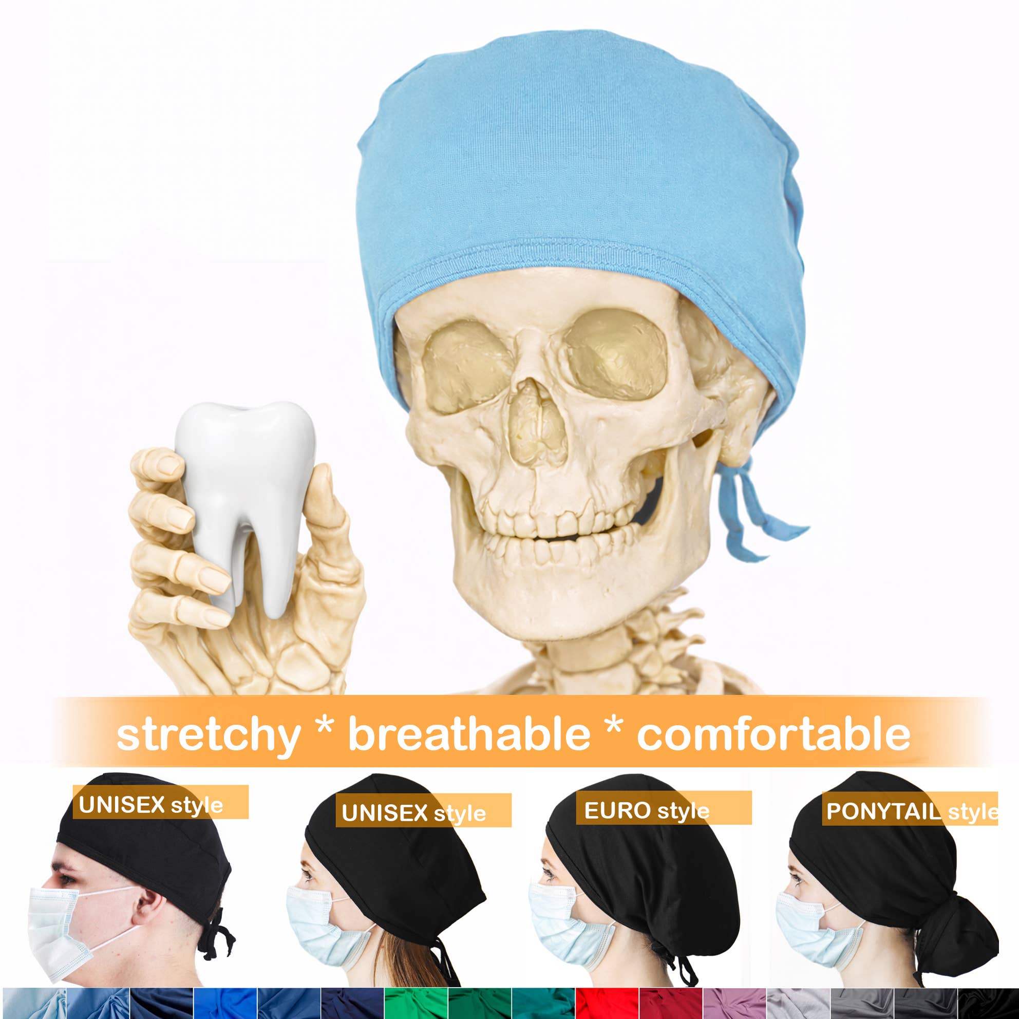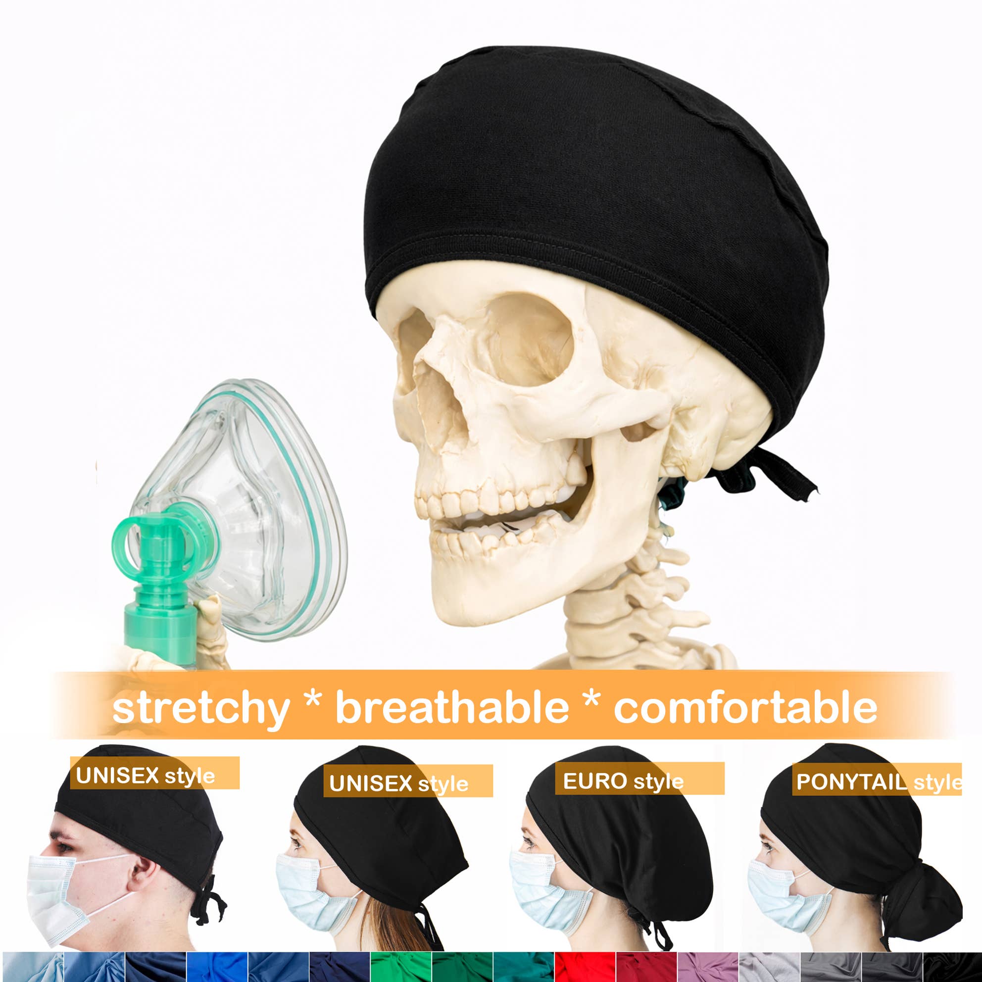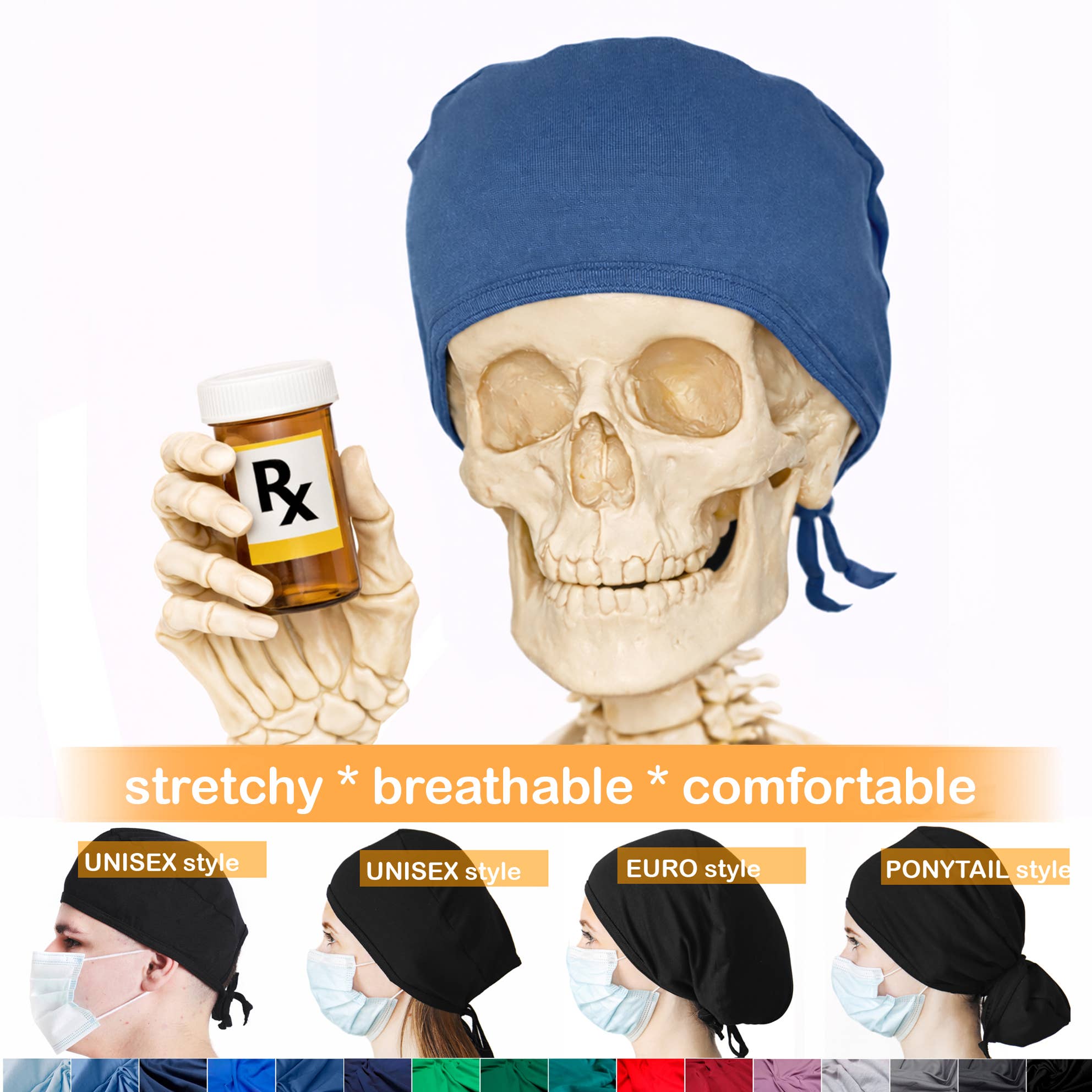 Komfortable stretchy krat caps til travle sundhedspersonale. Elastisk bomuld 95%
