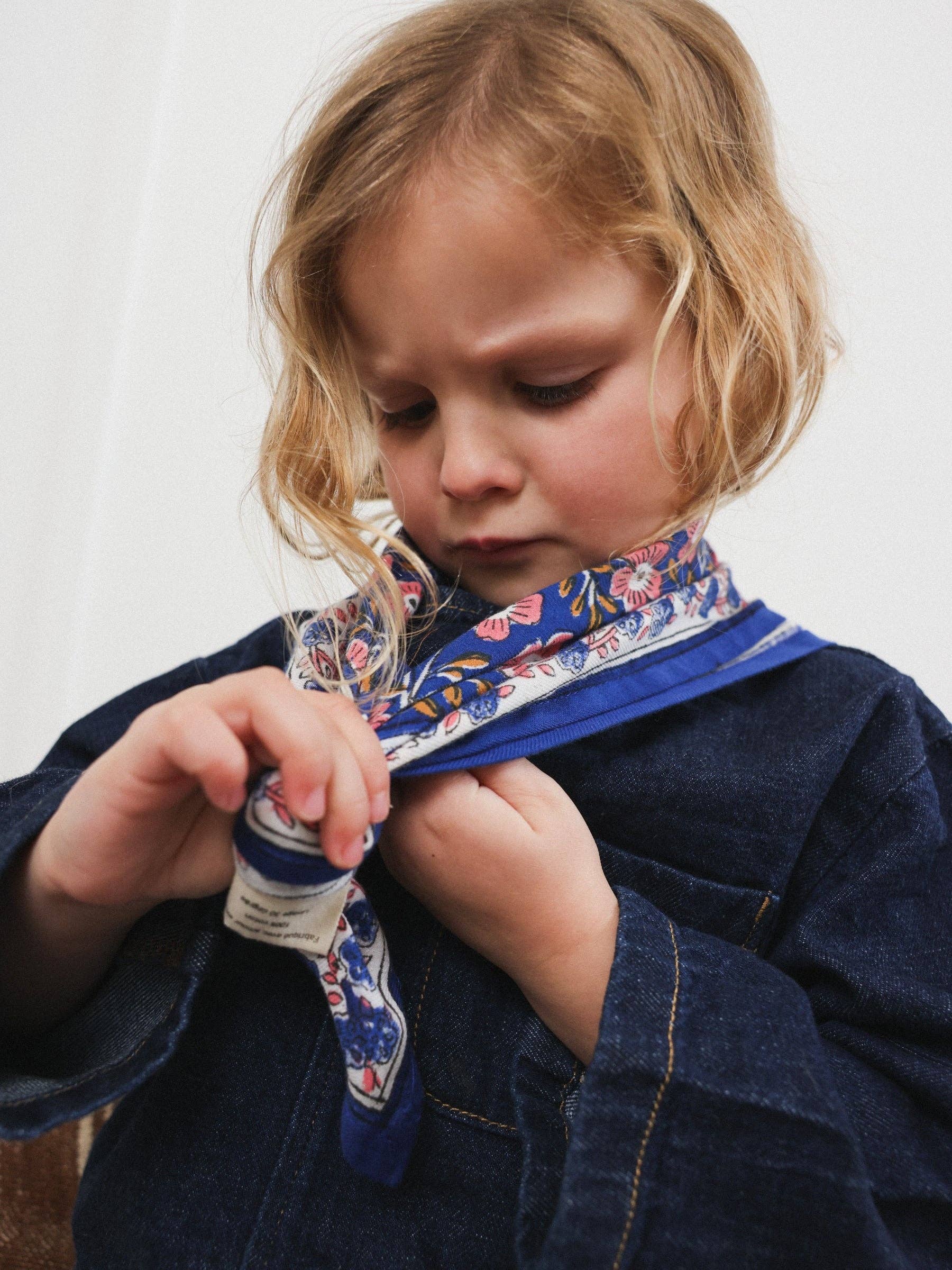 So Family, en historie om passion og overlevering Grundlagt af Sophie, en engageret og kreativ mor, er So Family et mærke designet til hele familien med særlig opmærksomhed på detaljer og smukke materialer. Vores specialitet? Kollektioner af glade og poetiske tilbehør og tørklæder, designet til både store og små. Hvert stykke skiller sig ud med sine blomsterprint, bløde eller strålende farver og en kollektionsånd, der elegant krydser sæsonerne. Omhyggeligt designet i Indien er vores tørklæder blevet ægte favoritter i butikkerne: til at bære, give som gave eller overlevere. Du kan finde So Family hos forhandlere som Fleux, Cigoire, Le Furet du Nord, Fabrique de Style, So Dress eller Au Bonheur de Sophie. Videresalgsklausul: Kunden forpligter sig til ikke at videresælge So Family-produkter til andre professionelle. Enhver overtrædelse af denne regel kan medføre sanktioner eller retsforfølgelse for at beskytte mærkets interesser.