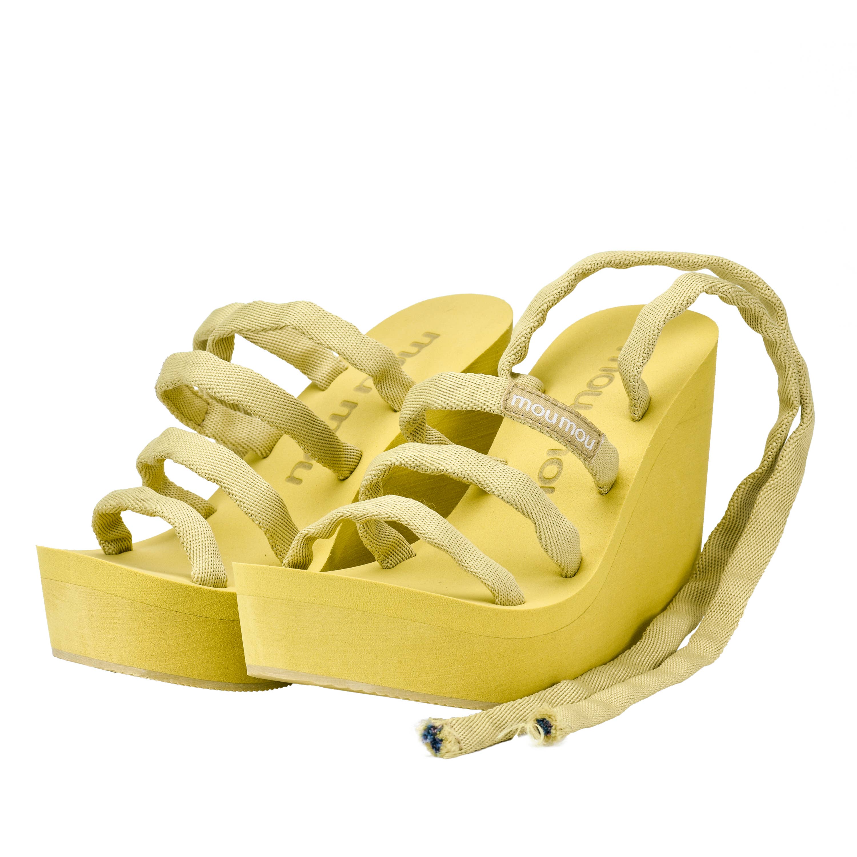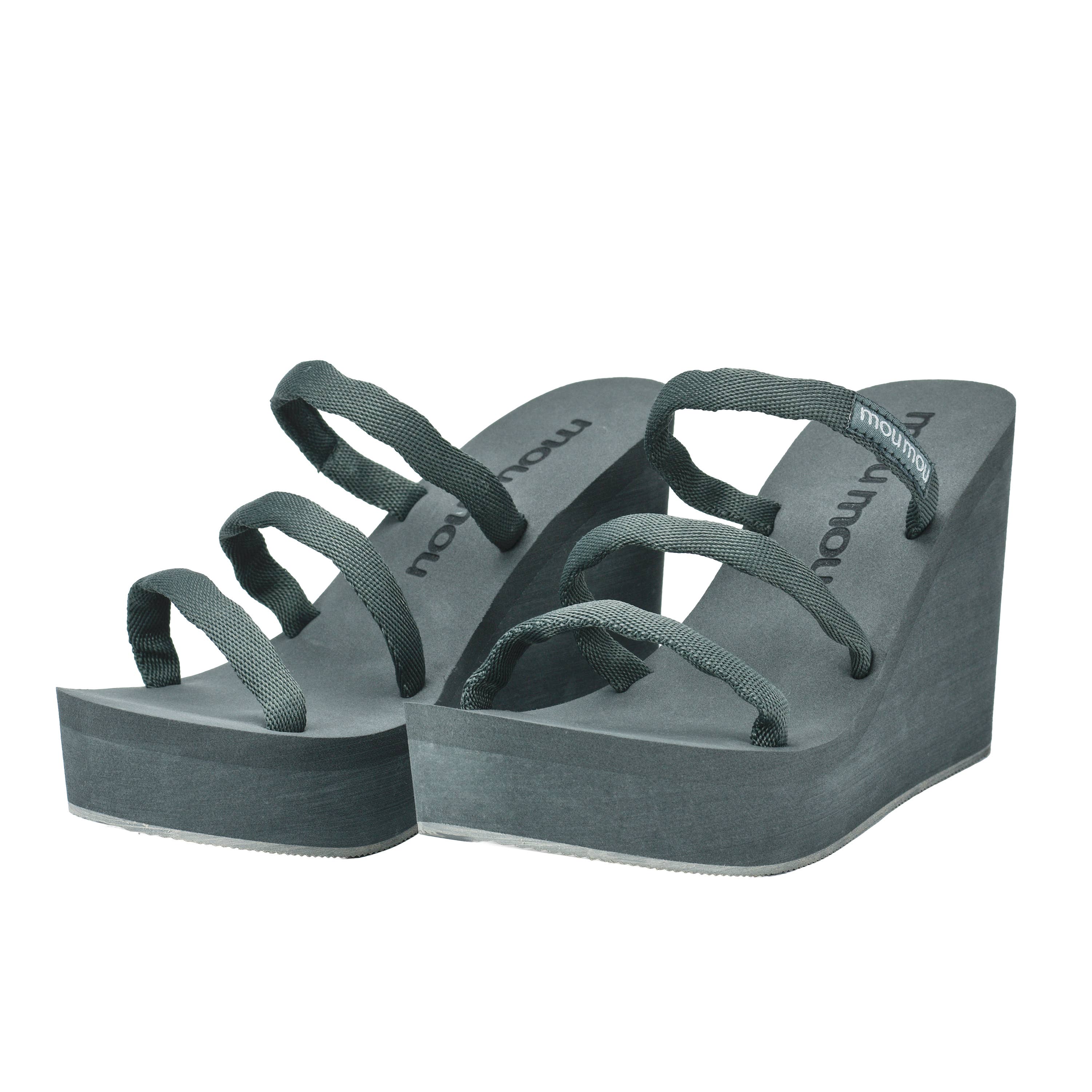 Mou mou's sjove, fashionable kollektion af kilesandaler er designet i Californien og blev inspireret af designerens afslappede livsstil og kærlighed til komfort, dvs. skummet af flip-flops, som designeren båret hver dag vokser op i Bangkok. Hun begyndte at skabe de mest perfekte og komfortable kilesandaler med den rigtige højde at gå rundt hele dagen i, og dermed blev mou mou født.