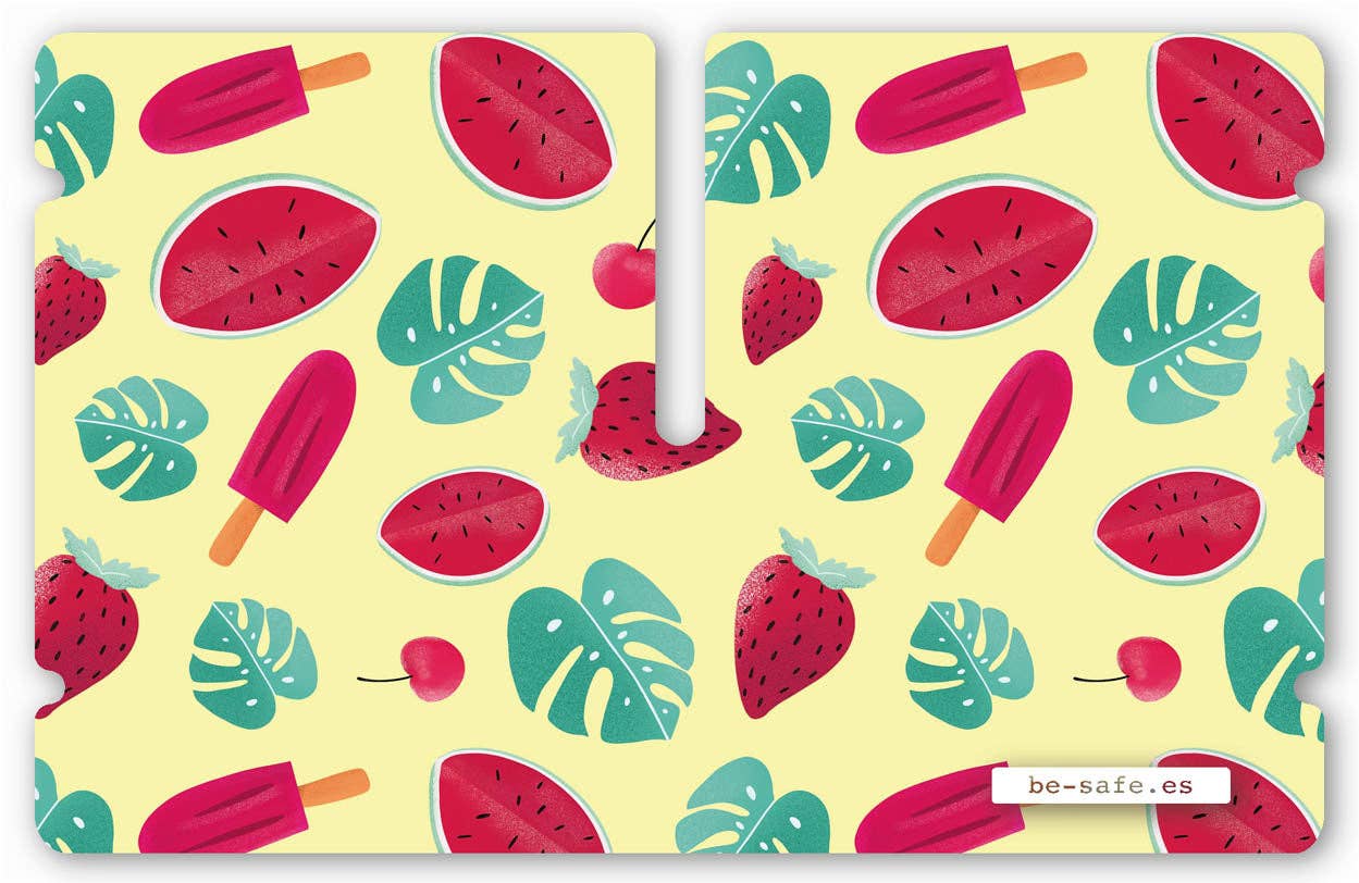 være-safe.es er et 100% initiativ født i nærheden af Russafa, et af de mest repræsentative områder af terreta. Derfor har vi forsøgt at fange friskheden i vores nabolag, når vi designer dette produkt til dig. Fra nabo til nabo. Hvordan kunne det være ellers, hele processen med sin produktion foregår i de samme gader i dette kvarter, udført af 315 Gramos Laboratorio Gráfico.