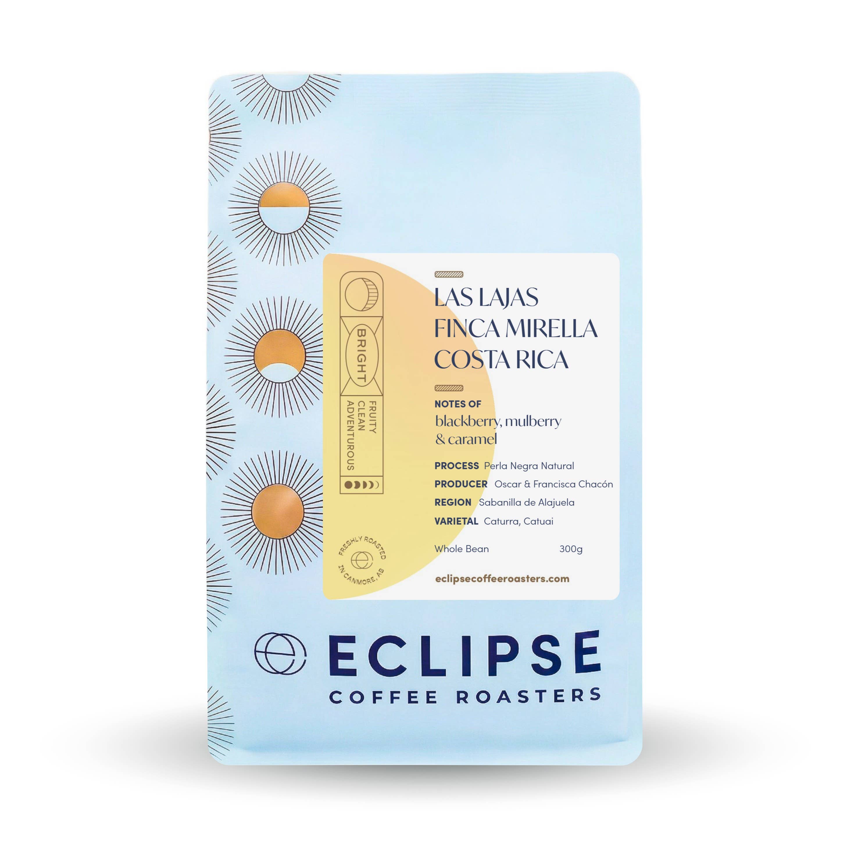 Eclipse Coffee Roasters er en specialkafferister baseret i den maleriske bjergby Canmore, Alberta. Etableret i 2014 med målet om ikke kun at købe og riste enestående kaffe, men også at give et personligt præg med god kundeservice. Følgende giver dig en idé om, hvad du kan forvente af os. Tilgængelig - Ærlighed og gennemsigtighed er nøglen til alt, hvad vi gør. Vi forstår, at alle har forskellige meninger om, hvad der er en god smagende kop kaffe, og vi prøver at være så imødekommende som muligt for den individuelle smag. Vi fører omkring 10-15 forskellige kaffe på et hvilket som helst tidspunkt og steger disse kaffe for at fremhæve de naturlige smag i dem. Kvalitet - Alt, hvad der ristes her på Eclipse, er friskbrændt på bestilling, så du kan være sikker på, at den kaffe, du modtager, er så frisk som muligt ved ankomsten. For hver kaffe finder du en detaljeret beskrivelse af, hvordan den ristes, og hvordan vi synes, at kaffe bedst brygges. Bæredygtighed - Alle vores kaffe gennemgår en uafhængig screeningsproces for at sikre, at kaffen ikke kun dyrkes miljømæssigt ansvarligt, men også på en socialt ansvarlig måde. Du kan være sikker på, at vores kaffe med enkelt oprindelse kun kommer fra de bedste gårde rundt om i verden, og vi belønner disse store gårde ved at betale over markedsprisen for at hjælpe dem med at videreudvikle deres kaffe og også yde støtte til deres lokalsamfund. Alle vores 350 g poser kaffe er nu komposterbare!