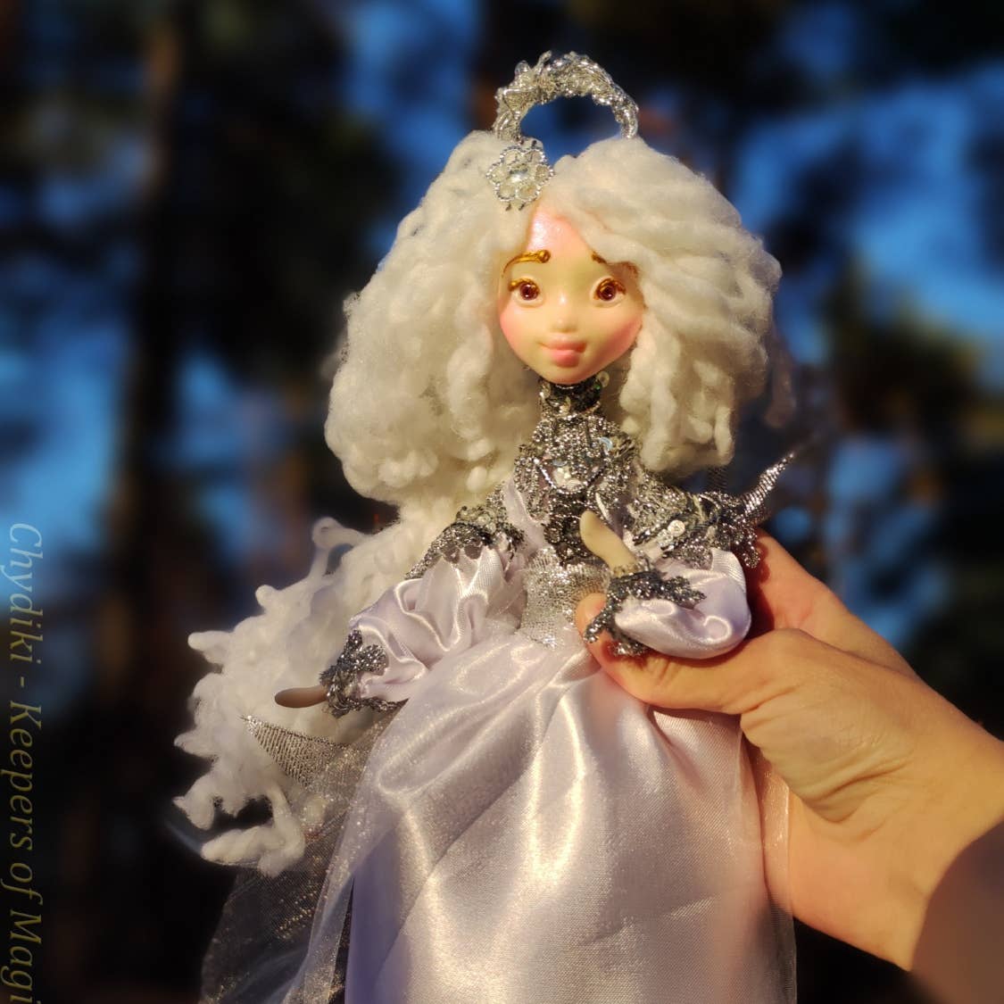 Vi er som et gadeteater! Vi gør folk glade hver weekend her i Kiev i et farverigt sted kaldet Landscape Alley! Vi kommer der for at møde folk, der sætter pris på skønhed og kunst:) De siger, at vores dukker bringer lykke, så de kommer til os igen og igen, og det er så sjovt! Drømme, at de var gået i opfyldelse, og de fortæller os historier om det! Især små børn:) Piger lærer digte af hjertet og reciterer dem til os, og vi giver dem vores fe dukker:) Det bliver så sejt, hvis du også bliver vores ven! Jeg er meget glad for at præsentere dig vores dukker! Disse dukker er magiens vogtere - vi klarer det med min mor, og vi har en magisk historie om disse dukker... Dukker har særlig kraft - de kan bevæge sig med ledning! De har stærk ledning inde, og du kan sikkert bøje dem:) Det er som et dukketeater, men vores teater har eget navn — Theater On The Hand:) Dukkernes ansigter er lavet af polymer ler. hår af farverigt garn og tråde. De er så bløde i kontakt:) Du kan ønske, og hvis du kysser dine kære og recitere dem et digt, bliver denne dukker magisk og dit ønske vil gå i opfyldelse! Dette er 100% håndlavet og hver dukke er unik, fordi vi sculpt hver detalje selv! Det fremgår af vores hænder!