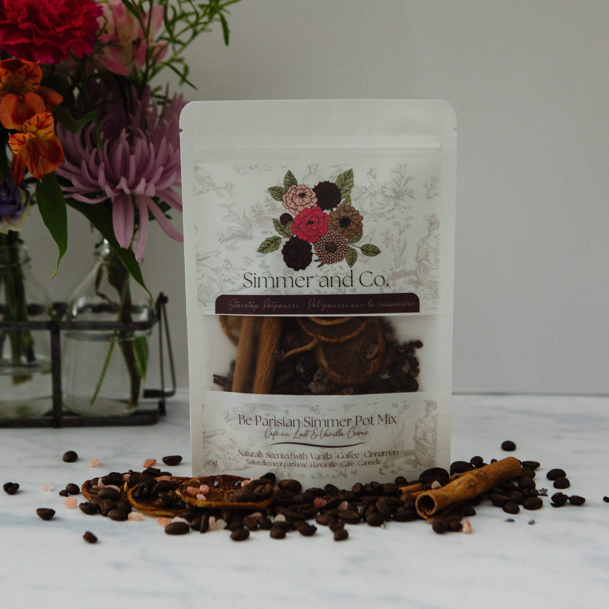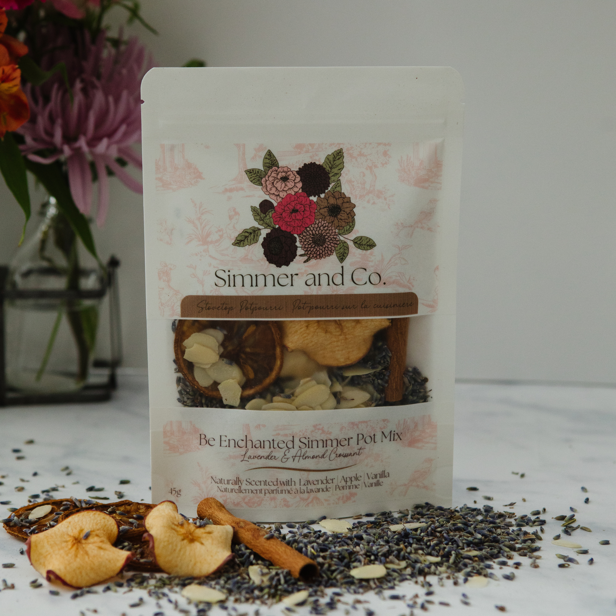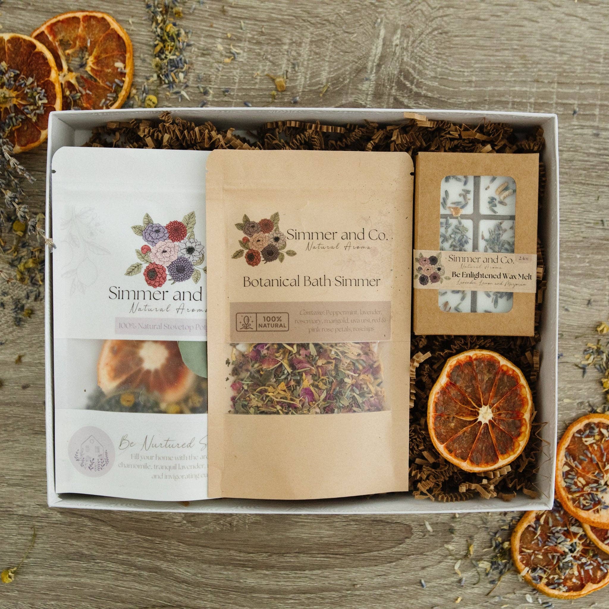 Hos Simmer & Co Natural Aroma begyndte vores historie i 2020 med en passion for at skabe meningsfulde produkter, der forvandler hjem til tilflugtssteder og øjeblikke til værdsatte minder. Inspireret af den varme og forbindelse, som naturlige aromaer bringer, fremstiller vi sikre, helt naturlige hjemmeduftprodukter, der er lige så betænksomme, som de er smukke. Vores signatur simmerblandinger er håndlavede blandinger af tørrede botaniske ingredienser og frugt, dehydreret internt for at sikre friskhed og kvalitet uden konserveringsmidler eller tilsætningsstoffer. Tilsæt blot til en gryde med simrende vand, og de fylder ethvert rum med hyggelig, naturlig duft - hvilket gør dem til et unikt, gaveklart alternativ til stearinlys eller sprays. For at supplere vores blandinger har vi udviklet matchende mists og melts. Mists leverer et øjeblikkeligt pust af naturlig aroma, mens melts giver en stabil, ren duftspredning. Sammen tilbyder de en komplet hjemmedufterfaring, der er sikker, naturlig og alsidig. Siden 2020 er Simmer & Co blevet lagerført af hundredvis af forhandlere i hele Canada og USA. Fra miljøvenlig emballage til dufte inspireret af årstider og historier er hver detalje designet til hyldeappel, gavegivning og kundeloyalitet. Vores mission er enkel: at hjælpe dine kunder med at sænke farten, trække vejret dybt og nyde simmeren.