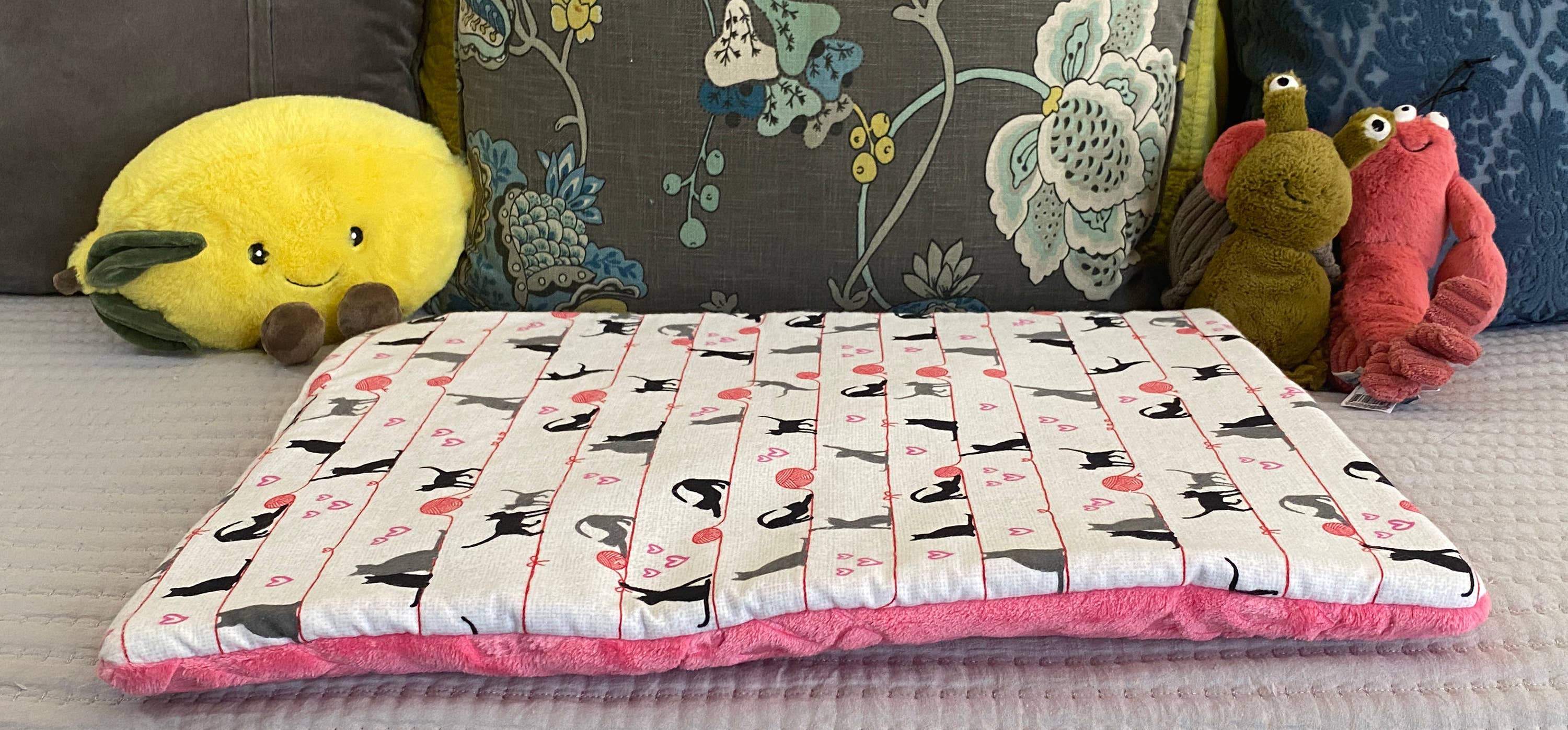 Velkommen til vores Faire Store! Vi er specialiserede i små kæledyrsprodukter (senge/måtter og legetøj) og plyslegetøj til børn og voksne. Vi har altid elsket finurlig og abstrakt kunst, og nu bringer vi den kærlighed til vores serie af kæledyrssenge/måtter og kæledyrslegetøj, til mennesker har vi rygsækklip og plushies! Min søster Marlene og jeg har over 25 års erfaring med legetøjsdesign og produktudvikling. Vi har arbejdet på nogle velroste legetøjslinjer som Pokemon, WWE Action Figures, Dragon Ball Z, Harry Potter og American Kennel Club hundelegetøj og beklædningslinje. Screaming Pickles er vores måde at kombinere kærligheden til finurlig kunst og vores kombinerede viden om legetøjsindustriens trends for både voksne, børn og kæledyr!