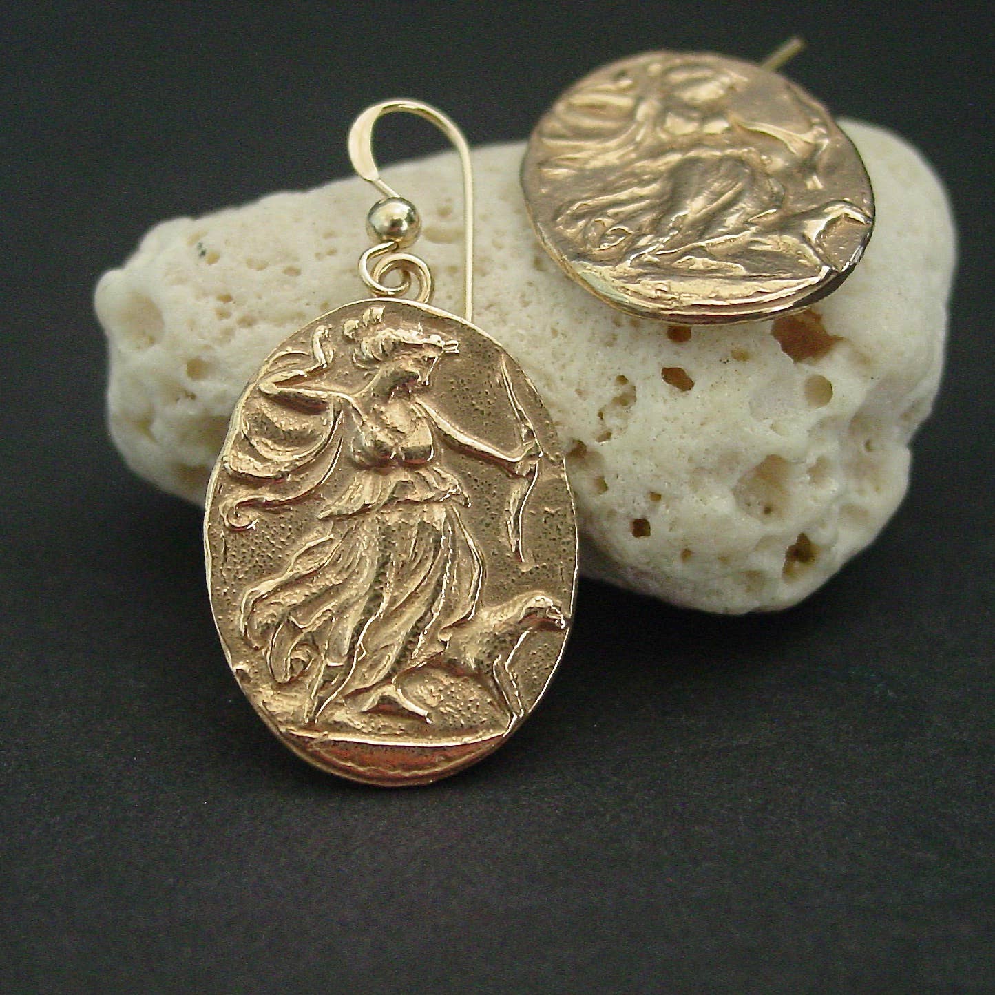 Om kunstneren Virginie „Vie“ Blakey er en fransk, selvlært, billedkunstner og kunsthåndværker juveler. Hun voksede op i Lorraine-regionen i den nordøstlige del af Frankrig og arbejder nu fra sit hjemmestudie i Tampa. Utilfreds med det, hun så på markedet, Vie besluttede at bringe liv til det, der appellerede til hende om de gamle smykker, hun så på museer og så videre. Det startede som noget, hun lavede for sig selv, men snart voksede påskønnelsen for hendes unikke design, der kulminerede med oprettelsen af Vis à Vis smykker, hvilket betyder ansigt til ansigt, i 2005. Efterhånden som det udviklede sig og voksede, det er nu et mand og kone-team. Inspireret af mytologi, gamle civilisationer og det fri, Vie håndarbejder sine egne forme fra skulpturer, mønter, komoer og andre historiske genstande. Hun udskærer sine egne frimærker. Hun laver hvert stykke individuelt og underskriver derefter ryggen. Hvert stykke har sit eget unikke og autentiske udseende. Vis à Vis smykker genskaber den meget efterspurgte æstetik af historiske artefakter med et strejf af moderne design.