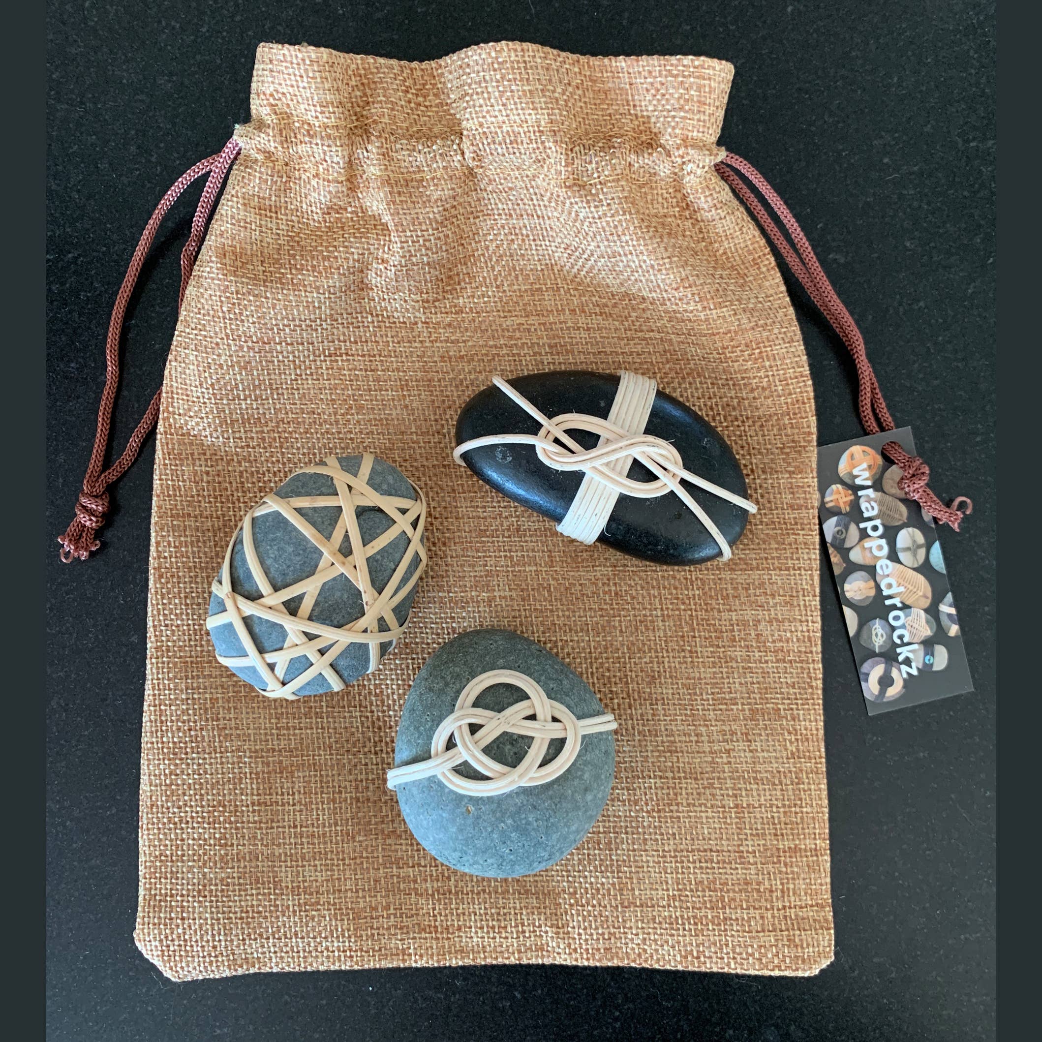 Betsy Bauer Studio skaber Wrappedrockz og smykker lavet af udvalgte klipper og naturlige sukkerrør. Inspireret af hendes Zen-praksis og den primære energi i det sydvestlige landskab, kunstner Betsy Bauer fremstiller omhyggeligt disse tilbud af kunst, natur og helbredelse i hendes Santa Fe-studie. Betsy Bauer's Wrappedrockz findes i Martha Stewart Living, Museum of Arts & Design Store NYC, Georgia O'Keeffe Museum Shop Santa Fe, Museum of Contemporary Art San Diego på La Jolla & American Craft Council Magazine. Enkel og symbolsk, Wrappedrockz er designet til at blive brugt på mange måder. Giv dem til venner eller familie for at fejre en særlig lejlighed eller for at huske kære. Placer dem på et alter under bøn og meditation. Eller bare vis dem i en vignet eller et bordbillede for at forbedre din forbindelse til den naturlige verden.