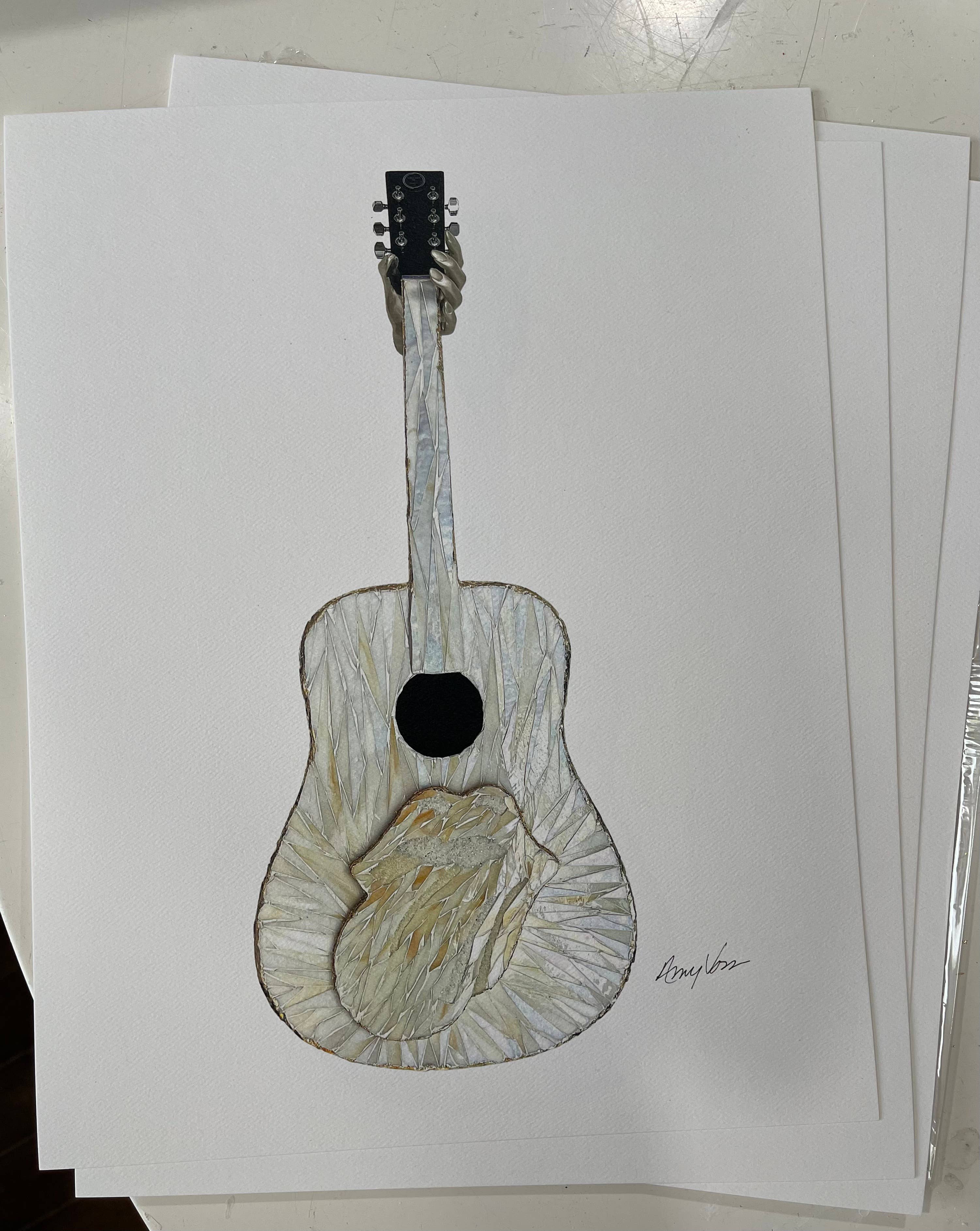 Som glaskunstner, der skaber en af en slags glasskulpturer på akustiske guitarer, Jeg har forvandlet mine kreationer til tryk. Hvert guitardesign er unikt og duplikeres aldrig, og udskrifterne holder designene levende for at blive nydt af alle.
