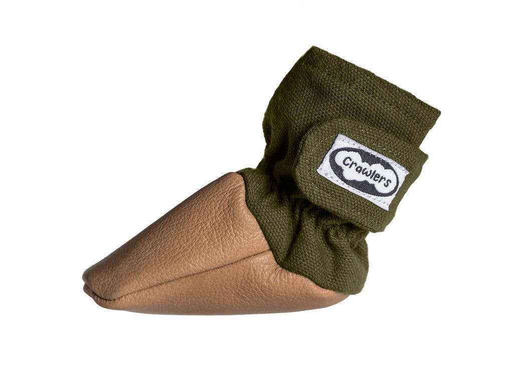 Boogie Boots startede efter en meget frustrerende dag i sneen, hvor min yngste søns sko og støvler konstant faldt af. Jeg lå vågen og visualiserede, hvad jeg havde brug for, og indså, at almindelige babysko bare ikke er designet til kravlende babyer. Således blev Crawlers, den kravlende babysko, skabt. Der findes ingen andre sko som disse. De bruger et patentanmeldt design for at tilbyde forældre enestående bekvemmelighed, da de er nemme at få på, de bliver på, og de er virkelig designet til at bevæge sig med babyen. Crawlers er ergonomisk designet til kravlen: de har to såler og spejler formen på en kravlende babys fod. Crawlers fremmer sund muskel- og fodudvikling ved at tillade en fuld bevægelsesfrihed, og de bliver på de små fødder. Crawlers er håndlavede i Vancouver, BC. Boogie Boots bruger kvalitetsmaterialer til at lave kvalitetsprodukter.