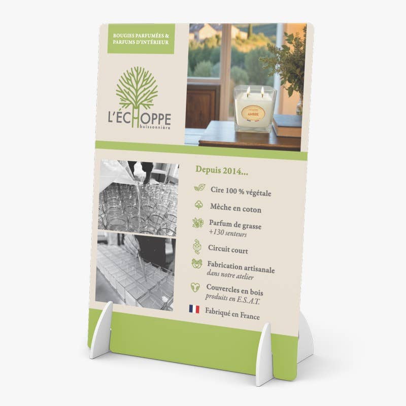 EN BOD FØDT I 2014... for at skabe et rent vegetabilsk lys med en duft, der er tilpasset til en spredning, der hverken er for kraftig eller for svag. Et lys, der brænder 100% og er kalibreret til at have, afhængigt af rummet, en total spredning af duften. +130 DUFTE OG +10 FORMATER AF LYS bestående af en til fem bomuldsvæger og 100% vegetabilsk voks certificeret af Ecocert, uden pesticider, ingen GMO'er, og i overensstemmelse med europæiske standarder. Lysene har alle låg af træ fra Ardèche, fremstillet af et arbejdsstøttecenter, ESAT Les Amandiers. Duftene kommer fra Grasse, verdens parfumehovedstad. LIGE SÅ MANGE DIFFUSERE OG INDENDØRS SPRAY... takket være brugen af et innovativt biosourcet opløsningsmiddel uden alkohol og fra en fornybar kilde. FRANSK HÅNDVÆRKSPRODUKTION Alle vores duftkreationer er håndlavet i Frankrig. Alle vores produktionsprocesser - fra blanding af voks og duftessenser til påfyldning af glas og flasker - udføres i hånden i vores værksted i Aix-en-Provence.