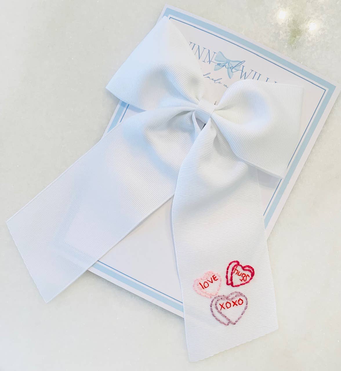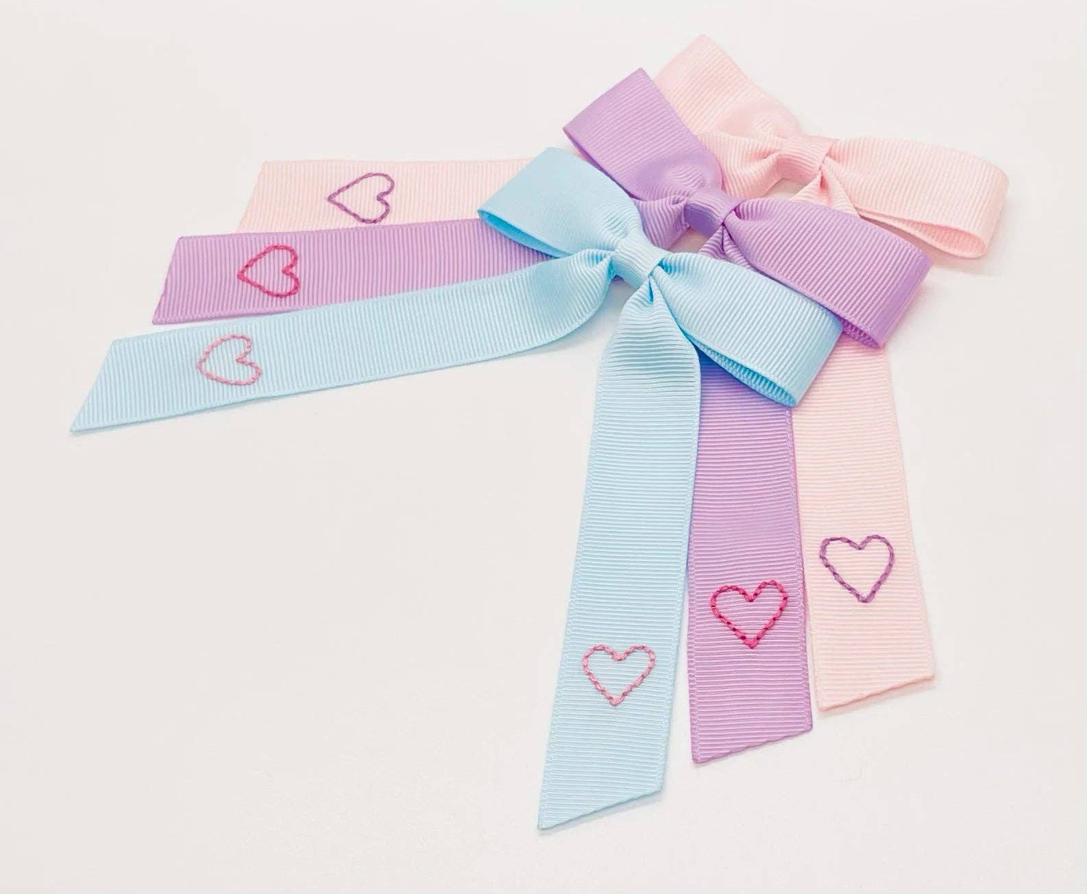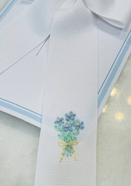 To søstre laver håndbroderede buer.