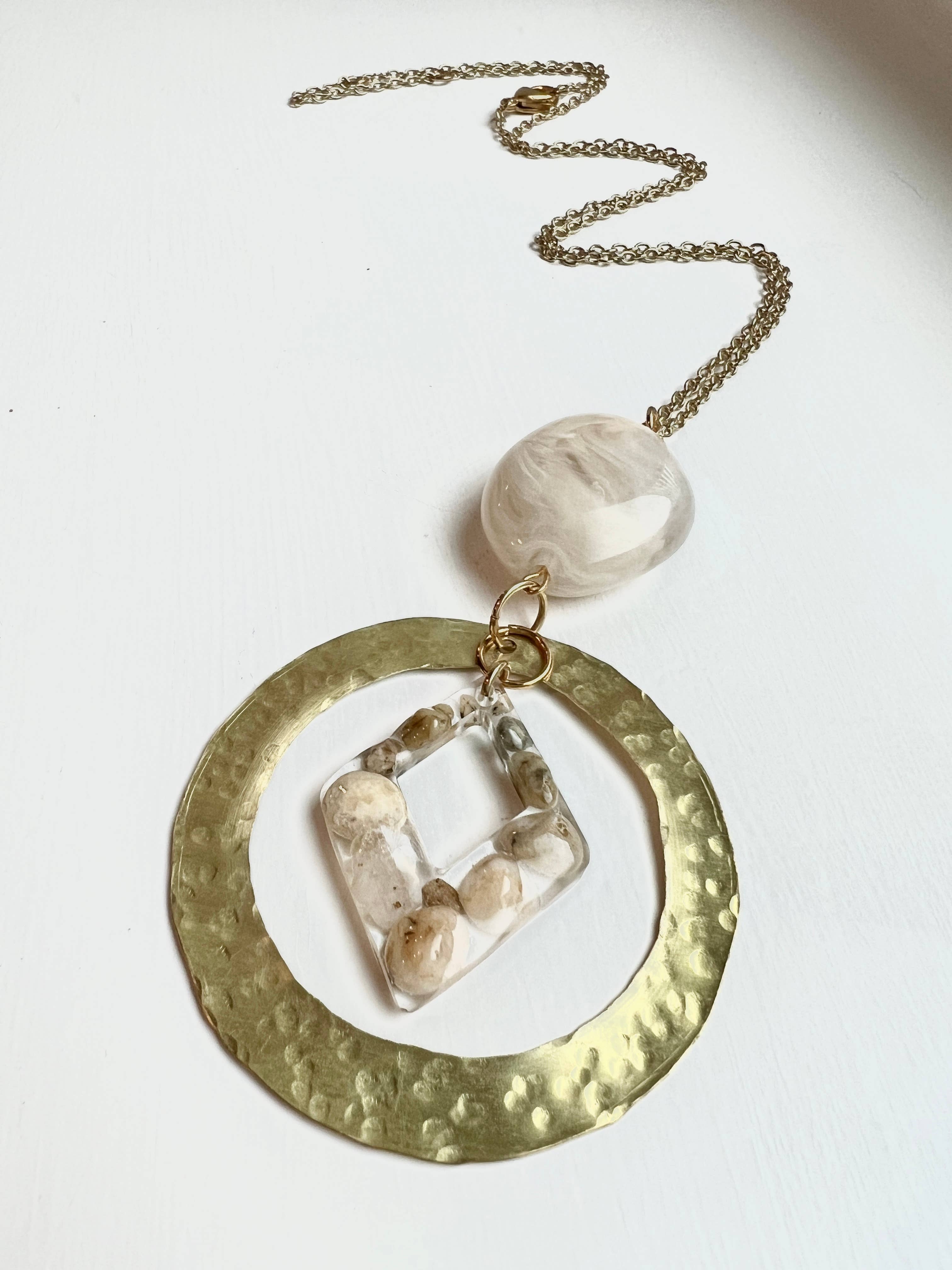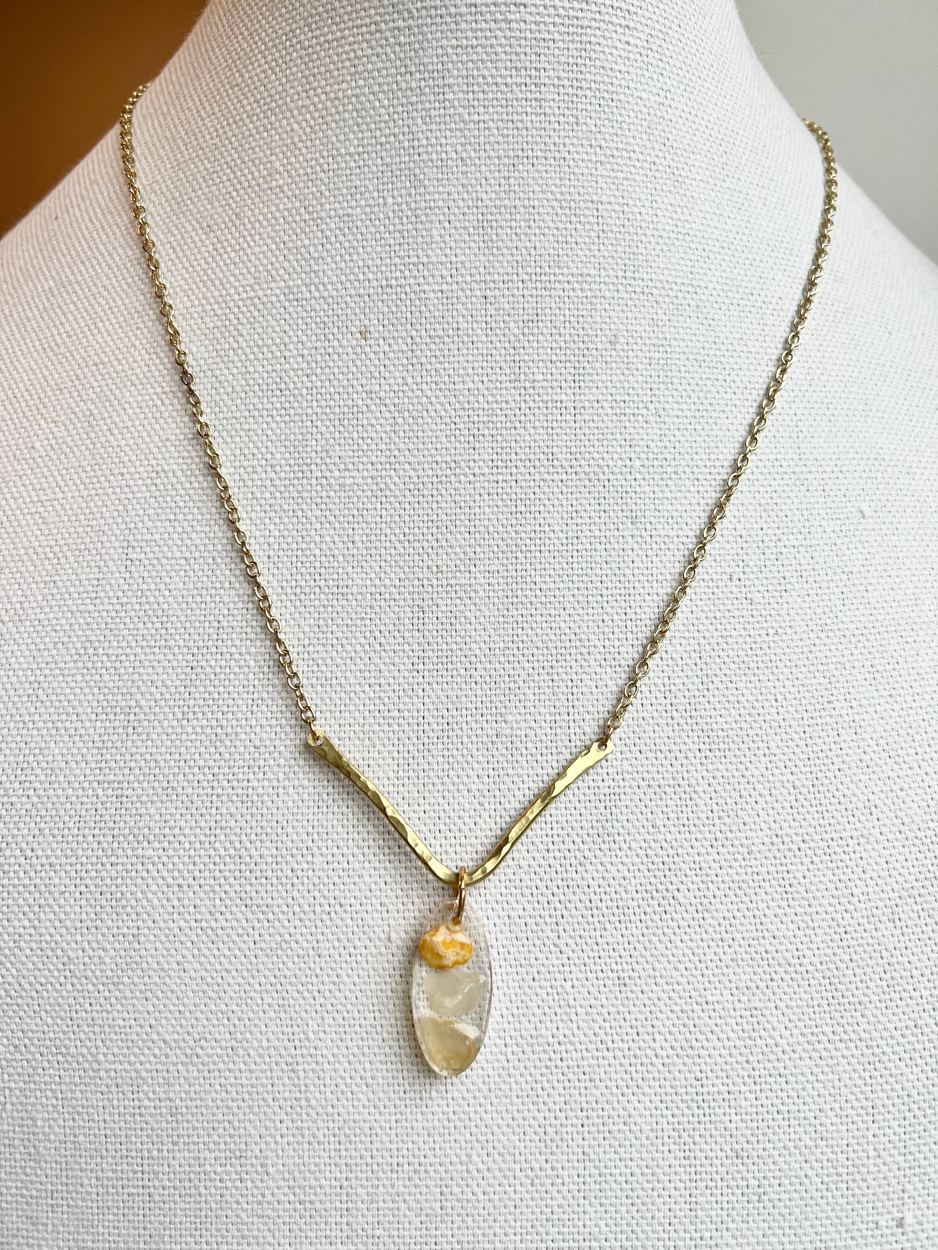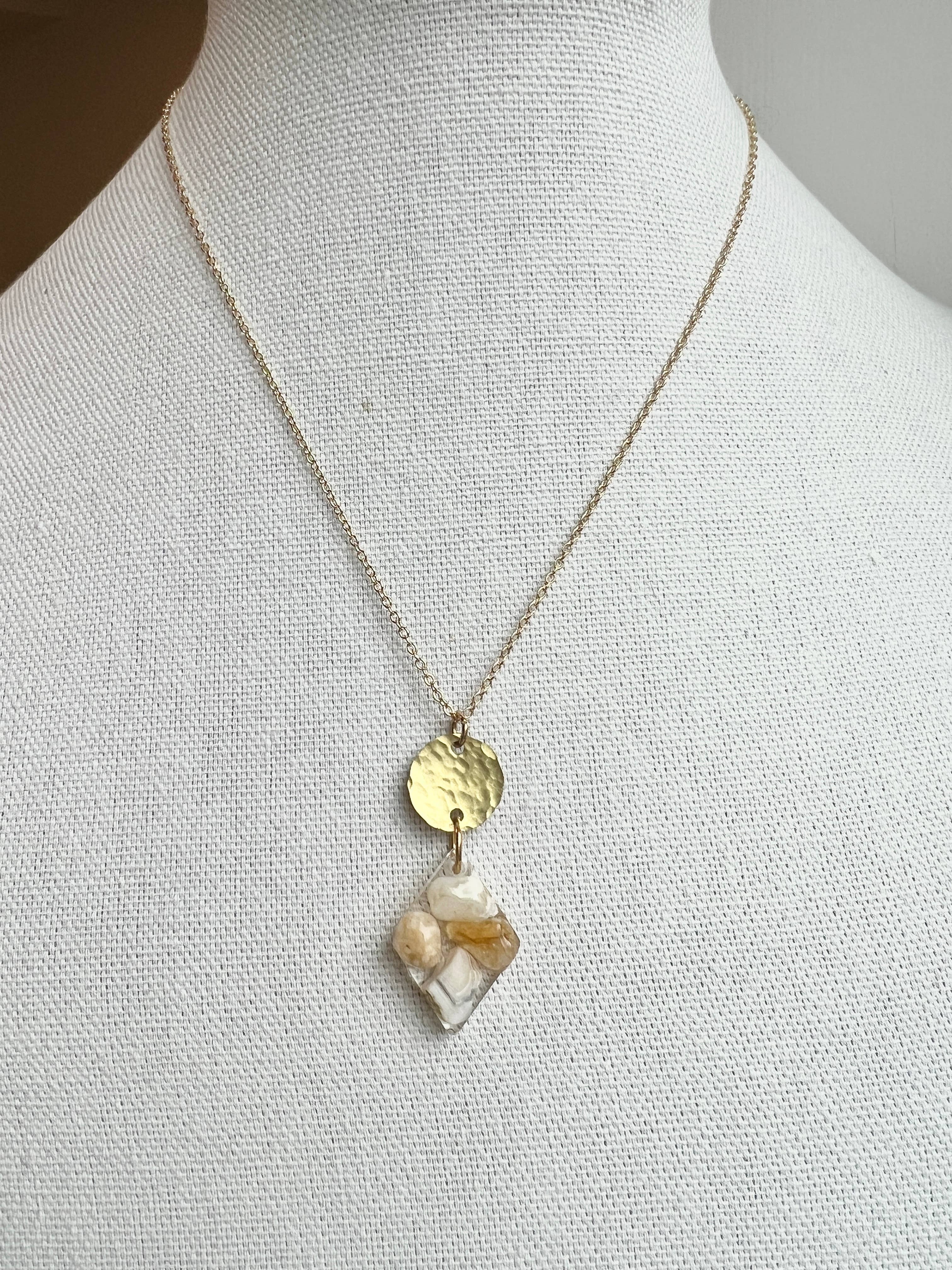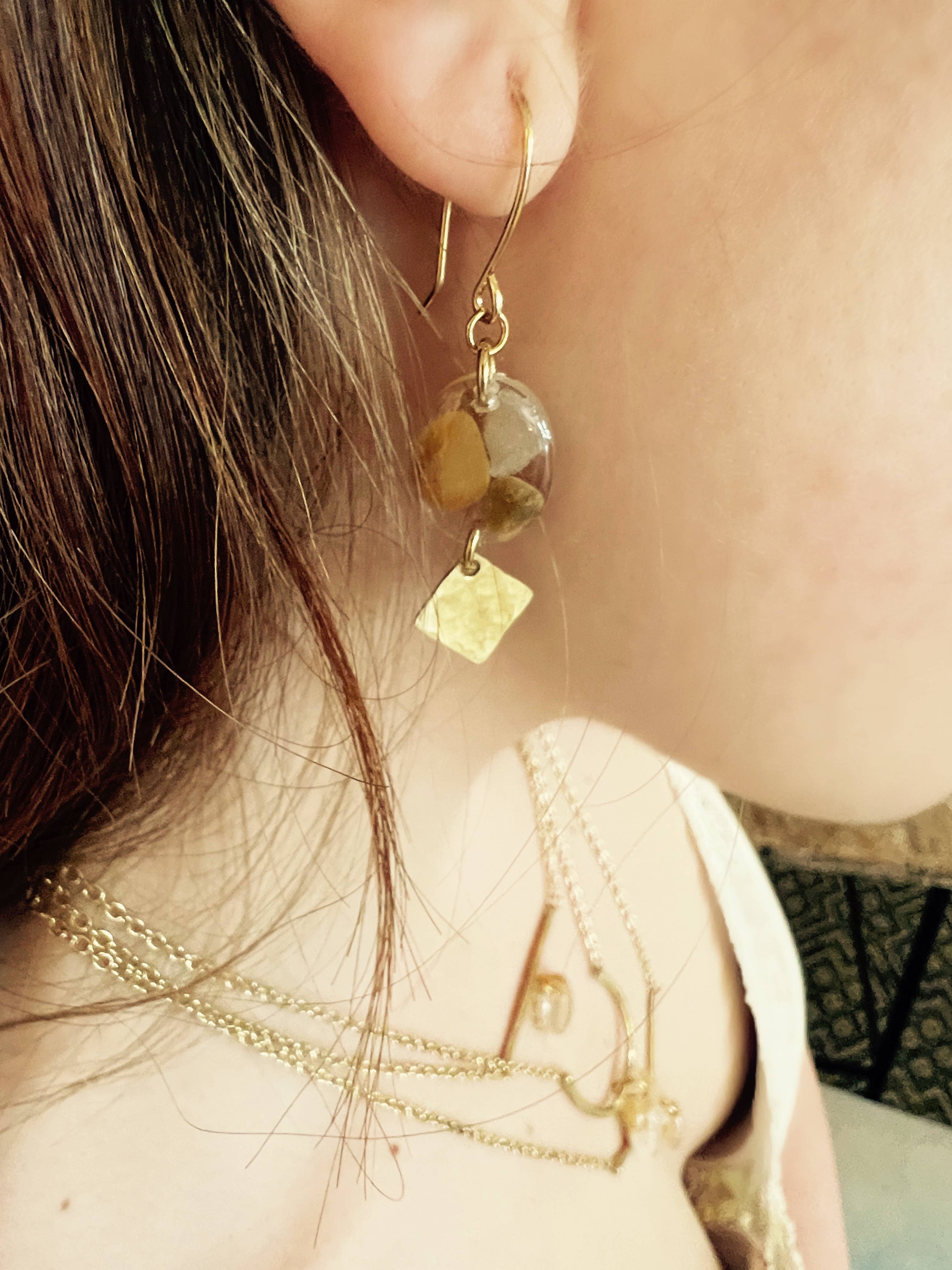 Etisk og bæredygtigt fremskaffede genbrugsmaterialer omfatter hvert håndlavet stykke arbejde. Alle smykker er skabt i mit Portland, Oregon studie, ved hjælp af dyrebare & genanvendte metaller, miljøvenlig harpiks, genbrugte vintage smykker, og kombineret med Moder Nature"s gaver fra jorden og havet. Hver sten, skal eller fossil udsmykning er fundet under mine mange rejser og beachcombing-eventyr!