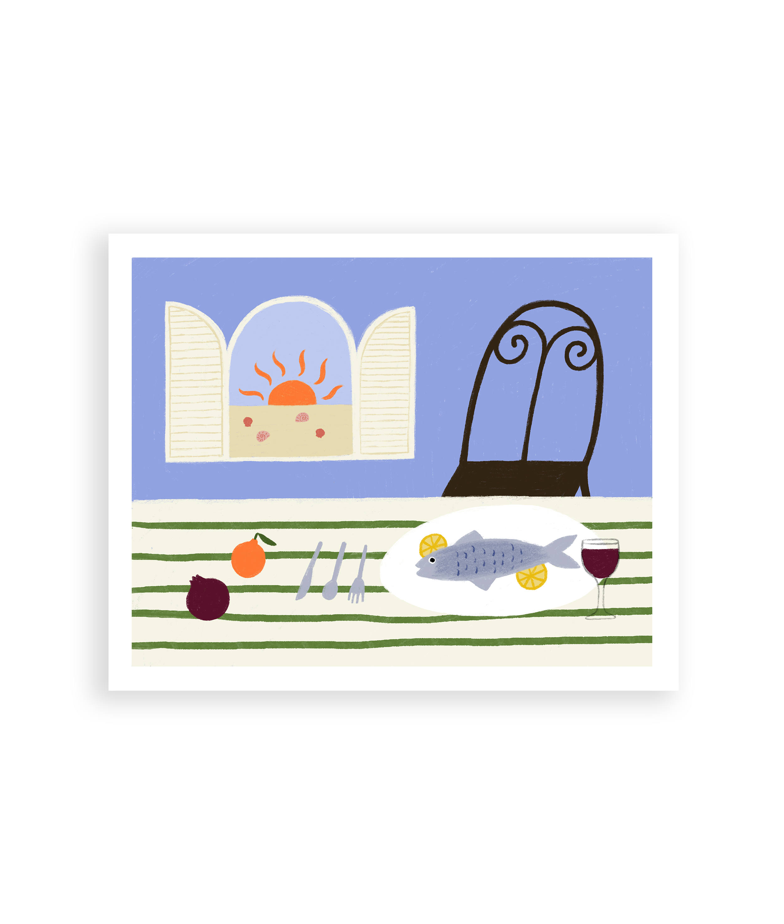Som set i Maison Flâneur. Allison Poplett er en kunstner baseret i Chicago, IL. Hun startede sin karriere som in-house designer hos Third Man Records, Jack Whites Nashville-baserede pladeselskab, i to år, før hun begav sig ud på egen hånd og startede sin egen virksomhed og brand i 2020. Hun skaber værker i både digitale og akryle medier, påvirket af hendes grafiske designbaggrund og beundring for historiske kunstbevægelser. Hun henter inspiration fra naturen, de dristige, farverige strøg fra Matisse og den kulturelle rigdom i Italien og Frankrig. Hun elsker at romantisere hverdagens enkeltheder i sit arbejde, hvad enten det er et roligt glas vin, et livligt måltid eller en delikat buket blomster. I et forsøg på at skabe en mere bæredygtig virksomhed bliver alle hendes tryk lavet efter bestilling, så der ikke er noget spildt lager. Hendes designs er alle designet og pakket med stor omhu i hendes enkvindes-studie. Hendes brand er en undersøgelse i hverdagsromantik - der inviterer dig ind i en verden, hvor skønhed lever i de små, enkle øjeblikke.