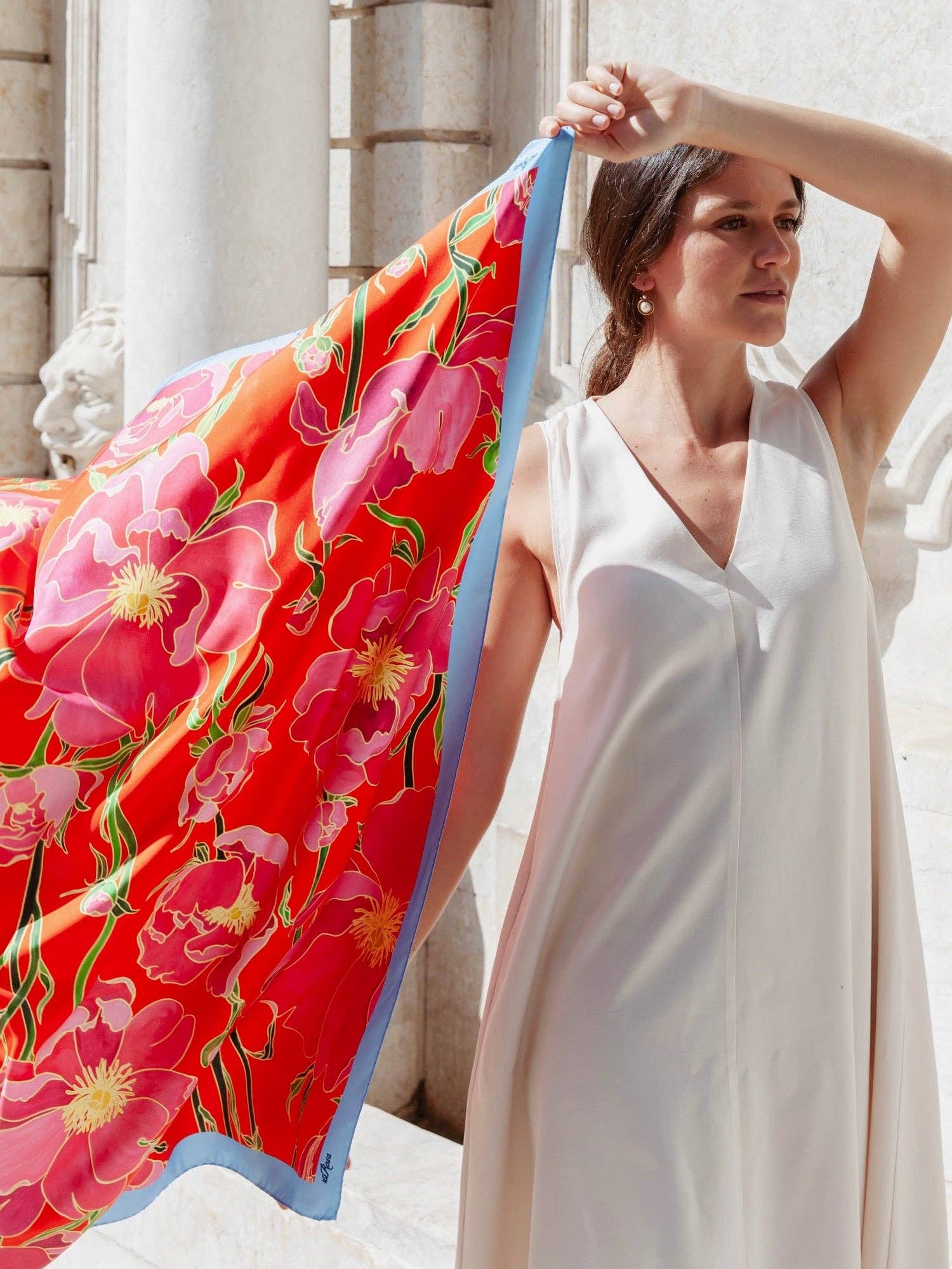 Oprettet i Lissabon af den polske kunstner, Weronika Anna Rosa, mærket skiller sig ud gennem sine blomstrende mønstre og brugen af farver vibrerende. Hvert mønster er som en rejse under Hvilket Weronika oversætter sine malede kreationer til Hånden lavet af udsøgt levende materiale. Den tilbehør produceres i begrænsede udgaver, i Norditalien, med den største respekt for miljøet. For at lave vores tørklæder bruger vi 100% økologisk silke, certificeret af OEKO-TEX standard 100 og GOTS. Vores mission er at tilføje et lille strejf Ekstraordinært i hverdagen