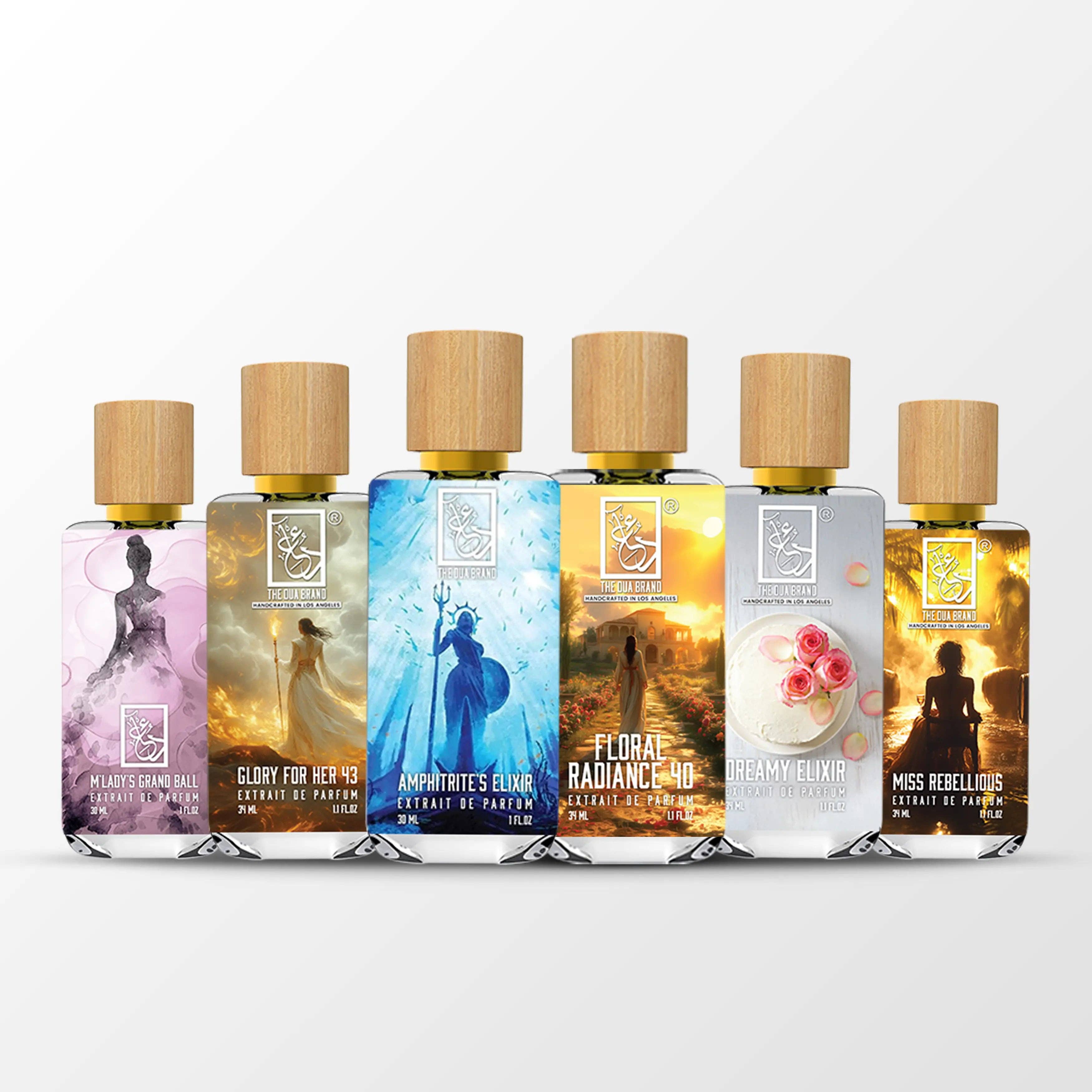 Dua Brand er et uafhængigt niche dufthus beliggende i Los Angeles, USA. Vi leverer håndlavede parfumeekstraktdufte ved hjælp af naturlige olier, der holder på din hud flere gange længere end mange af favoritterne i duftverdenen! Dua Fragrances parfumeekstrakter er virkelig for begge, duftkenderen, der værdsætter kvalitet frem for alt, og den daglige person, der ønsker at være sikker på, at de er den bedst ildelugtende person i rummet. Alle dufte gennemgår inden frigivelse strenge QC- og stabilitetstest under tilsyn af Mahsam Raza. Derudover købes vores råvarer gennem de absolut bedste producenter som IFF, Firmenich, Givaudan, & Robertet; for at nævne nogle få. De naturlige ingredienser, som Dua Fragrances-ekstrakter består af, høstes og anskaffes fra hele verden, derefter forarbejdes og sammensættes i Europa under nøje tilsyn af IFRA-certificerede kemikere, før de transporteres til USA, hvor de dygtigt blandes og håndlavede af Mahsam Raza.