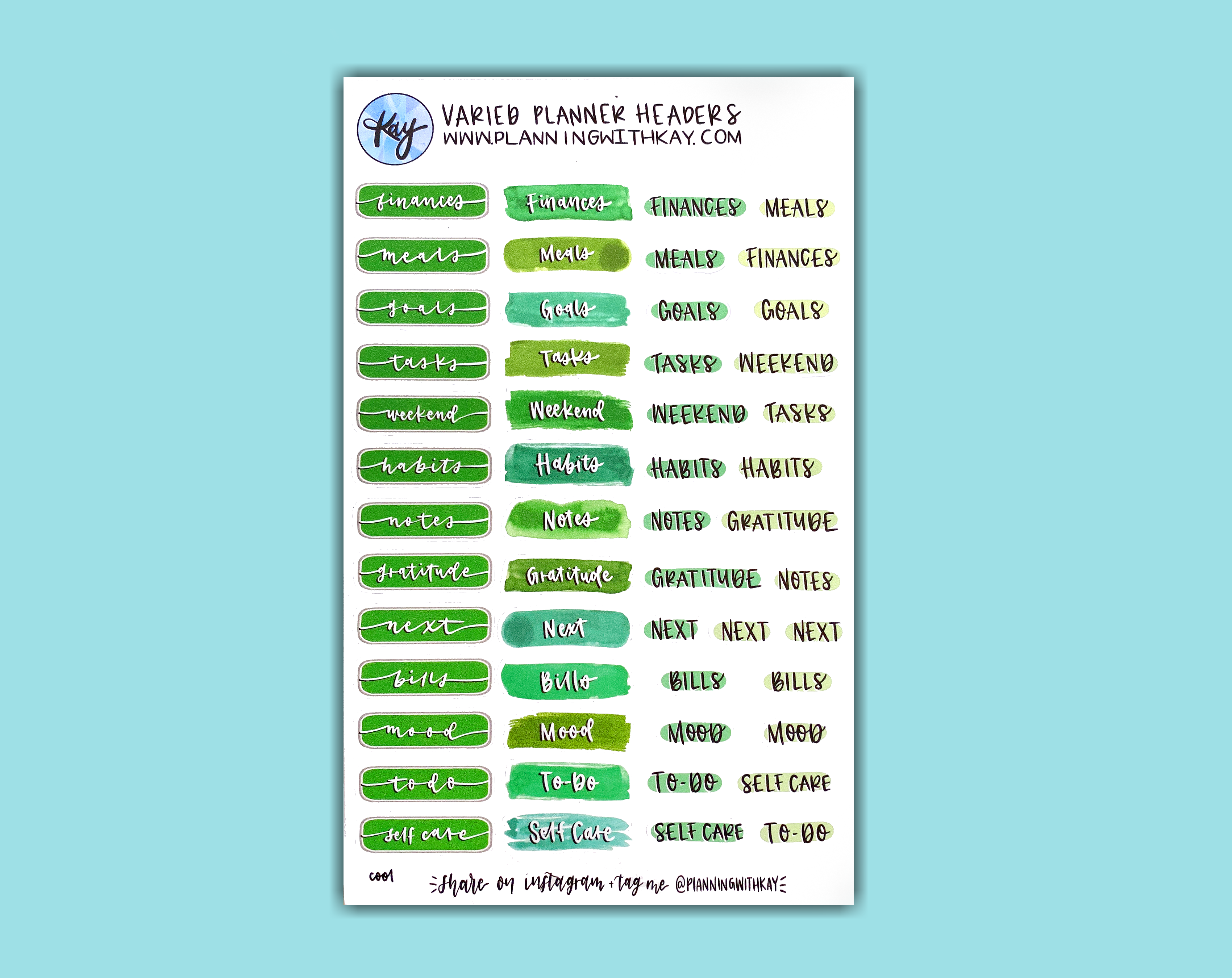 Planning With Kay blev startet af nødvendighed, mens Kayla studerede maskinteknik på UC Berkeley. Hendes krævende skema og udfordrende fag krævede noget mere end en almindelig planlægger. Hun opdagede The Bullet Journal Method på YouTube og begyndte at designe klistermærker til eget brug i sin journal. Efter at have delt sine klistermærker på sociale medier ville hendes følgere købe dem til deres egne journaler. Således opstod Planning With Kay! Det, der begyndte som en simpel Etsy-butik, udviklede sig snart til et fuldtidsjob, hvilket beskæftiger hendes mand, Jake, og hendes heldige sorte kat, Luna. Sammen designer, fremstiller og sender de klistermærker, lykønskningskort og glæde ud over hele verden.