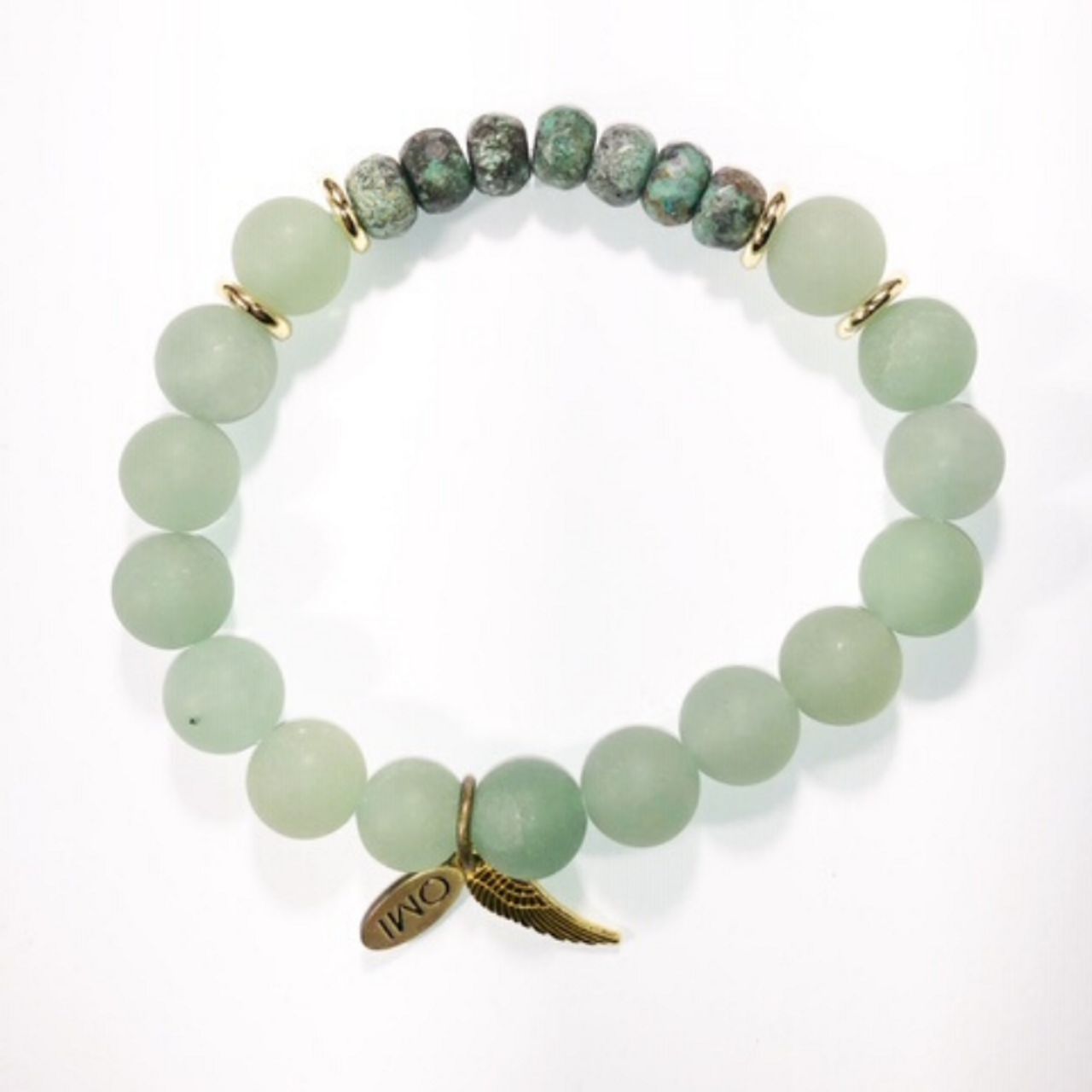 OMI perler er lavet af Nashville baserede smykker designer Joy OMI Walling. Hendes rødder er fra Carmel, Californien, hvor havet altid var hendes største inspiration. Joys vision var at skabe et simpelt smykke, som kvinder i alle aldre kunne bære dag eller nat. Lavet med halvædelsten, der giver positiv energi. Charmen på hvert armbånd er velsignet og giver beskyttelse. Hver englefløj repræsenterer dine smukke engle, der holder øje med dig hver dag. Alle hendes designs er lavet med kærlighed i Tennessee. Du kan finde OMI i 200+ butikker rundt om i USA og Canada. Nyd dine nye OMI perler smykker! FRED ~ KÆRLIGHED ~ LYKKE - Glæde, OMI perler
