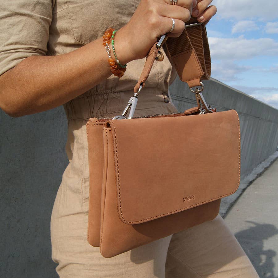 Hos MicMic finder du læder accessories i højeste kvalitet: shoppers, skuldertasker, punge, crossover tasker og mere. Alle styles er designet af danske Michala, ejeren bag MicMic. Designs er både tidløse og praktiske - og stilen er inspireret af den rå nordiske natur. MicMic er desuden inspireret af de lædertraditioner, der har eksisteret igennem mange hundrede år. MicMic har gjort en dyd ud af at finde de rigtige og ansvarlige leverandører. Vi arbejder med kvindeligt ejede produktionsfaciliteter, udsatte personer og fabrikker der er certificerede.