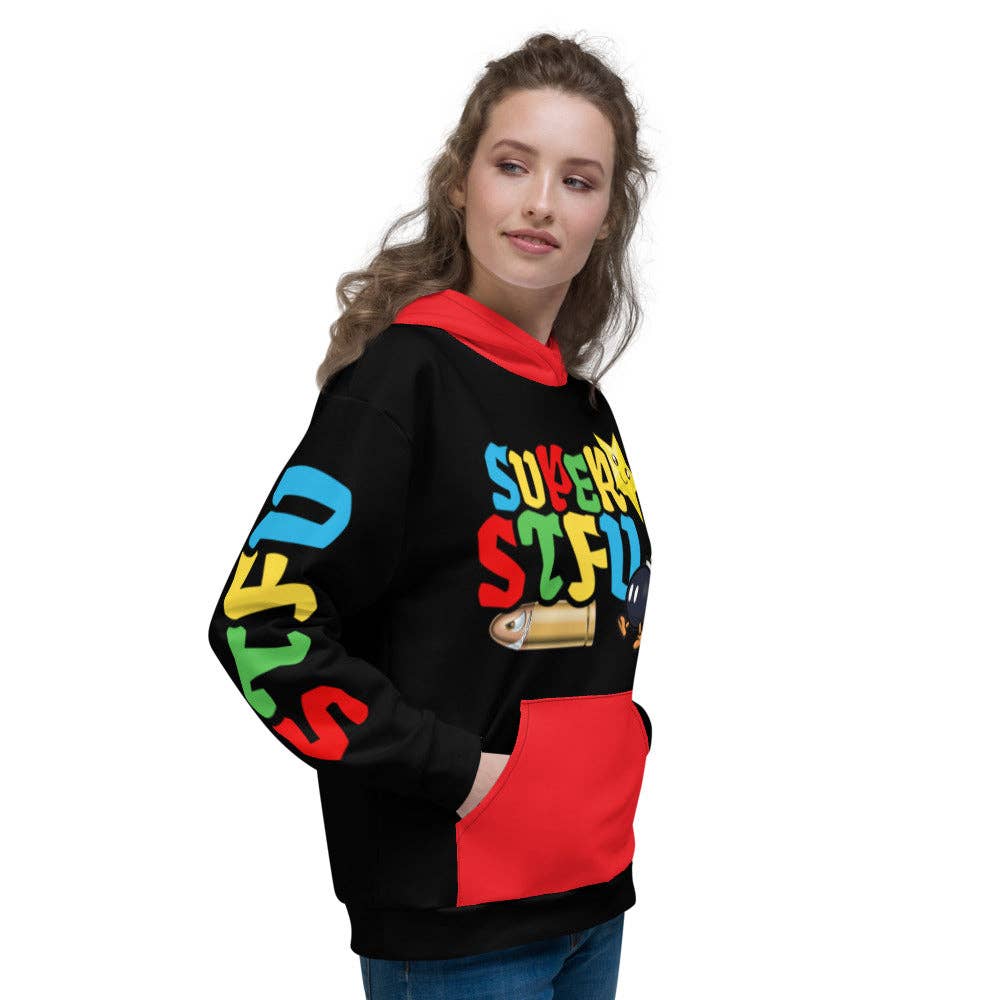 STFU er et kantet urbant tøjmærke med slående og kreative designs, der bærer over 500 varer til kvinder og mænd, der fanger opmærksomheden hos alle, der ser det. De designs, du finder, vil være høje, levende og unapologetiske. Det er for den person, der er modig og sikker på, hvem de er. Når du først er klar over, at alle har en mening for eller imod, hvad det er, du vil gøre, holder du op med at bekymre dig og „gør du“ unapologetisk! Vi ønsker, at alle skal føle denne form for tillid og magt. Vi vil bare være et redskab for bevægelsen. Vi hjælper dig med at føle dig mere selvsikker og komme med en vigtig erklæring! Du lever dit bedste liv, og alle naysayere kan STFU! YDERLIGERE INFO STFU Produkter: Lavet på bestilling Design strækker sig med stof Stoffet er forkrympet Kjoler og leggings er håndskåret og syet efter udskrivning Leggingsmateriale har en firevejs strækning