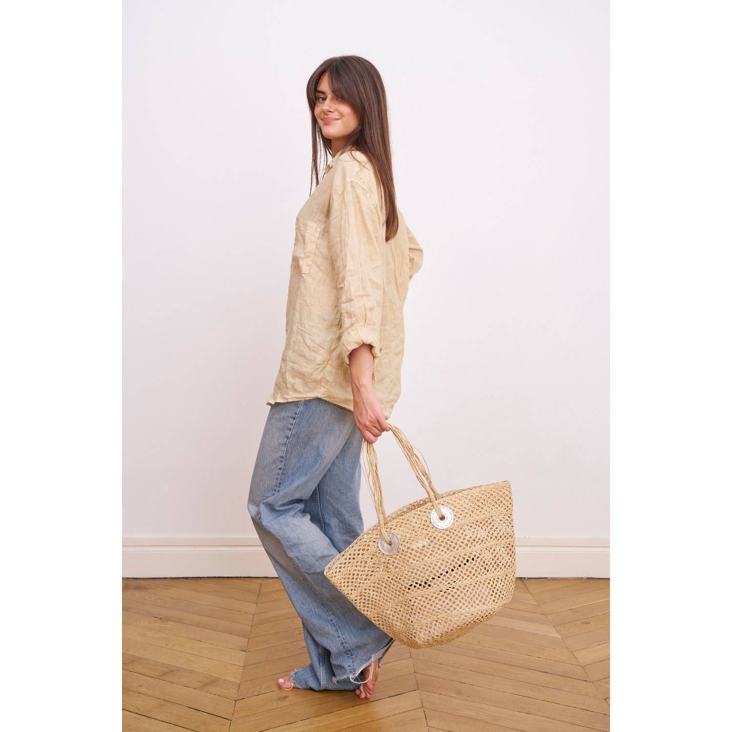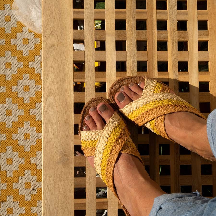 Grundlagt i Paris i 2000, er Sans-Arcidet blevet et førende navn inden for verdenen af raffia-tilbehør. Mærket blev født ud af Sans-Arcidet-søstrenes ønske om at bevare forbindelsen til deres barndom på Madagaskar. Inspireret af øens landskaber og lysende atmosfære formede de DNA'et for deres navnebror-mærke: håndværksmæssigt, blandet og gennemsyret af varme og autenticitet. Til denne unikke identitet tilføjede søstrene et moderne og elegant parisisk touch, der bragte deres stil ind i hver skabelse — fra raffia-tasker og sko til bredskyggede hatte, clutches og punge. Sans-Arcidet legemliggør en enestående sans for mode, hvor Madagaskars tropiske ånd møder tidløs parisisk elegance. Til sommeren 2026 præsenterer HARVEST en fri, strålende linje, der blander råmaterialer med underspillet sofistikering i Sans-Arcidet Paris' chikke, nomadiske stil.