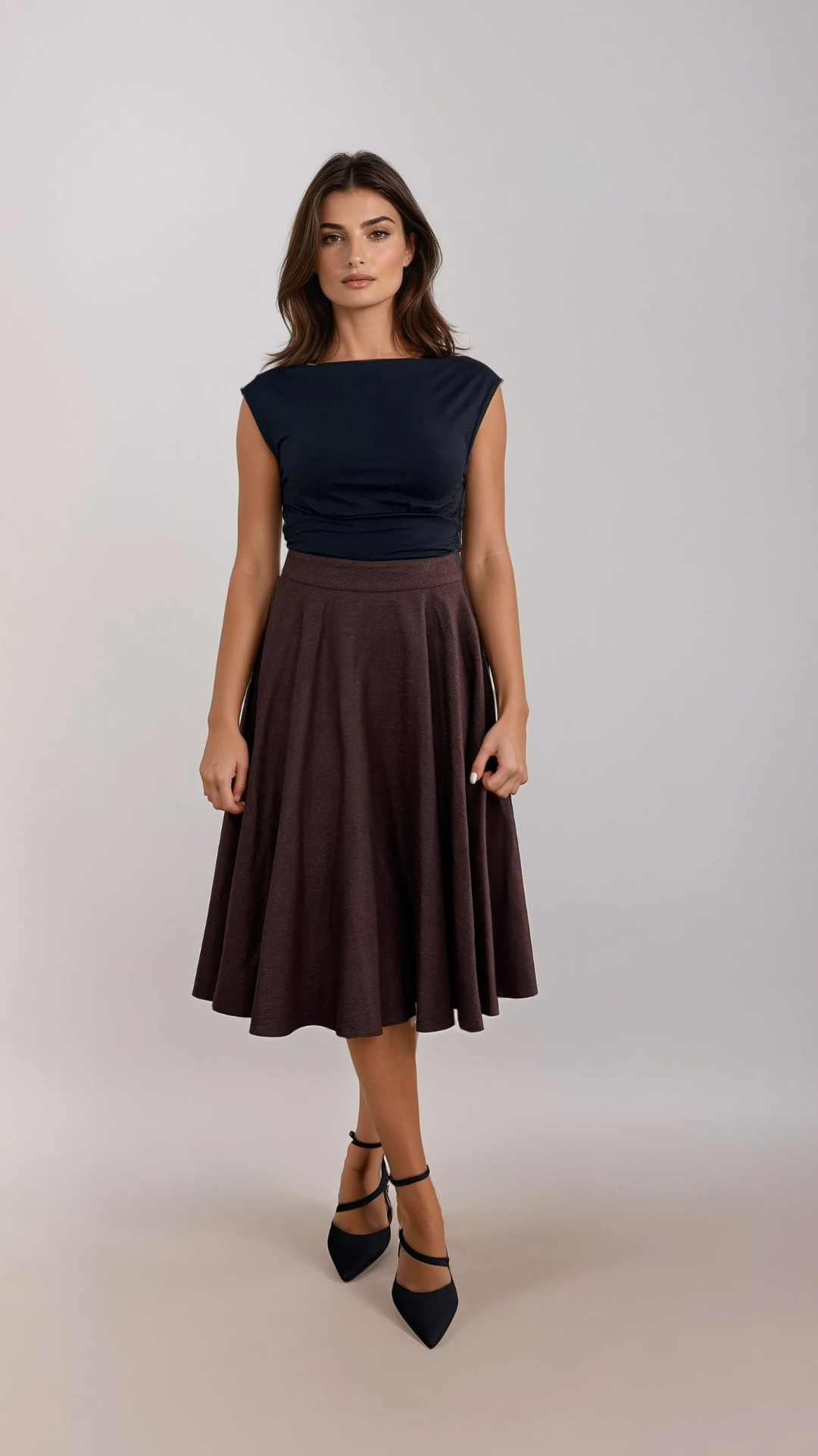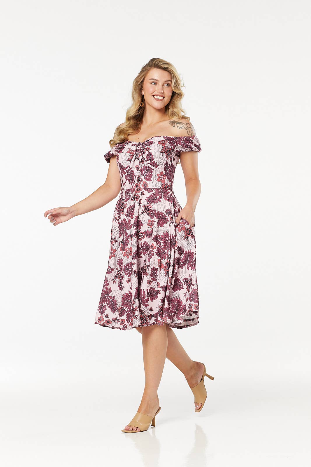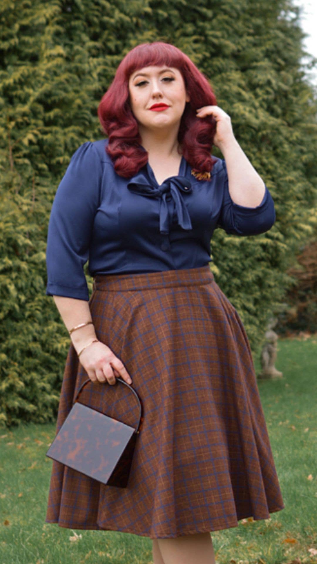 Inspireret af de ikoniske æraer fra 40'erne, 50'erne og 60'erne har vi skabt vintage-inspirerede stykker med et moderne twist i bæredygtige stoffer. Designet i vores studie i London ønsker vi, at vores kunder ser godt ud og føler sig godt tilpas, mens de gør det. Vi inkluderer alle størrelser - UK 8-26/ EU 36-54/ US 4-22