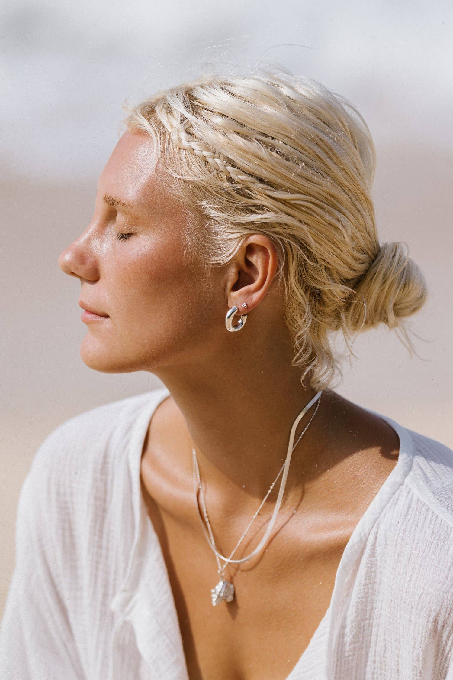 Inspireret af solen, sandet og den trøstende følelse af linned er sun + her et langsomt modemærke, der skaber smukt håndlavet tøj og loungetøj i vores lille litauiske studie, med smykker omhyggeligt designet i Schweiz og omhyggeligt udformet på Bali. Omfavn din frisindede feminine natur med sol + her.