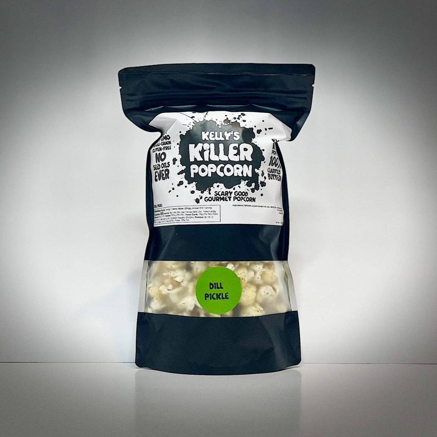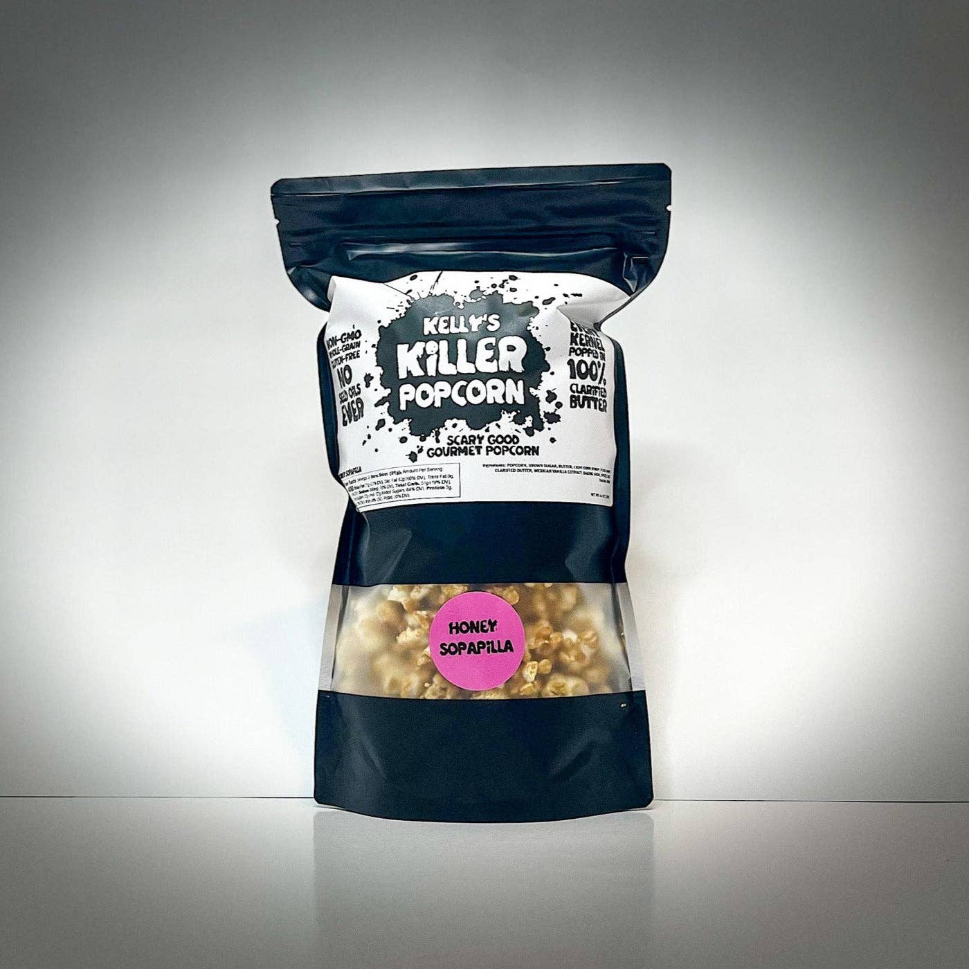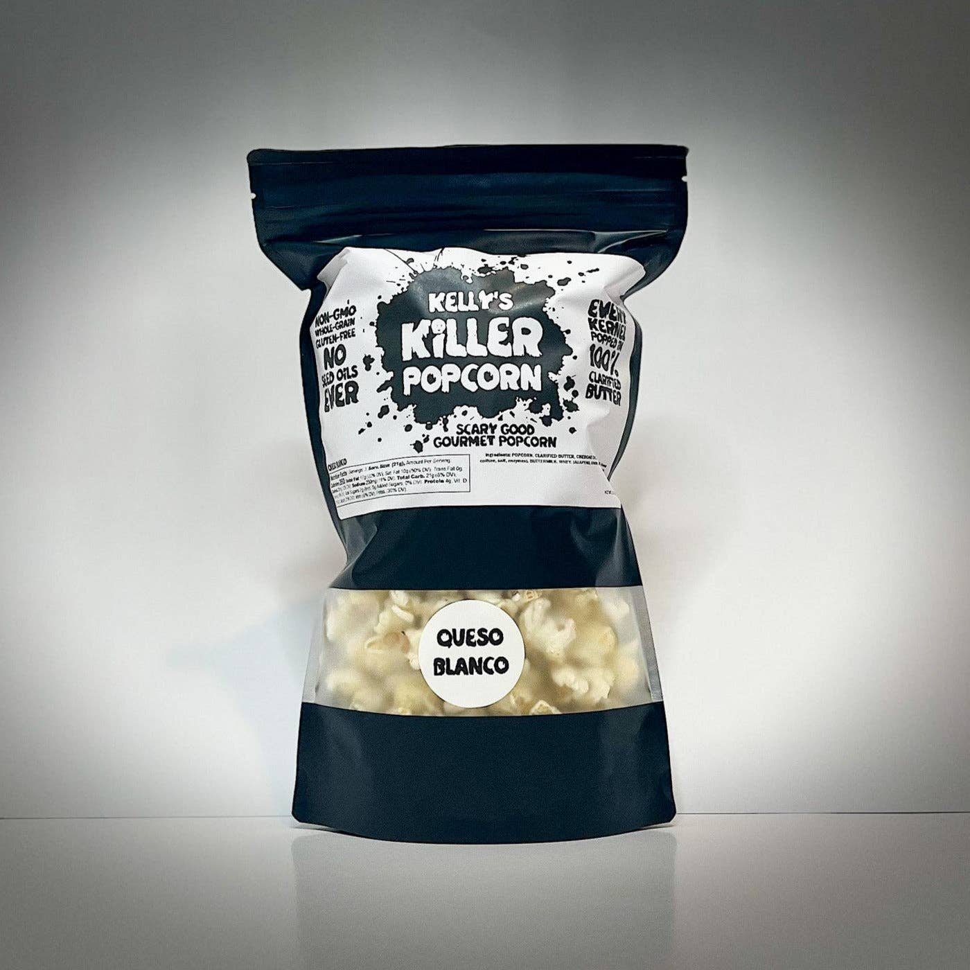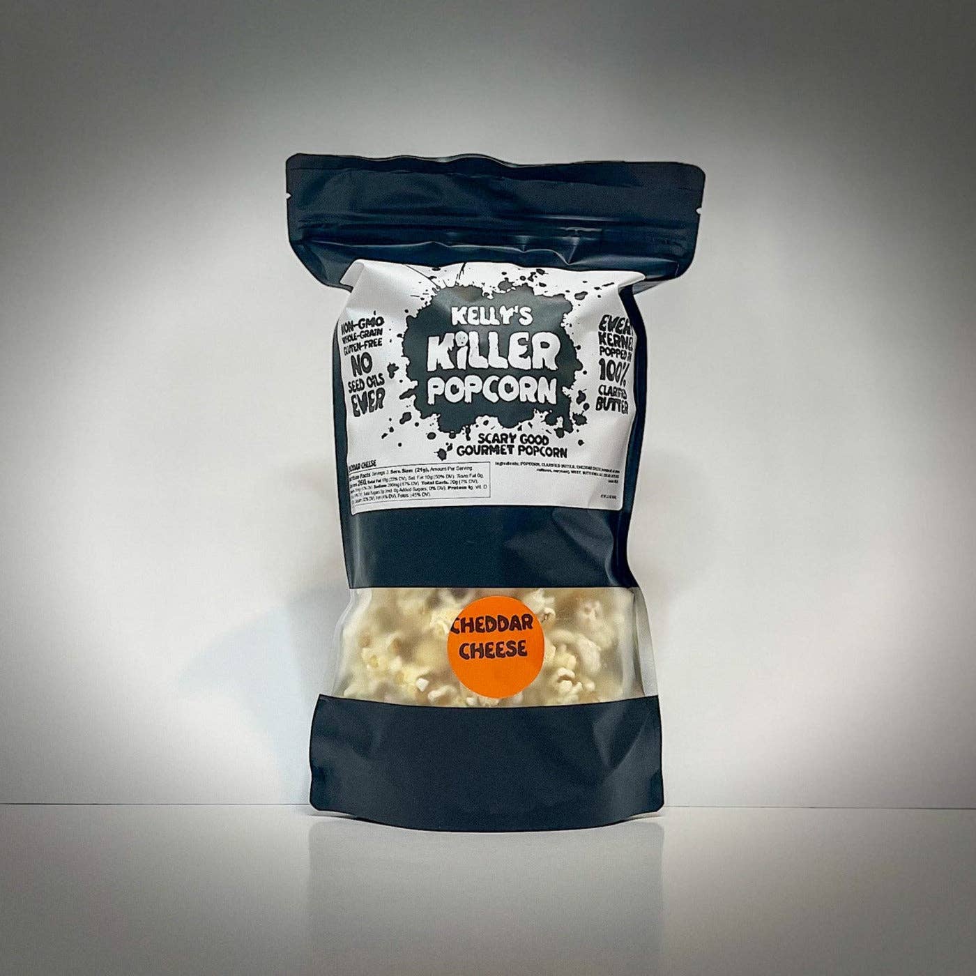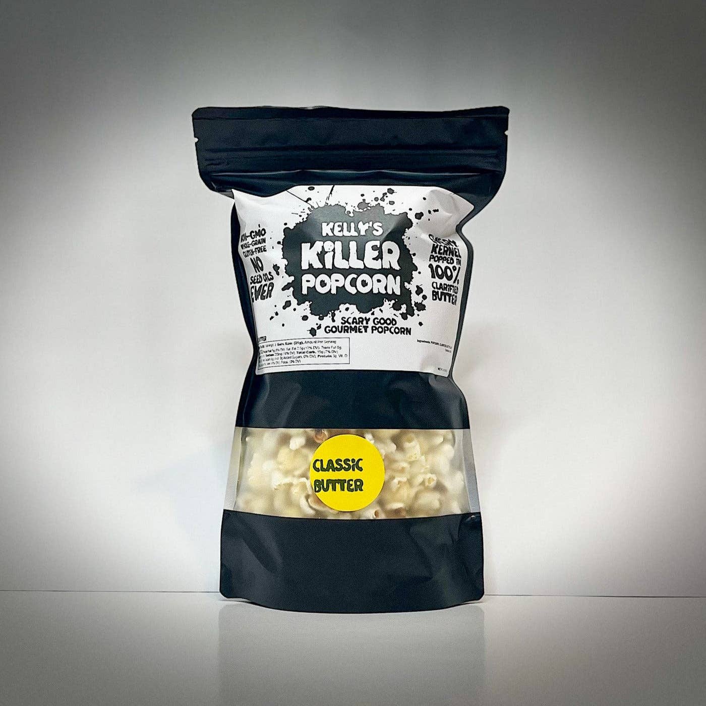 Kelly's Killer Popcorn er en lille familievirksomhed baseret i Austin, TX. Vi er et ægtepar, der er besat af popkultur og de fællesskaber, den skaber. Vores yndlingssnack at dele og nyde sammen har altid været POPCORN! Som inkarnerede popcorn-elskere ønsker vi at skabe den absolut bedste popcorn muligt. KKP popper i 100% klaret smør for at skabe rige, overdådige godbidder, der passer bedst til dine yndlingsmedier. Alle vores produkter er helt fri for frøolier og andre billige fyldstoffer.