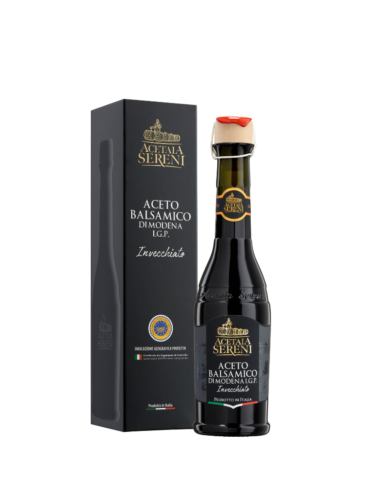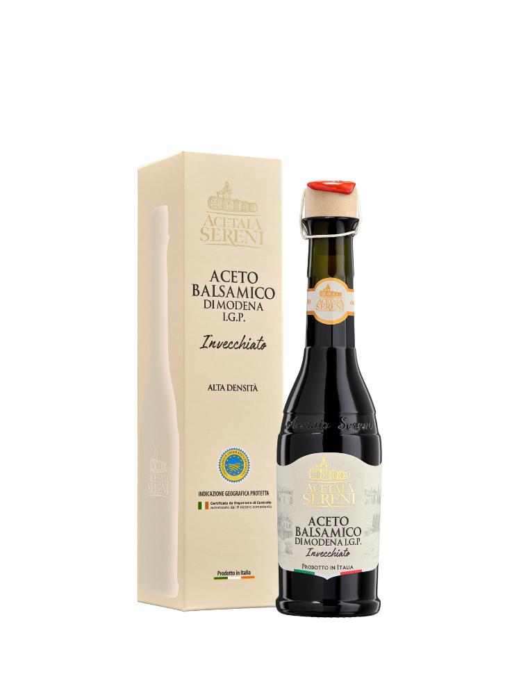 Acetaia Sereni blev grundlagt for et århundrede siden af Nonna Santinas vilje, der i kirsebærdalen startede en lille produktion af balsamicoeddike til selvforbrug. I dag følger Acetaia Sereni, en familievirksomhed fra Modena, den oprindelige opskrift ved at anvende de bedste teknologiske og kvalitetsstandarder til produktion af traditionel Modena Balsamico Eddike BOB og Modena Balsamico Eddike BGB. En anden måde at tænke på Balsamico på. Et alsidigt, naturligt produkt, der udelukkende kommer fra vinmarker på bakkerne i Modena. Vi ville elske, at hver dråbe balsamico vender din tallerken rundt og for den bittersøde smag, der forbliver i munden for at minde dig om en anden teskefuld.