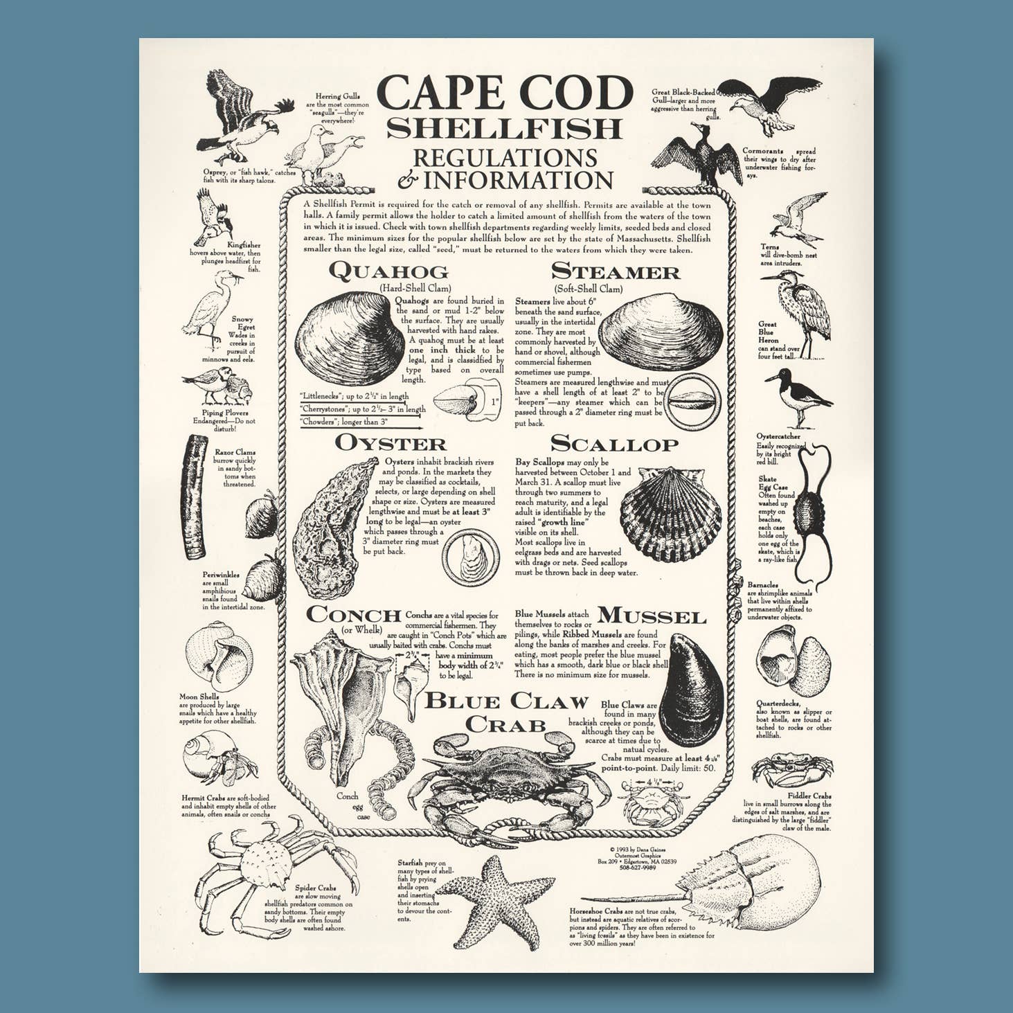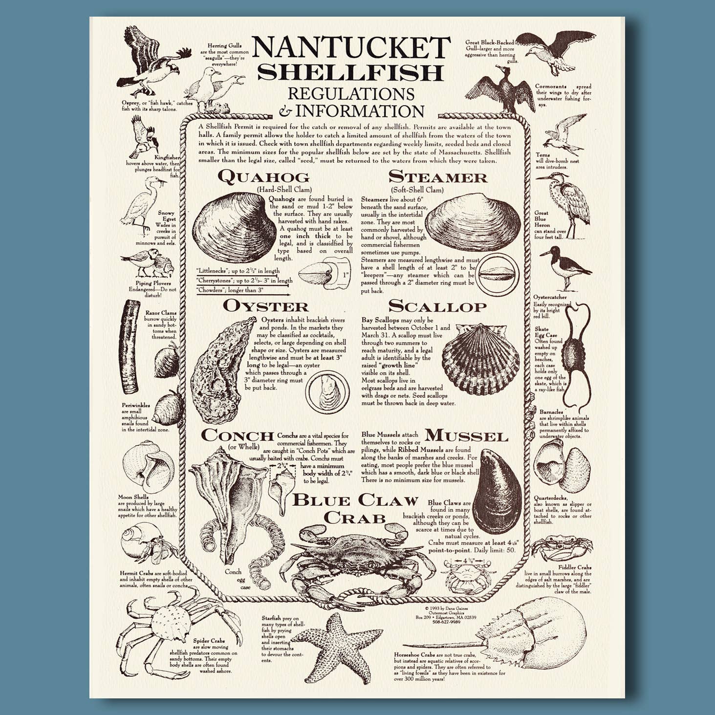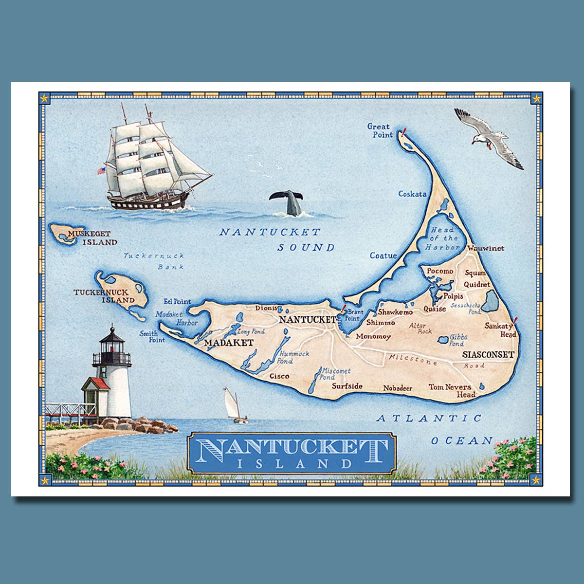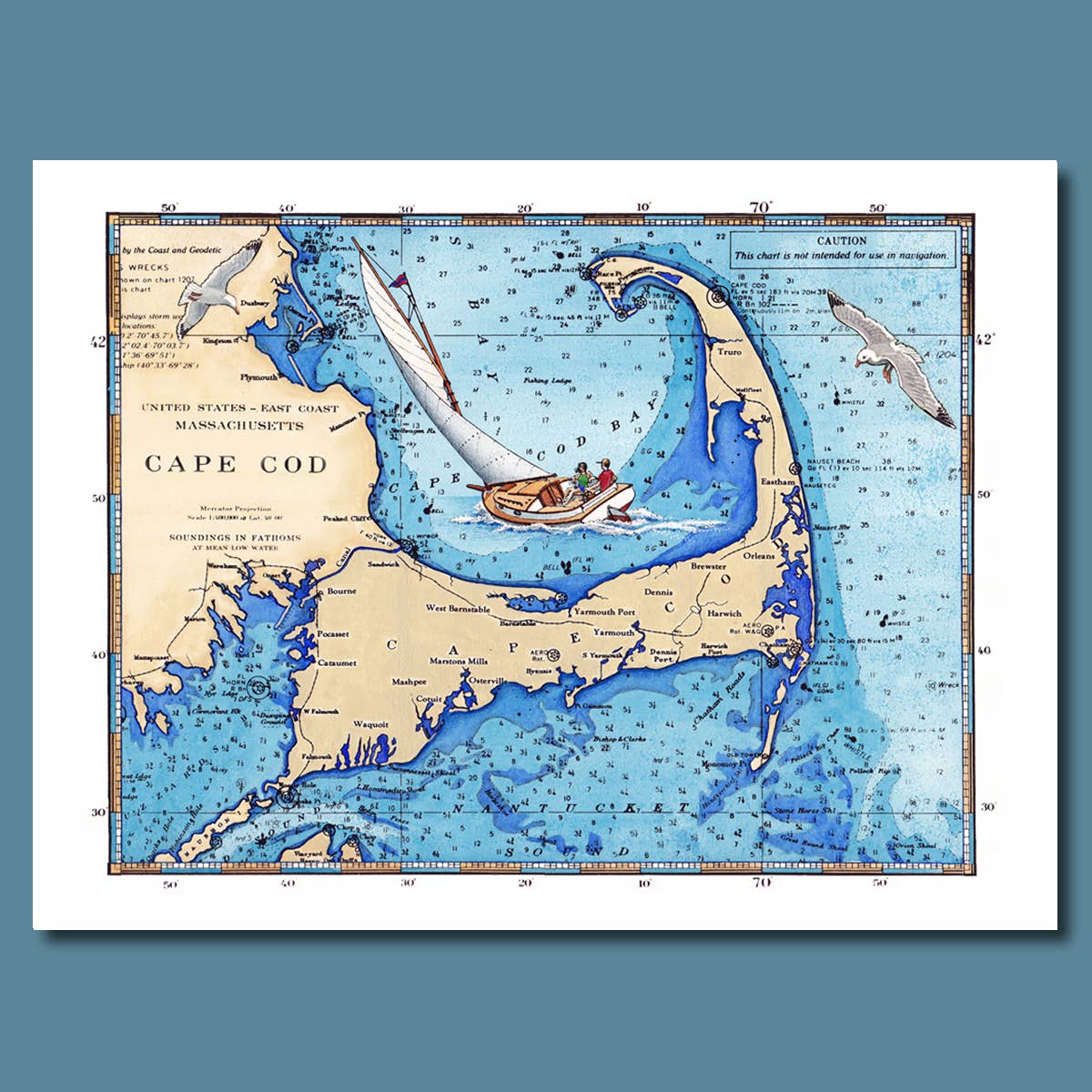 At vokse op på en ø - og derfor omgivet af hav - indgød i mig en livslang fascination for alt maritimt: skibe, både, kort, søkort og de mange arter, der lever både over og under overfladen. Jeg har anvendt mine færdigheder som designer og illustrator til at skabe en bred vifte af trykte produkter, som har været populære i årtier i Cape Cod og Islands-regionen, kystnære New England og videre. Jeg håber, at mit unikke udvalg af kort, tryk og kort vil appellere til dig og dine kunder!