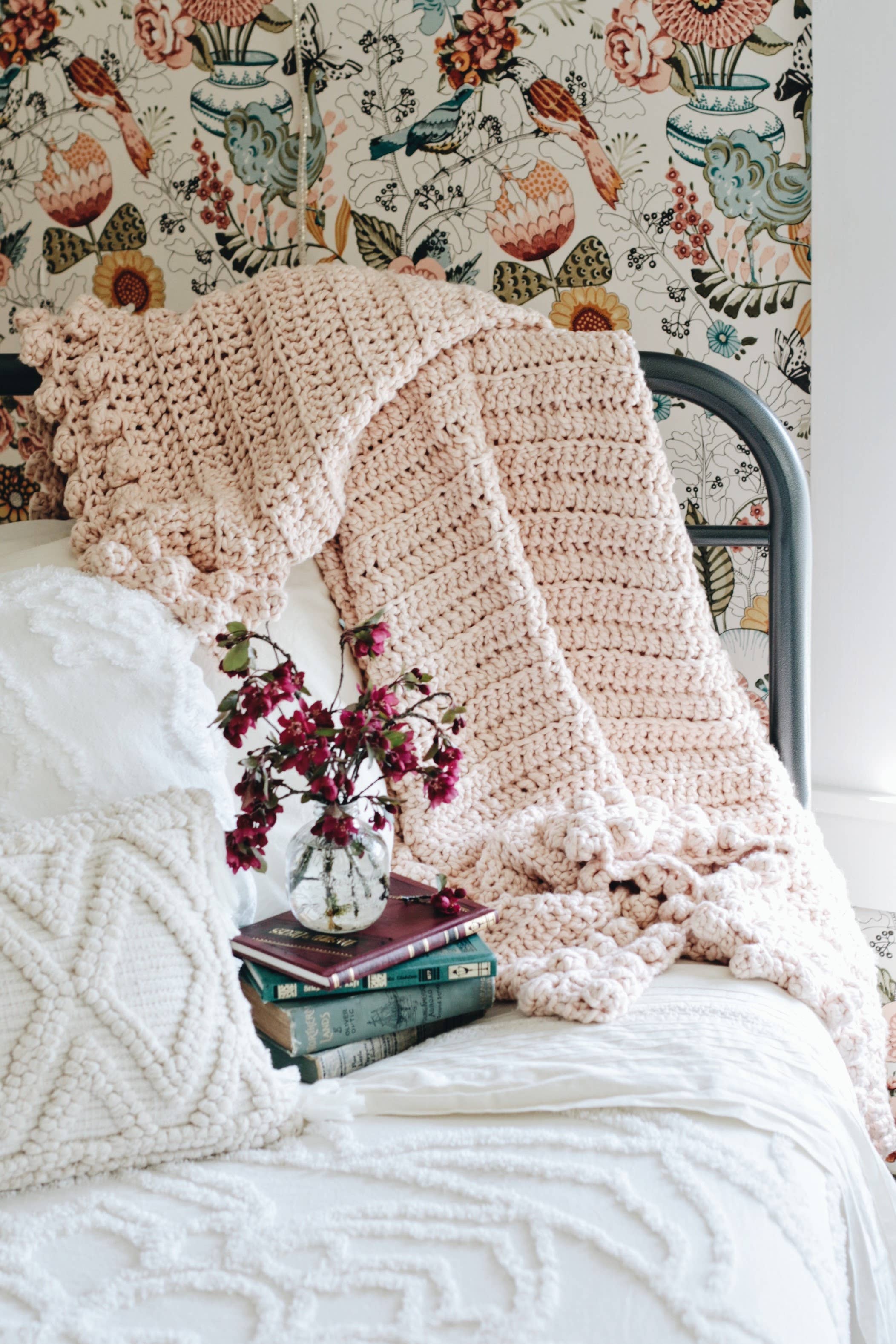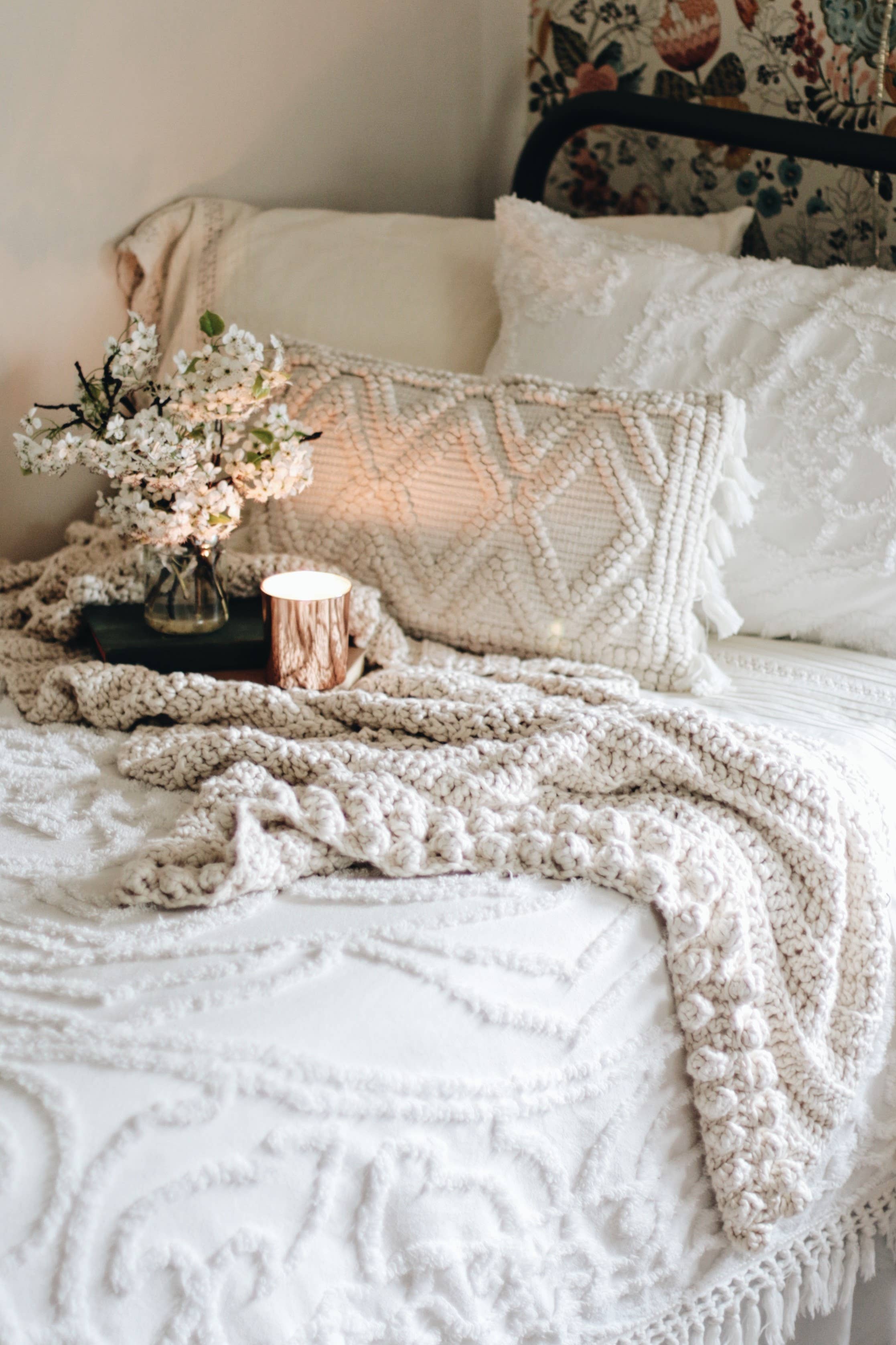 Min bedstemor Polder lærte mig at hækle, da jeg var omkring 6 eller 7 år gammel. Hun ville komme til vores hus for et besøg og bringe kurve af forskellige farvede garn, hæklede kroge og mønstre. Mine brødre og søstre og jeg ville samles rundt, og hun ville starte hver enkelt af os på et projekt. Hun var så tålmodig med alle de små børn og altid sømmet for at få så meget tilfredshed ud af vores entusiasme for at lære en færdighed fra hende! Jeg har altid elsket at være kreative og håndlavede gaver til fødselsdage, jubilæer og jul. Jeg vil sige, at det er sikkert at sige, at min kærlighed til at arbejde med mine hænder kom fra folk som min bedstemor Polder, der tog sig tid og tålmodighed til at lære små børn at gøre noget nyt og blive begejstret for det! I begyndelsen af 2021 lavede jeg endelig springet og startede min egen virksomhed (beliggende i Virginia, USA) og The Handcrafted Home blev født. Jeg åbnede en Instagram-konto og begyndte at notere mine hæklede Scrunchy Throws, delikat bomuld blonder og baby tæpper.