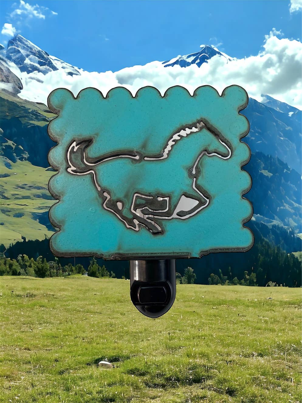 Farverige metal flyvende gris natlys, der kommer med pære og har en on off switch. En helt unik gave garanteret at bringe et smil. Lavet af regenererede metaller i USA (Fate, Texas). Farven på UL lys socket kan variere.