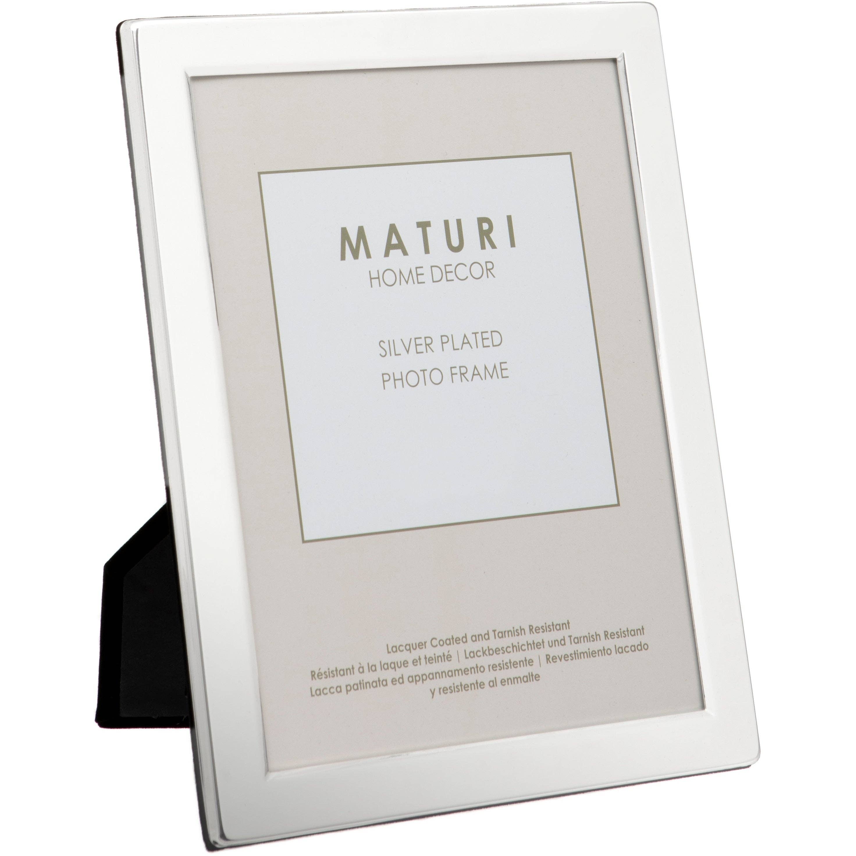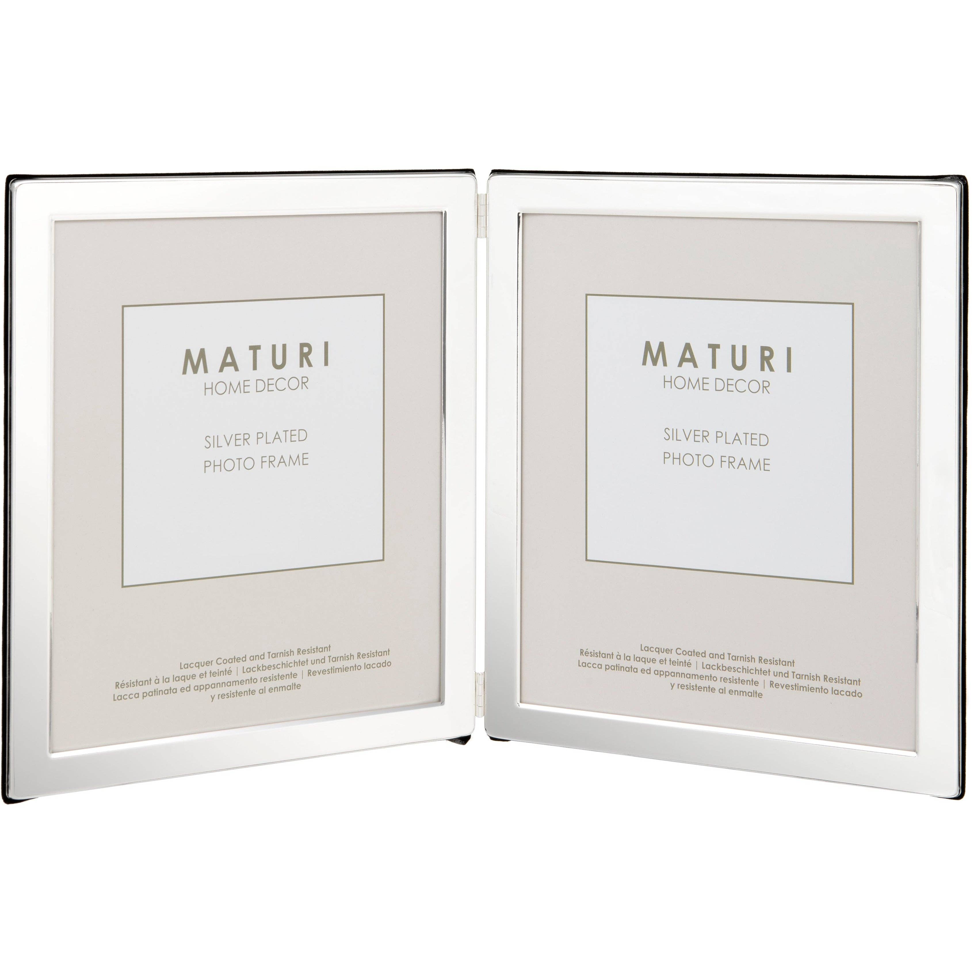 Denne sølvbelagte fotoramme med dobbelt blænde er designet til at gøre et varigt indtryk. Udformet med en poleret finish og lakbelægning for at forhindre pletter, er den ideel til at bevare dine mest elskede minder. Den har også en blød fløjlsbagside for en luksuriøs finish. Plads til to 5" x 7" portrætfotos Dimensioner: 20 x 15 x 1,7 cm/12 „x 7,9 x 0,4“
