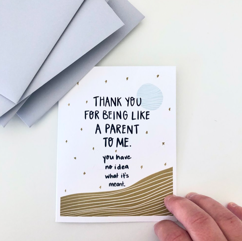 Udenfor: Tak skal du have, du suger. Inde: Blank. Størrelse: 4.25 „x 5.5". Papir: lys hvid, genanvendt, tungvægt. Konvolut: genanvendt, matchende. Blæk: Arkivering. Leveres i en klar ærme til beskyttelse. Størrelse: A2.