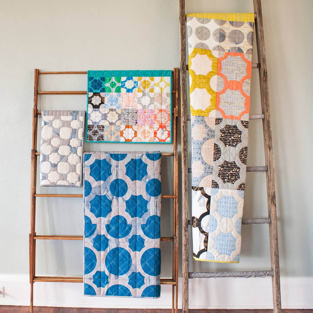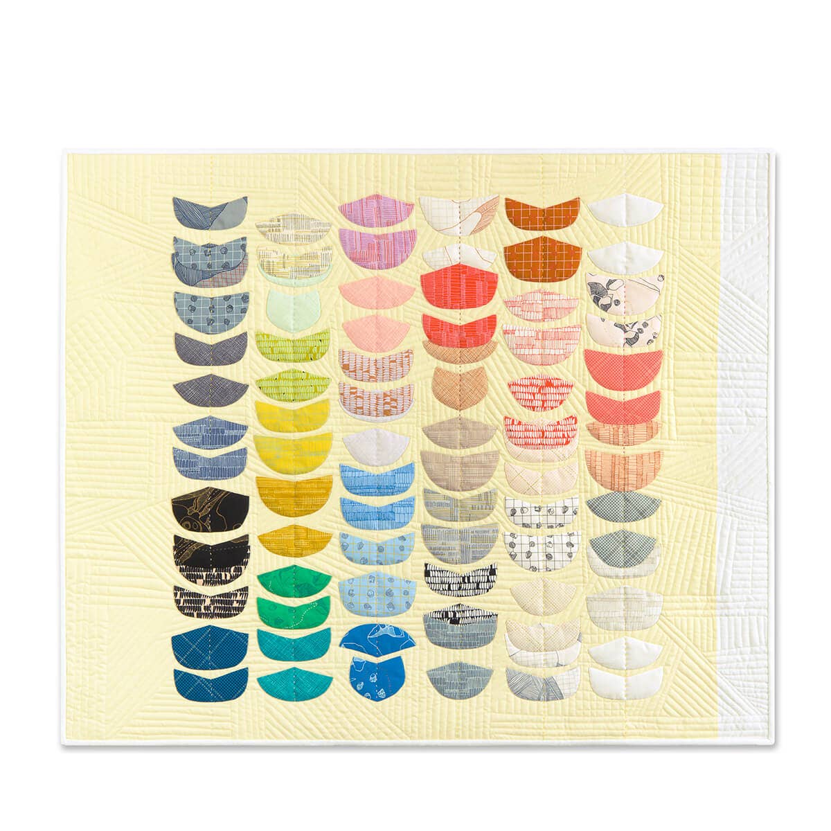 Godt afrundet og til det punkt - mit Hesperides quiltemønster er et spil på modsatte - både med hensyn til form og vægt. Mens jeg legede med min Euclid stofkollektion trykt på Essex (et stof i hørbomuldsblanding), fik vægten mig til at tænke meget på gennemsigtighed og opacitet. Jeg elskede at parre det kødfulde linned med Robert Kaufmans åh-så-delikate græsplæne og quiltende bomuld. Bland den variation med modsatte runde og spidse former, og du har masser at lege med! Dette projekt er den perfekte mulighed for at perfektionere dine point og udforske en række forskellige stoffer. Projektstørrelser 18“ x 18“ (Sham, par), 40 1/2" x 30 1/2" (væg), 40 1/2" x 40 1/2" (baby), 61 1/2" x 71 1/2" (kast) Stof Fungerer godt med Fat Quarter (18" x 22") og rester Teknikker/færdighedsniveau Begyndervenlig nåledrejningsapplikation (kan bruge en anden applikationsteknik, hvis det ønskes), grundlæggende opdeling, binding og fremstilling af en pudesham Afrundede og spidse former er et fremragende udgangspunkt i appen