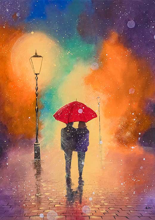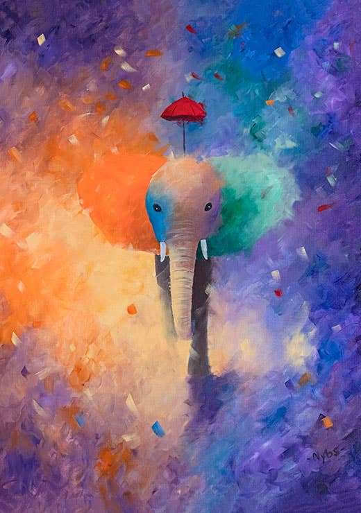 Familien - Maleri af en familie af pingviner på en lys baggrund.