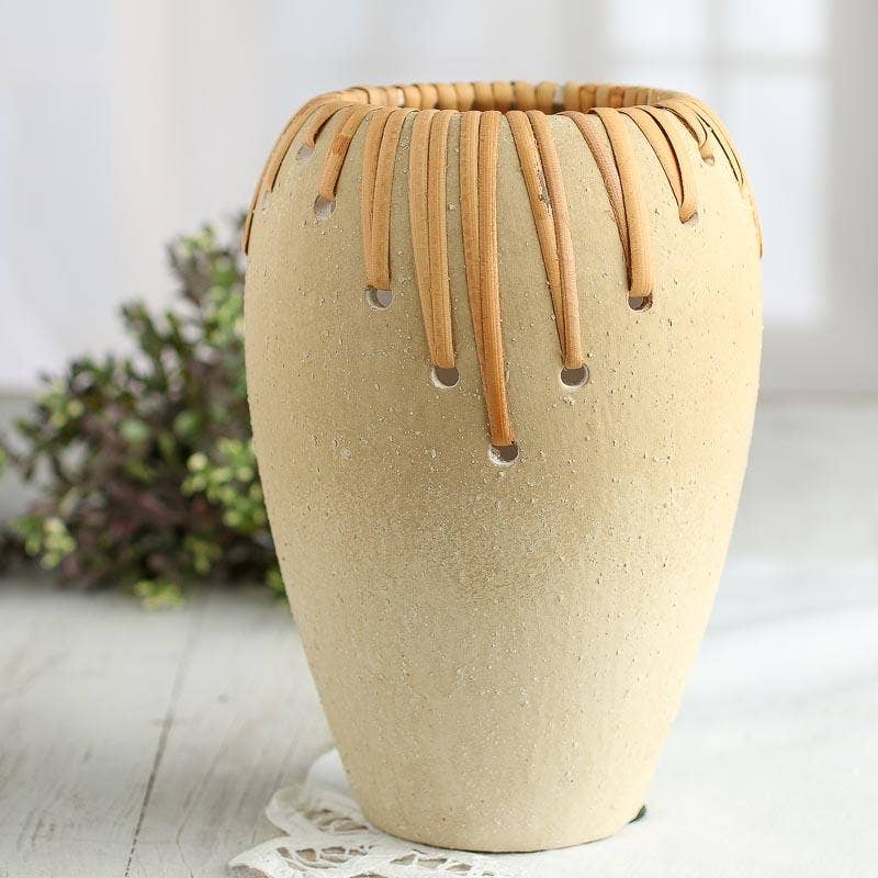 En traditionel kurv formet som en cornicopia til Thanksgiving. Brug denne 'Horn of Plenty'-kurv i flet til at skabe et smukt midtpunkt på efterårets Thanksgiving-bord. Cornucopiaen er flot som en del af efterårspynt eller på et bryllupsbord om efteråret. Hver enkelt cornucopia er håndlavet og har samme størrelse, men farven på flettearbejdet kan variere. Mål: - Total: 30,5 cm x 17 cm i diameter - Åbning indvendig: 13,3 cm i diameter