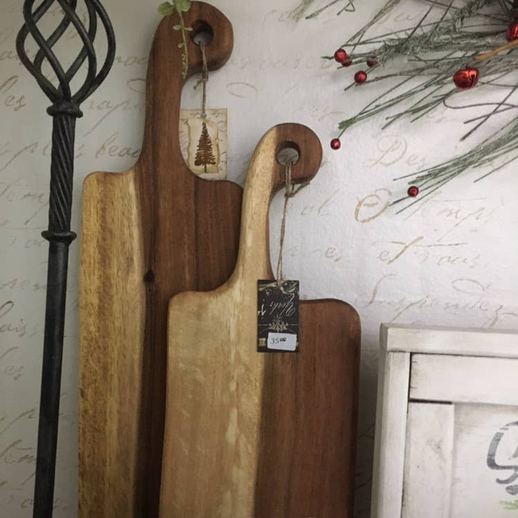 Vores Live Edge Bread eller Appetizer boards er alle lavet af et massivt stykke træ. De måler 18 „x 6" og er en robust 1 „tyk. Håndlavede live edge boards er perfekte til servering af charcuteri, appetitvækkere, eller dit yndlingsbrød. Hvert bord er unikt, da vi tillader træets organiske natur at forme hvert bræt med en naturlig levende kant. Lavet af østindisk valnød, vores tavler er smukke, holdbare, og belagt med en fødevaresikker blanding af økologisk bivoks og mineralolie. Brædder kan tilpasses med gravering af logoer, navne eller endda håndskrevne opskrifter. Tuckahoe Hardwoods blev startet af brødrene George og Johnny Dent i 2004 ud af en gammel bondegård på Eastern Shore of Maryland. Efter at have udviklet vores forretning her i Maryland, vi startede nogle bæredygtige skovbrugsprojekter i Indonesien, hvor vi nu ejer og driver vores egen butik, bruger kun bæredygtigt høstet træ til alle vores produkter. Produktionen startes der, og alt er færdigt her i Maryland.