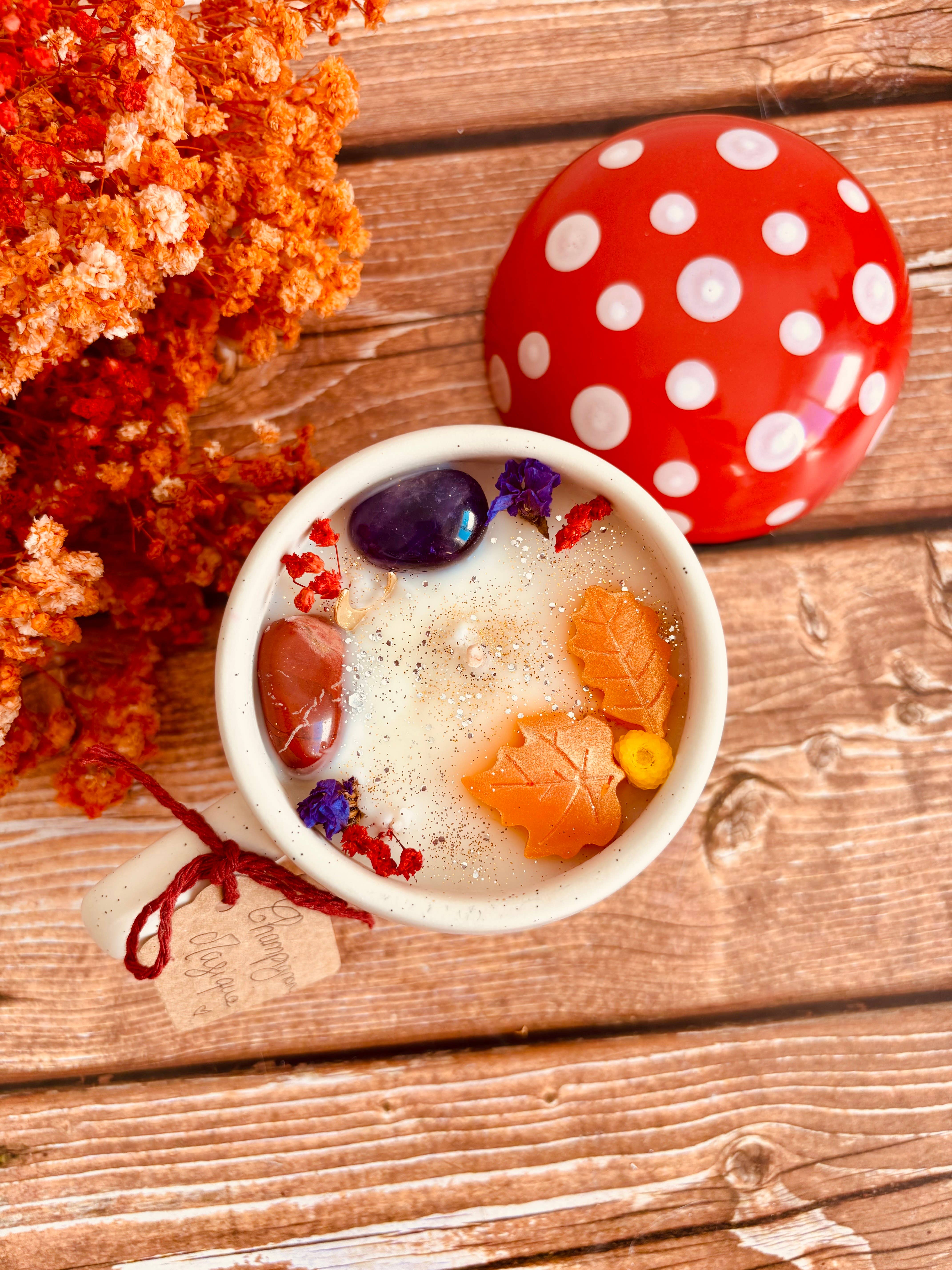 Jordbær Rabarber Duftlys med sojavoks og duft fra Grasse. Toppnoter: rabarber, kirsebær Hjertenoter: jordbær, hindbær Bundnoter: vanilje, karamel Kombinationen af rabarber og jordbær skaber en lækker duft, der fanger essensen af barndomsminder med varme, friskbagte tærter og hjemmelavet syltetøj. Dette lys er ideelt til at skabe en varm og gourmetagtig atmosfære i hjemmet. Formater: - 212 ml (7,4 x 6,8 cm): 155 g voks / 40 timers brændetid - 390 ml (11,3 x 7,5 cm): 315 g voks / 80 timers brændetid Vigtigt: Fjern tørrede blomster før tænding.