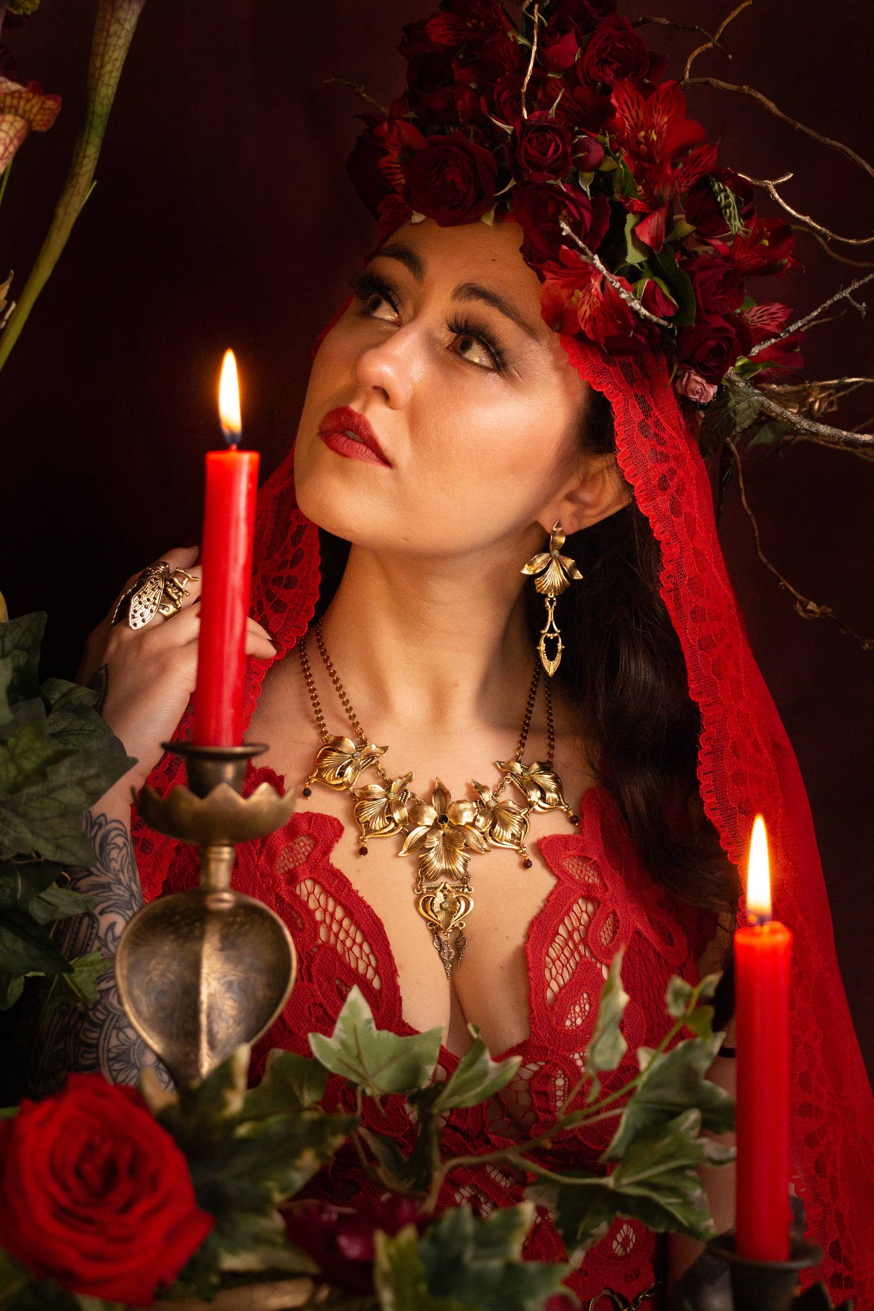 Denne halsstykke har iris blomstrer og granatæbler. Lavet af rigt antik guld, opal og granat, hun er den frodige og glamour i Liliths have. Hun er færdig med vores signatur krog lås. Halsudskæring er 16 „med 3“ justering -Antik guld overlay over messing, bronze og tin -Granat -Opal