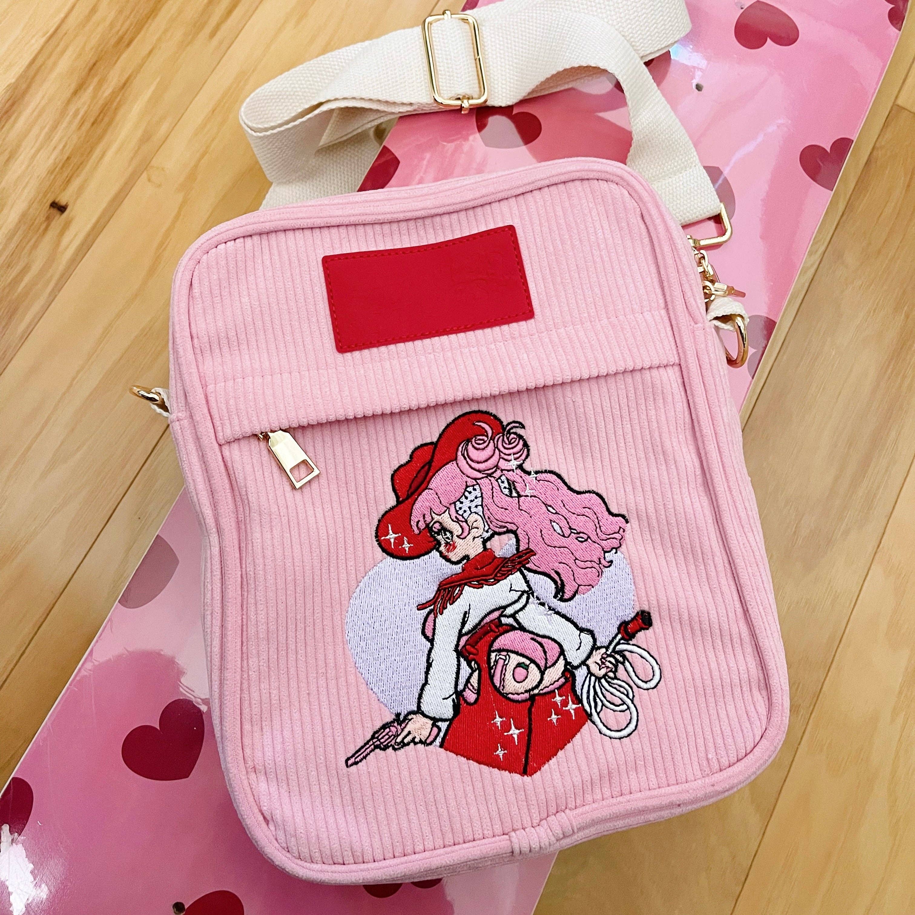 ♡ 10 „x7.5"x2.5" broderet klovnefrø og sort fløjlssidepose ♡ 70“ aftagelig og justerbar rem, 3 lommer (meshærme indeni, lynlåslomme foran, ærme på bagsiden), alt metalhardware ♡ Stribeforing (grøn foring ikke længere tilgængelig) ♡ Perfekt til at holde din switch/lille tablet, daglige nødvendigheder og mere!