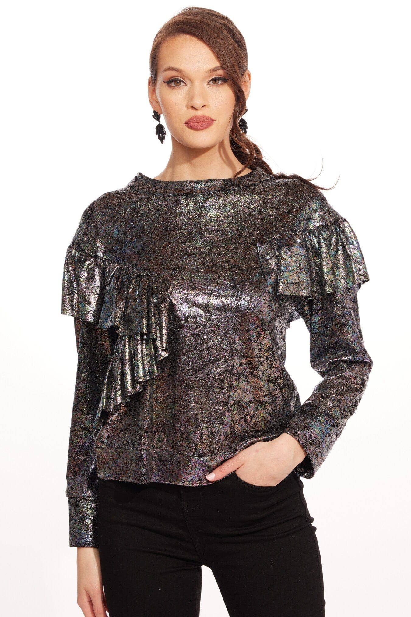 Din lille vil føle sig som en lysende stjerne i vores Darling Dress in Gold Crystal! Det er et guld metallisk stof, der er elastisk, skinnende og vigtigst: behageligt! Det elastiske, bløde stof giver mulighed for komfort og funktionalitet! Pullover styling To forlommer A-Line Silhuet