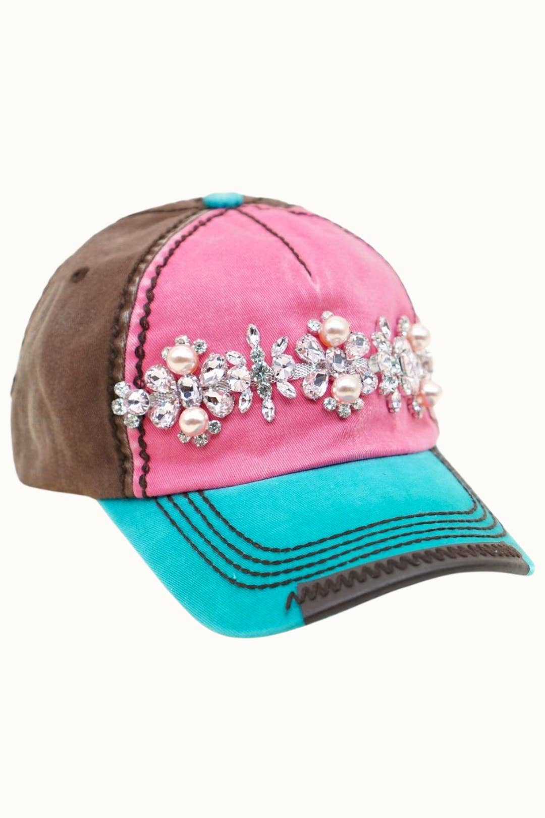 Kryds Bejeweled Bling Glitz Tekstureret Kasket, Justerbar