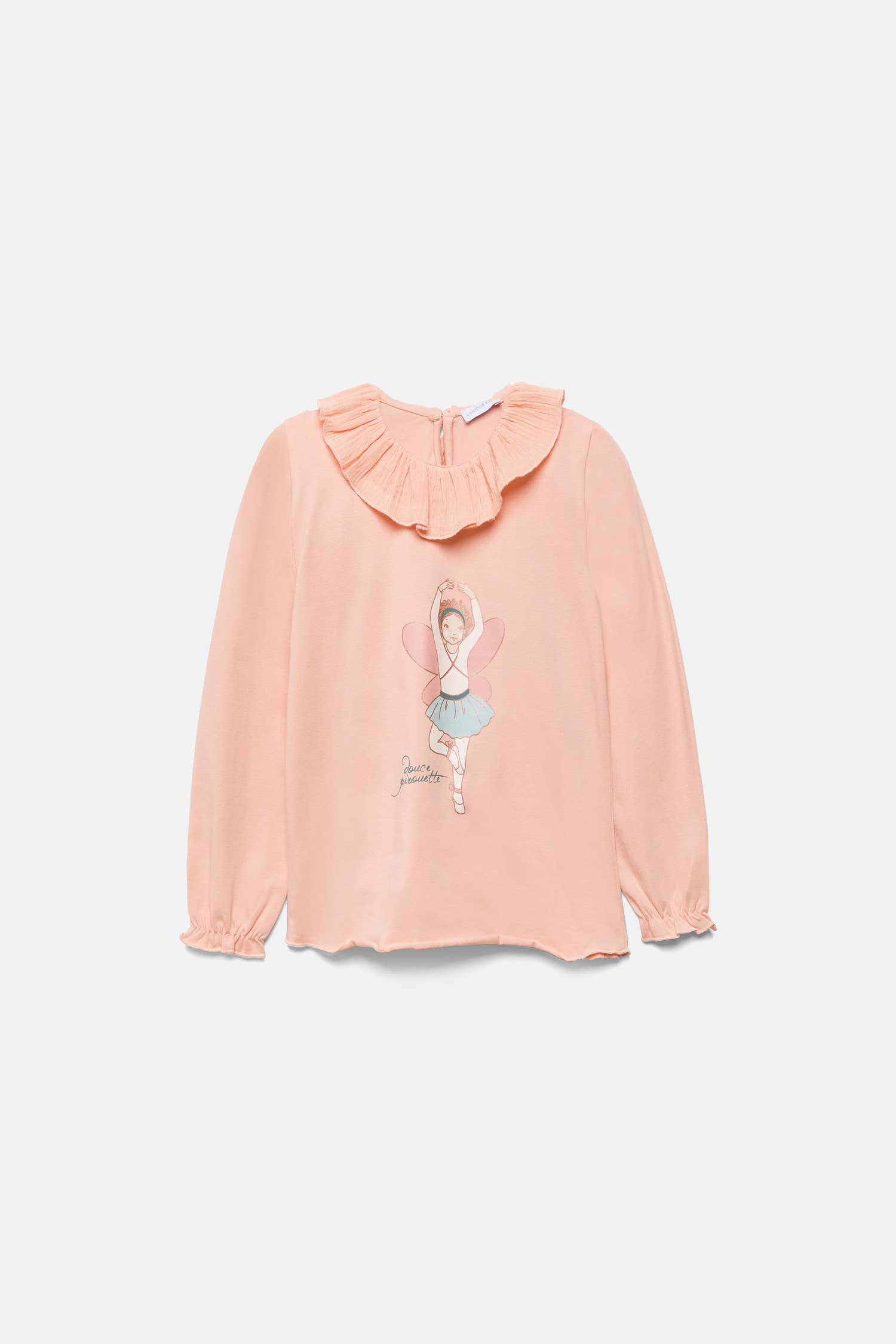 Langærmet 100% POLYESTER bluse med flæser