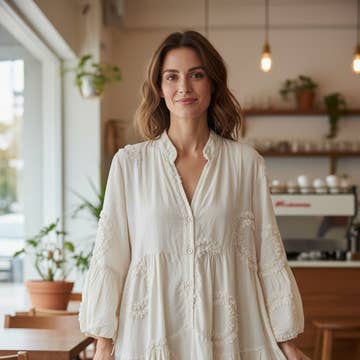 Med aftagelige ærmer, klassisk skjortekrave og en brystlomme. Skjorten har et lige snit og er skabt til at have en afslappet pasform. Den leveres med et sølv strass bælte til et forhøjet og „Fly High“ look. Olivia er 174,5 cm høj og bærer størrelse S (Bust 80 cm Talje 58 cm Hofter 88 cm) - Tjek vores størrelsesguide, hvis du tvivler på mellem størrelserne. Se nedenstående tabel for specifikke beklædningsmål i cm (målt fladt): Størrelser Total længde Brystvidde Kort ærmelængde Langærmelængde S 48cm 56cm 18cm 53cm M 49cm 60cm 21cm 56cm L 50,5 cm 62 cm 22 cm 58 cm Detaljer - Flyv høj samling - 100% bomuld - To knapper foran - Aftagelige ærmer - Den leveres med en sølv strass bælte - Lige snit Pleje - Maskinvaskbar ved lav temperatur (maks. 30° C) med en kort centrifugeringscyklus for at undgå tab af form