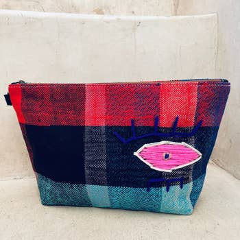 22X30cm pose trykt på fløjl. For/bagside. Færdig med guld lynlås og indvendig foring Guld skulderrem fastgørelsesringe. Produkt leveret uden skulderrem