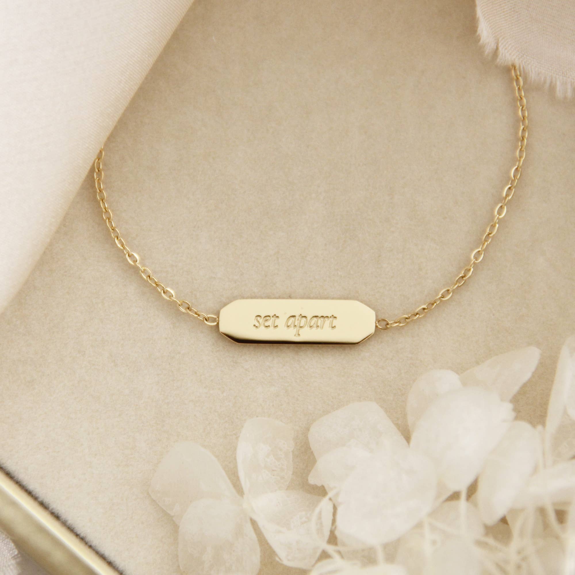 „En fremragende kone, der kan finde? Hun er langt mere dyrebar end juveler.“ Ordsprogene 31:10 • Denne liste er for et (1) armbånd, der er indgraveret for og bag • Længder: 6,5 „+ 1.5" extender. Forlænger op til 8" • Målinger: 23 mm x 5 mm charme • Kæde: Delikat enkel kæde • Finish: 18K guld over kirurgisk eller poleret kirurgisk stål. Pletbestandig og vandtæt. • Nikkelfri og blyfri. Hypoallergen. • Alle vores smykker er pakket i signatur LoveStory Collection by MAIVE gaveæske. Send os en besked, hvis du har spørgsmål om vores produkter, styling eller anbefalinger. Vi er glade for at hjælpe! © 2023 LoveStory Samling af MAIVE