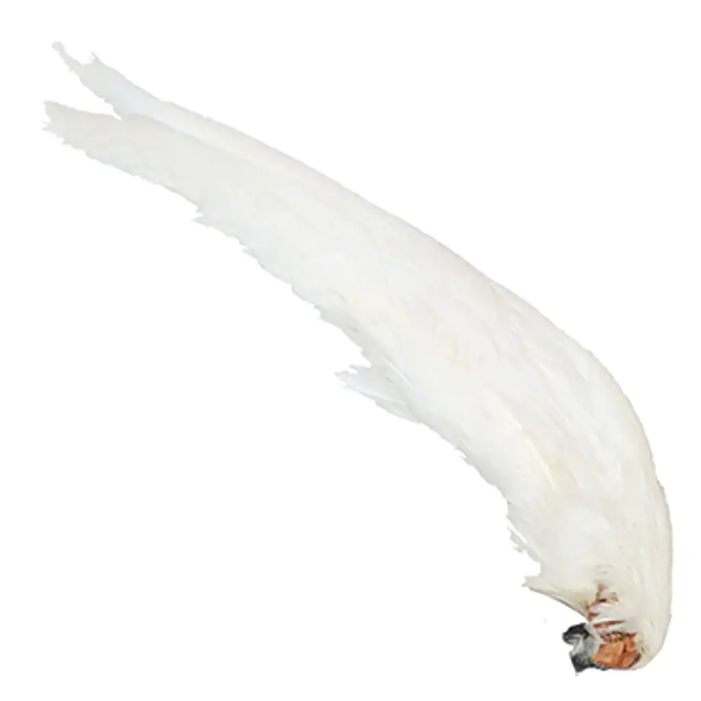 Natural Golden Pheasant Red Top Tail Feathers varierer i størrelse mellem 6-8 tommer lange. Kommer i en 10-delt pakke. Natural Golden Pheasant Red Top Tail Feathers er gyldenbrune med mørke naturlige brune, zebra-lignende markeringer gennem fjerens krop. Spidsen af denne fjer adskiller sig fra kroppen med bløde, naturlige mørkerøde og orange spidser. Dette produkt er en del af kategorien Pheasant Feathers Feathers - Golden Pheasant - Red Top Tails.
