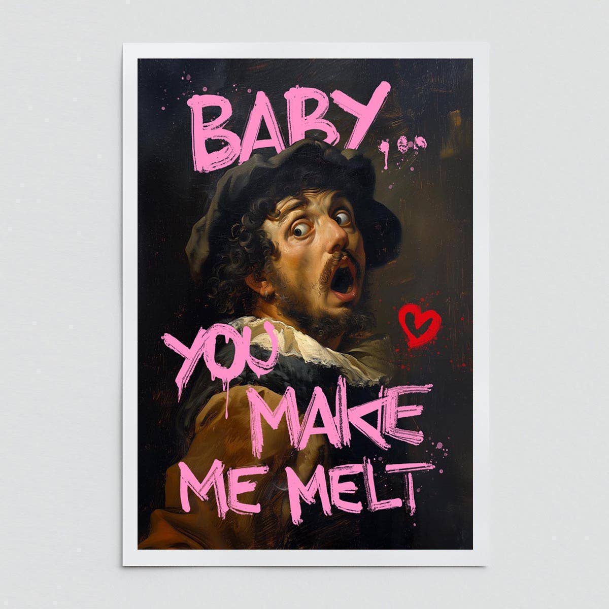 - SMÅ TRYK, mål 30x42 cm (12x16 tommer), leveres fladt, beskyttet med cellofan og monteret på stift bagkarton med vores firmalogo bagpå. - MELLEMSTORE 50x70 cm (20x28 tommer) og STORE 60x90 cm (24x36 tommer) tryk leveres rullet og sikkert pakket i en genanvendelig paprulle. - Papirvægt: 190 g/m² / 80 lb. Trykt med en hvid kant rundt om billedet (ca. 2 cm / 0,5 tomme). "I denne sjove neopop-collage er et af Monets mest ikoniske værker kreativt fortolket, samtidig med at der refereres til andre ikoner fra moderne populærkultur. Nogle af hovedkaraktererne fra Star Wars fortsætter deres jagt, mens R2D2 tilføjer en humoristisk scene midt i forfølgelsen."
